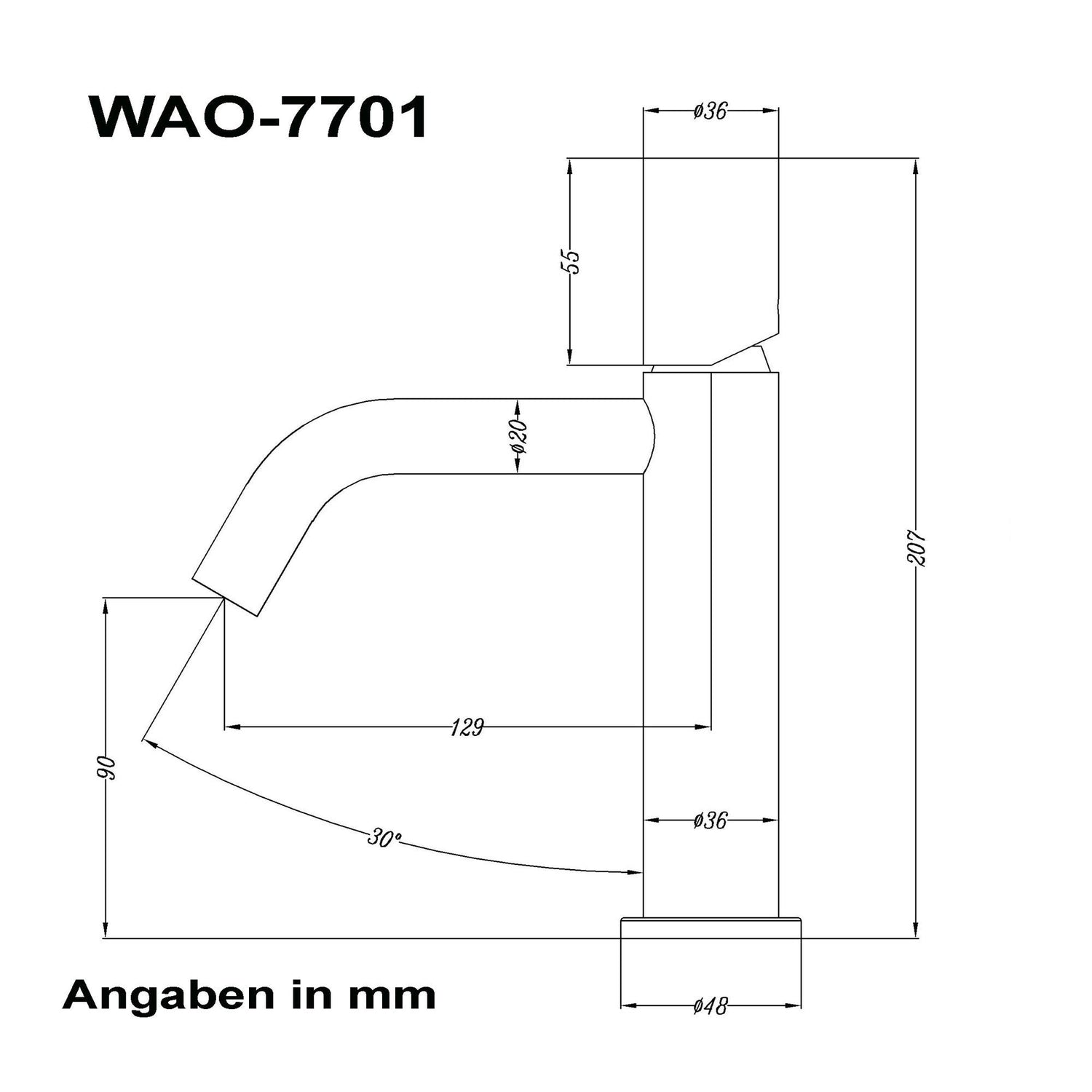 glasvilla Armatur Wasserhahn Bad Waschbeckenarmatur Badinstallationen Einhebelmischer WAO-7701