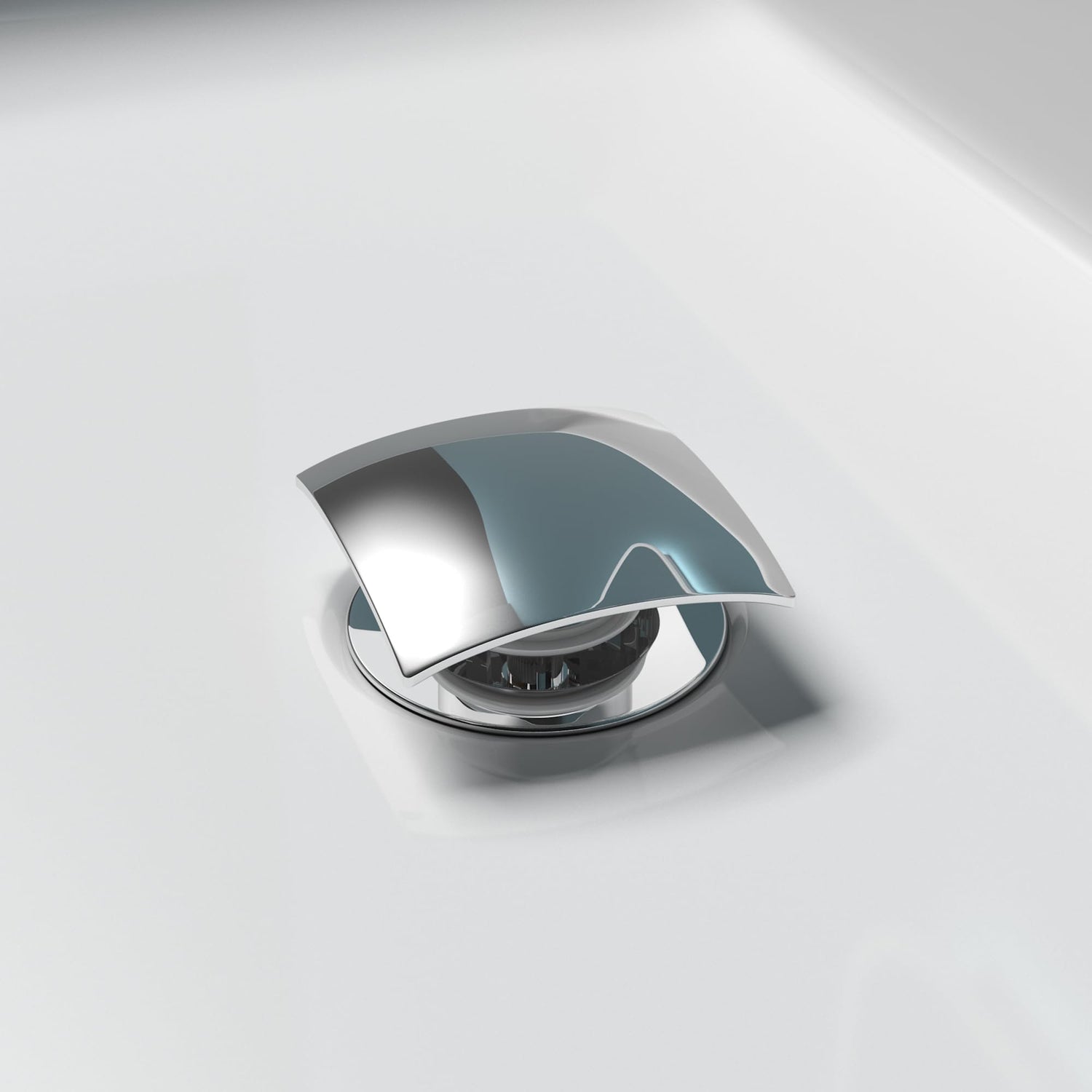 - Das Ventil mit DIN-Anschlüsse fügt sich passgenau in aller handelsüblichen Waschbecken ein.