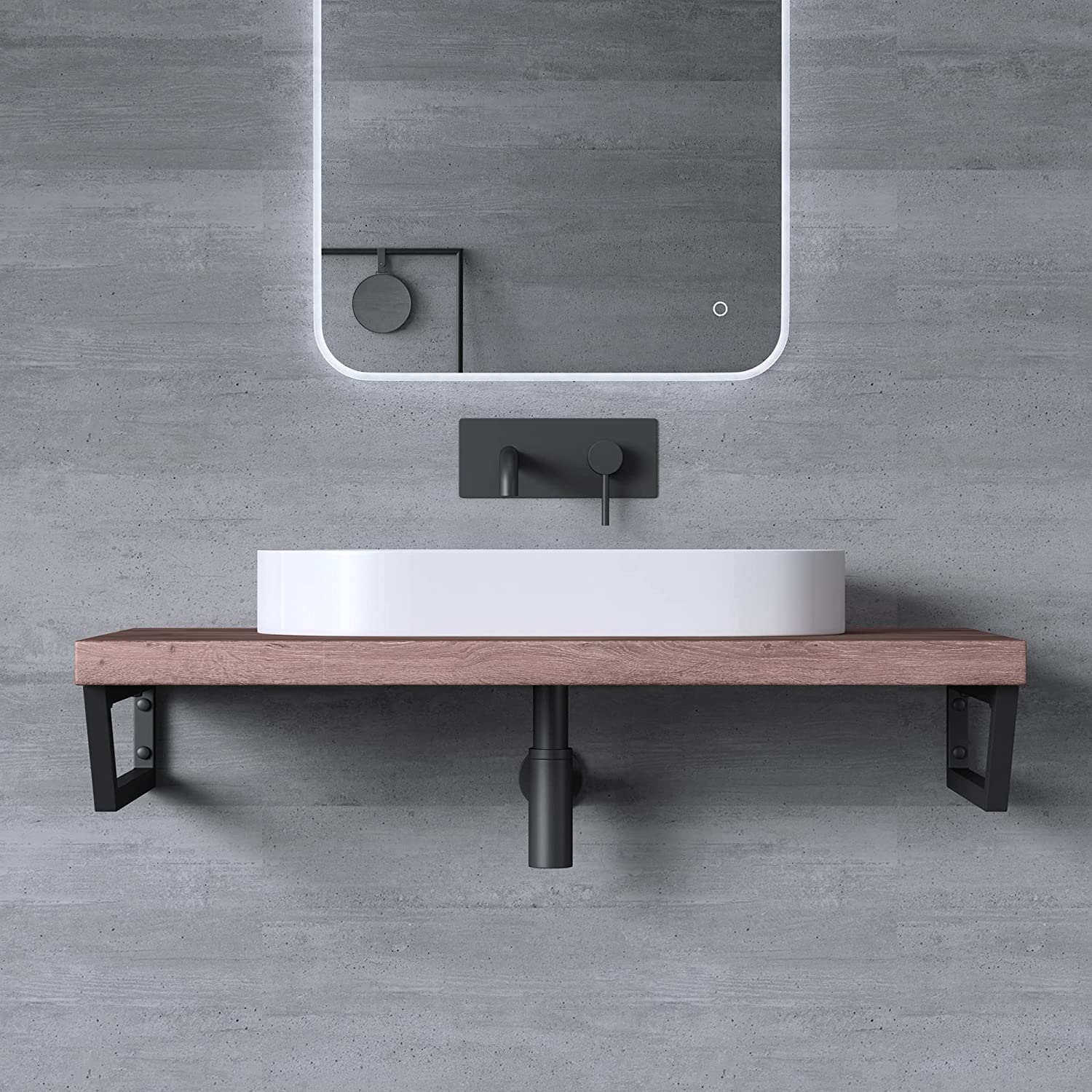 Die Edelstahl- Halterung WH04 eignet sich hervorragend für moderne Aufsatzwaschbecken.