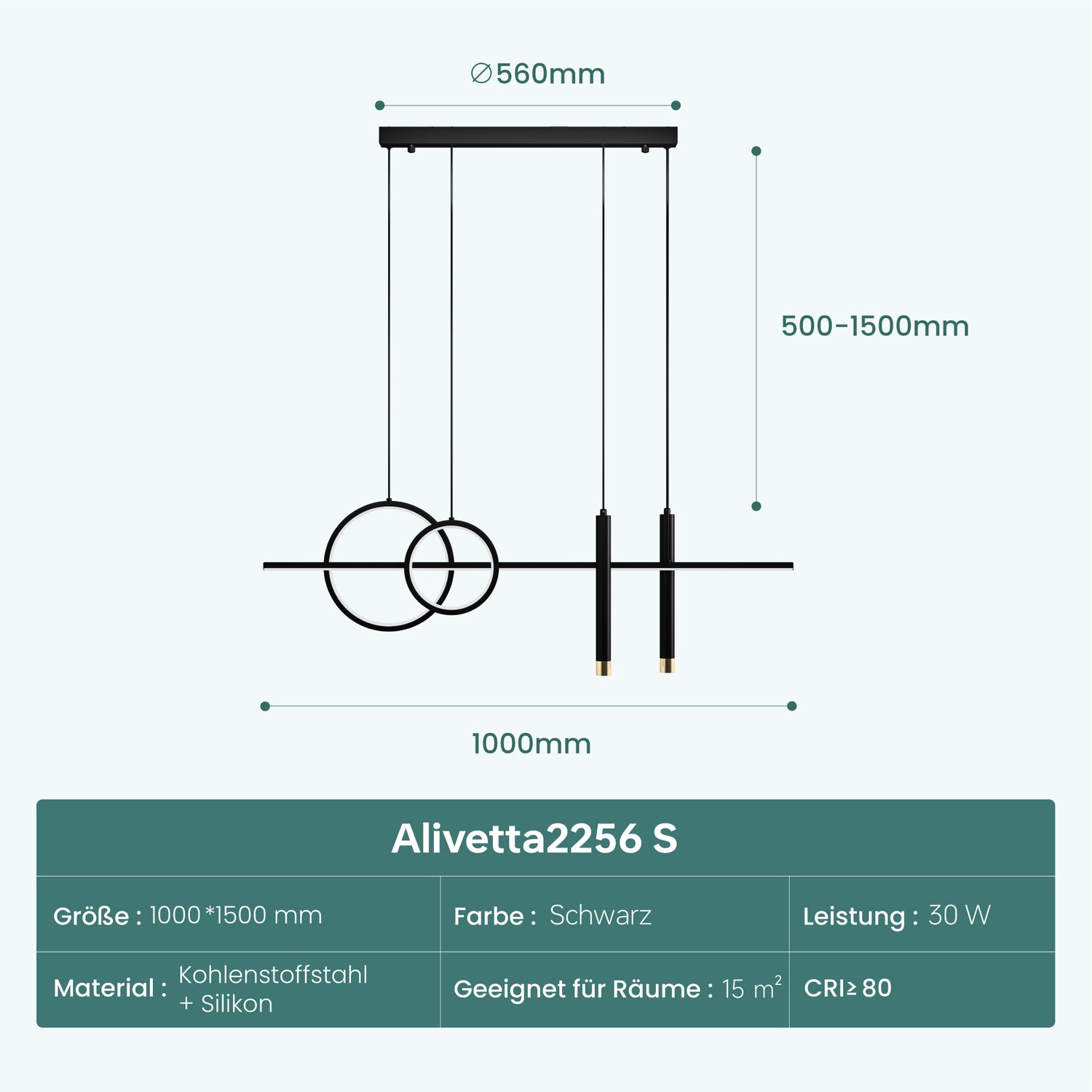 - 1 Meter frei verstellbares Kabel