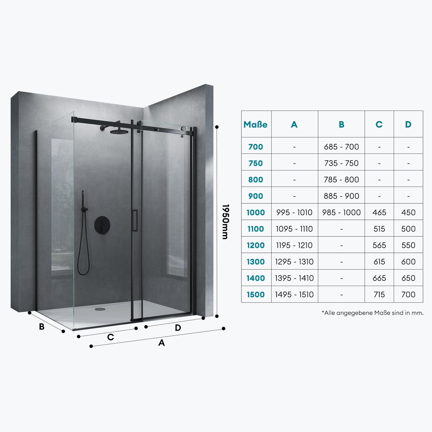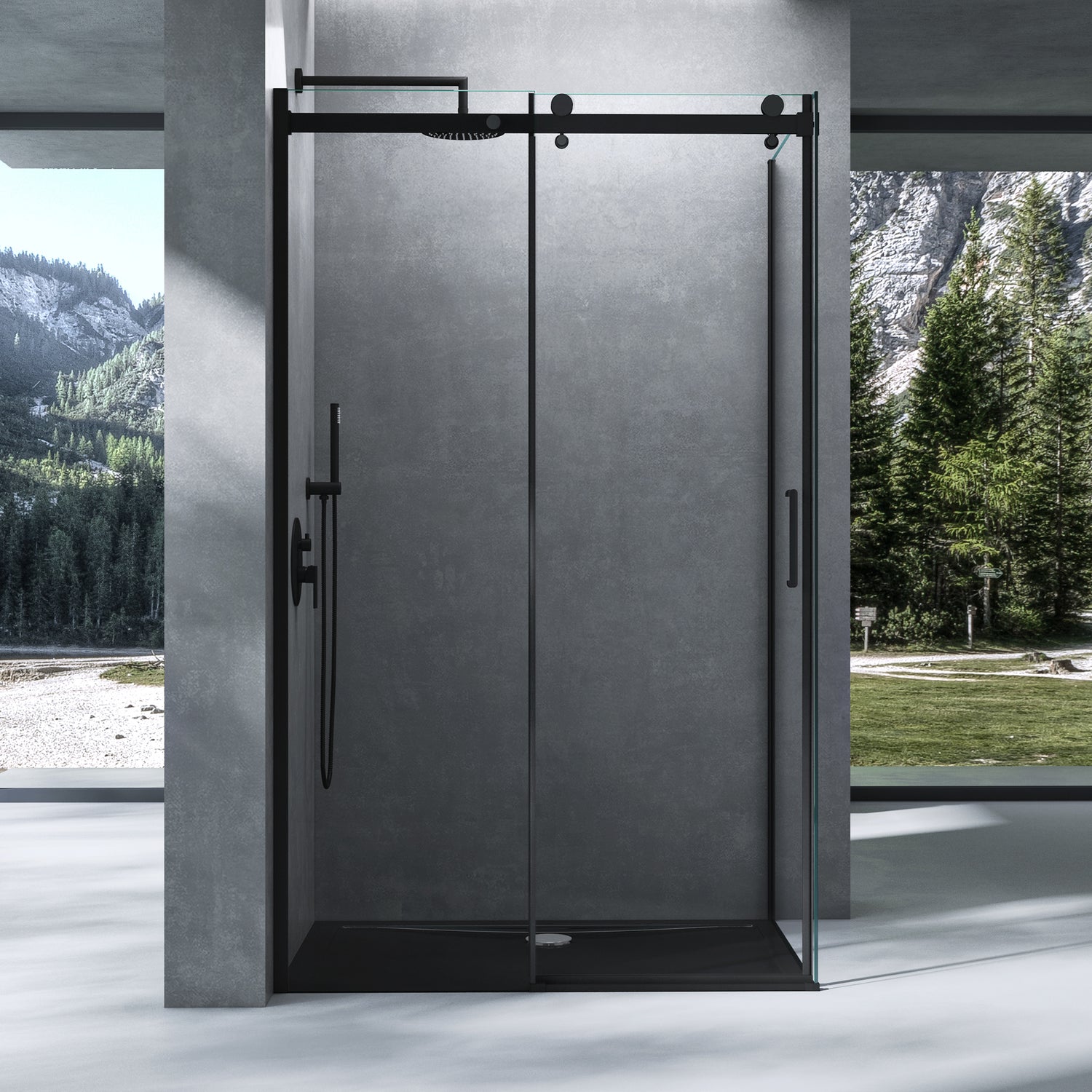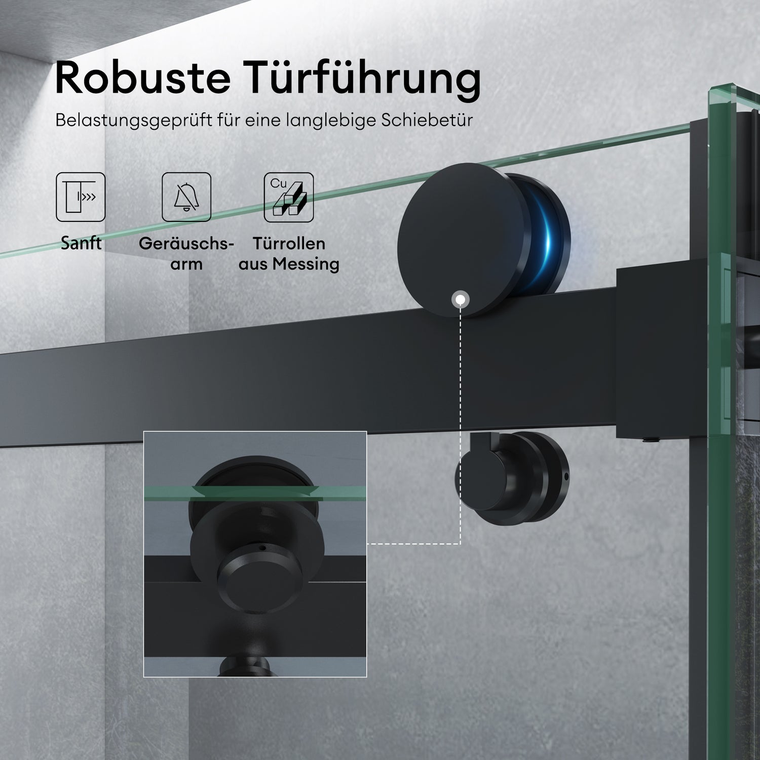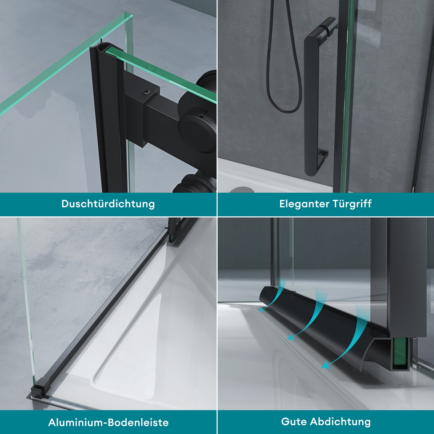 glasvilla Duschkabine mit Schiebetür Duschabtrennung 8mm ESG-Sicherheitsglas Nano-Beschichtung Hebe-Senk-Mechanismus Rav19 Schwarz