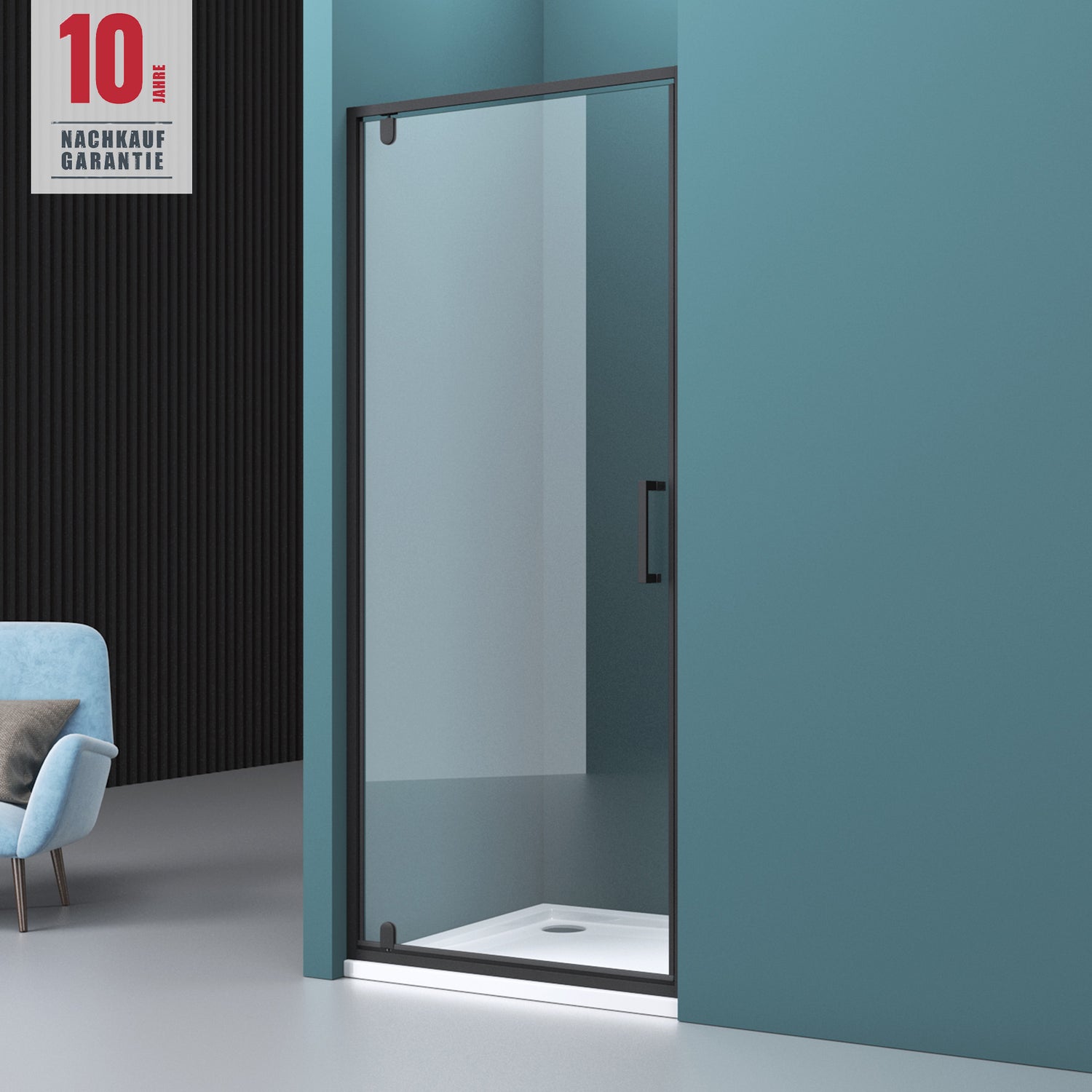 glasvilla Duschtür Nischentür dusche Duschabtrennung Duschkabine Nischendrehtür Duschwand 8mm Klarglas ESG-Sicherheitsglas mit Nanobeschichtung Teramo61K