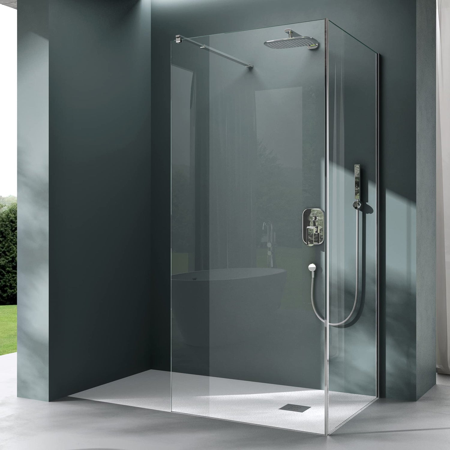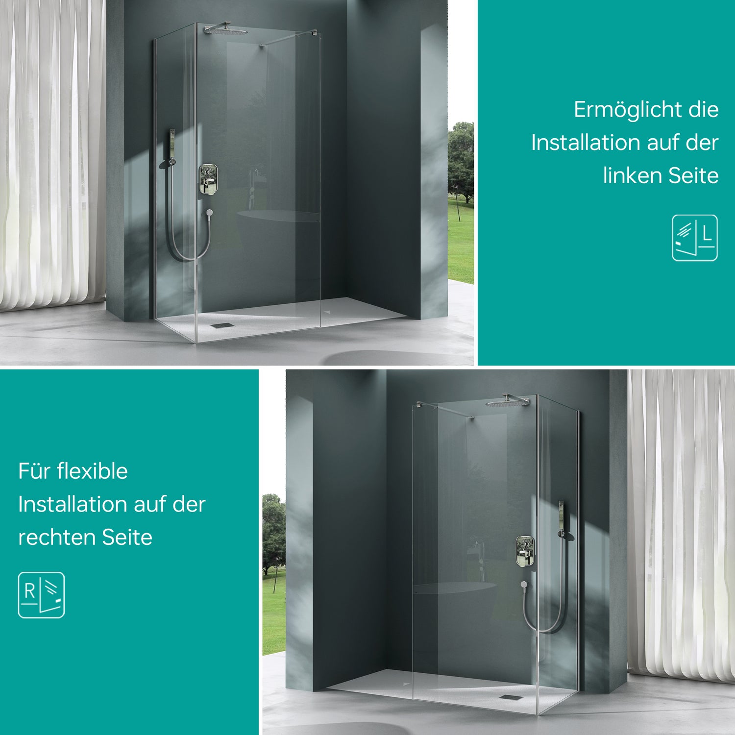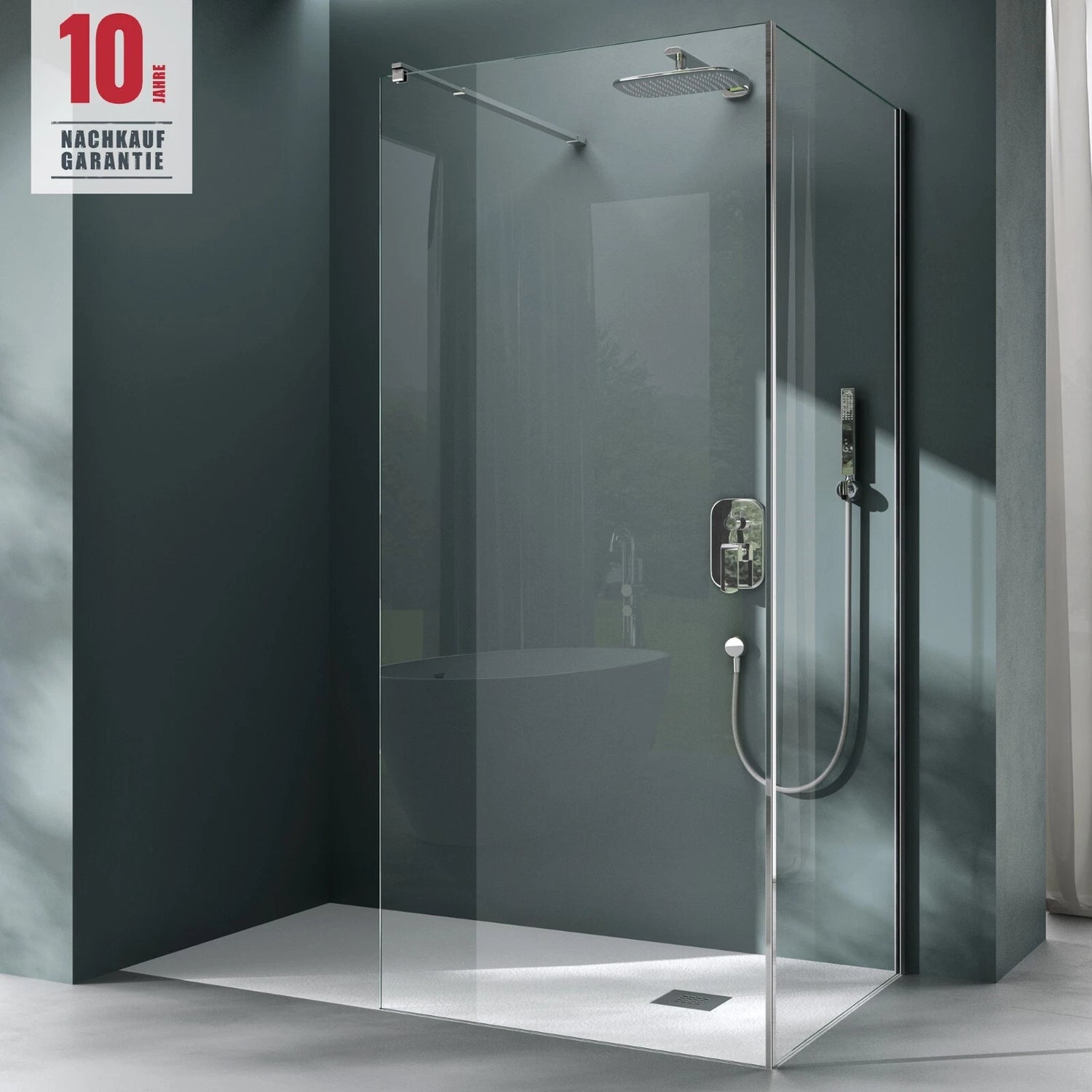 glasvilla Duschwand Duschabtrennung Walk-In Dusche 8mm Klarglas ESG-Sicherheitsglas mit Nanobeschichtung Rechteckiger Stabilisator BremenL