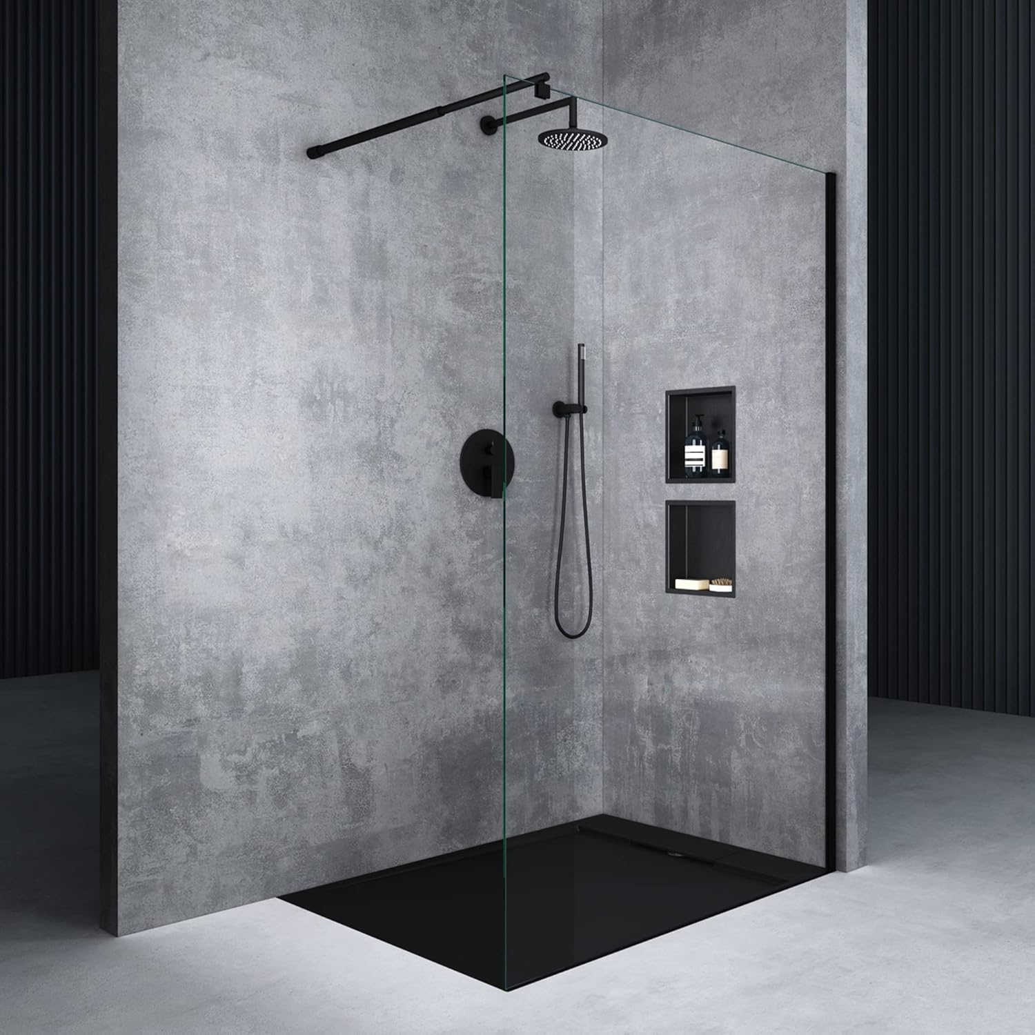 glasvilla Duschwand für Dusche Duschabtrennung Walk-In ESG-Sicherheitsglas 10mm NANO Glas BRAM1&BRAM3 Bremen2 Schwarz