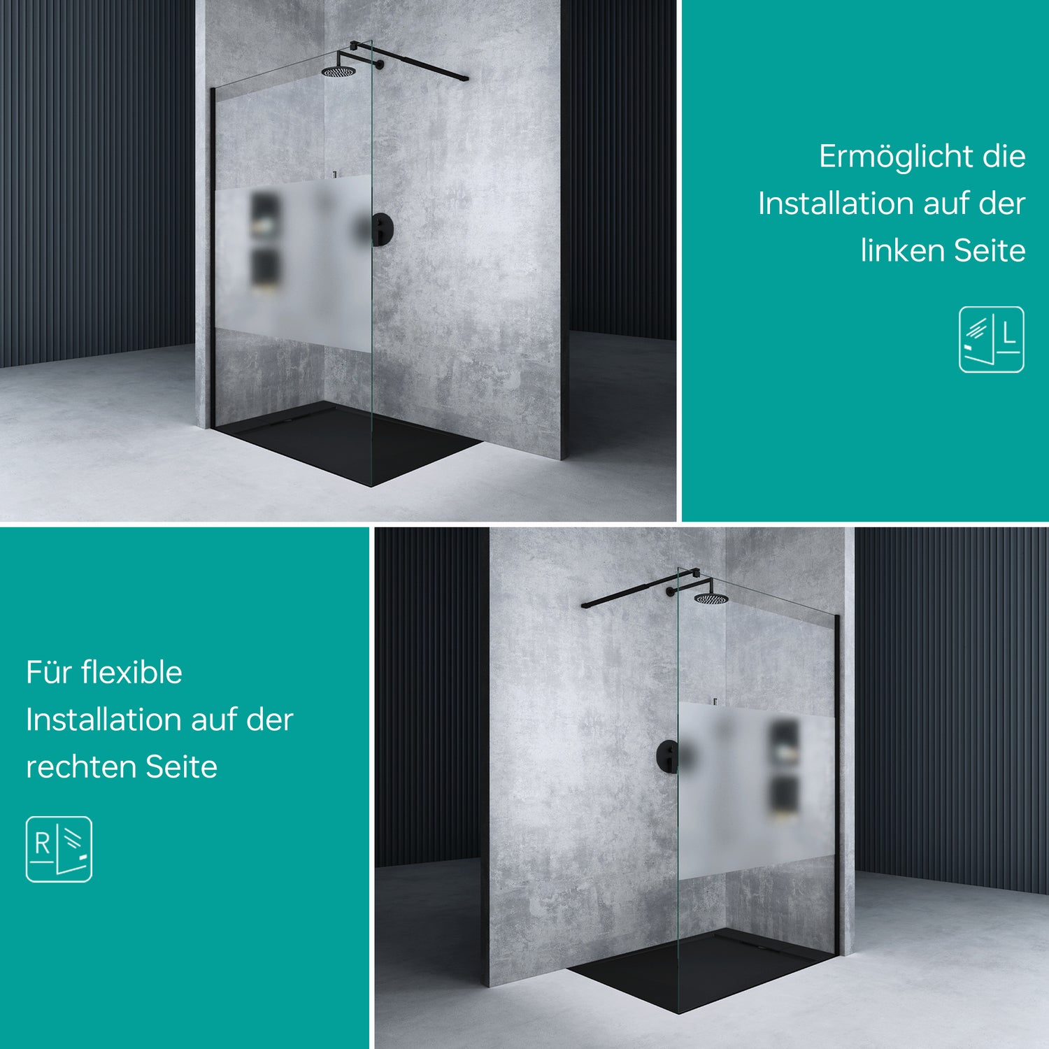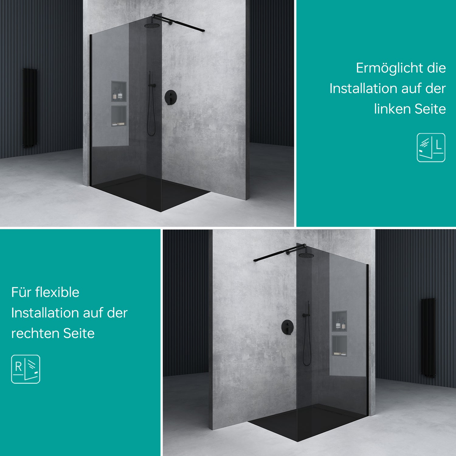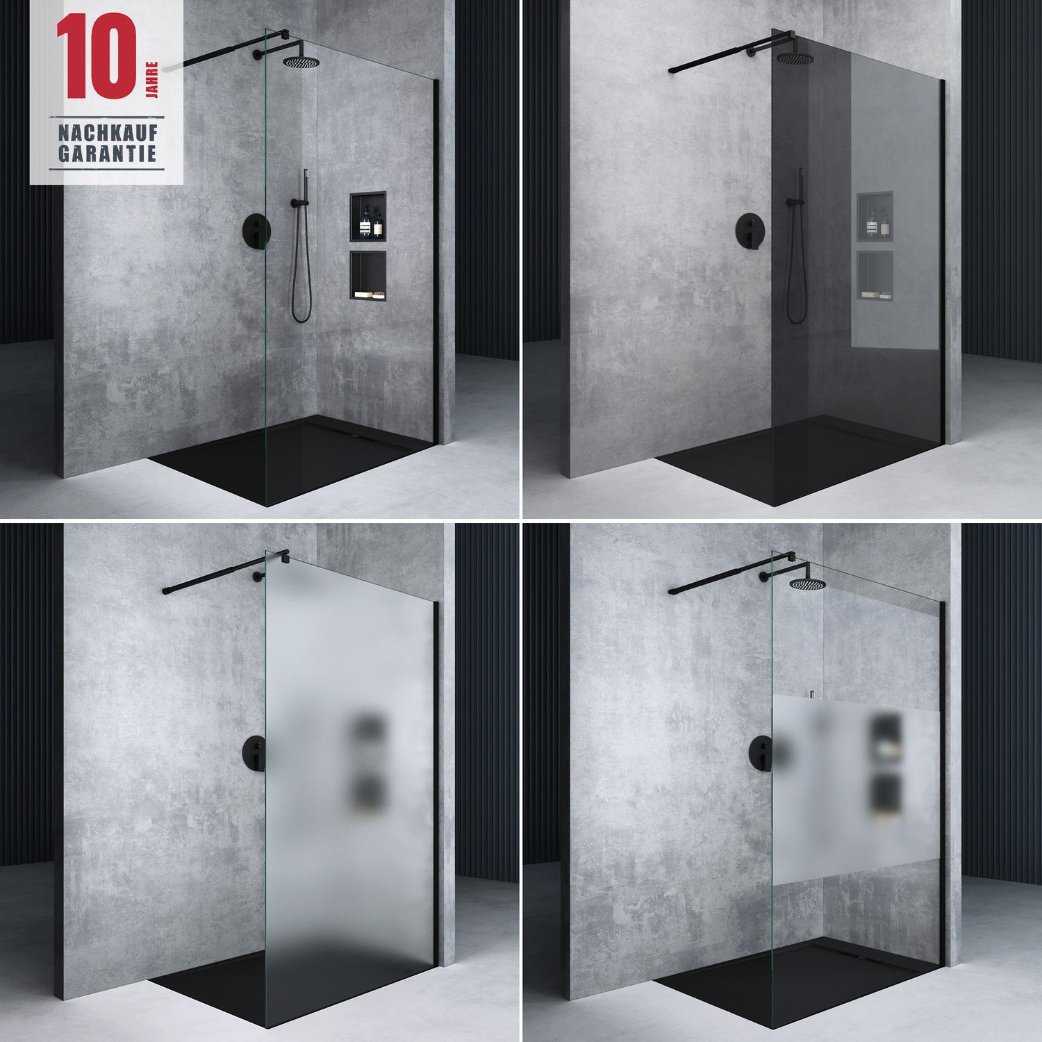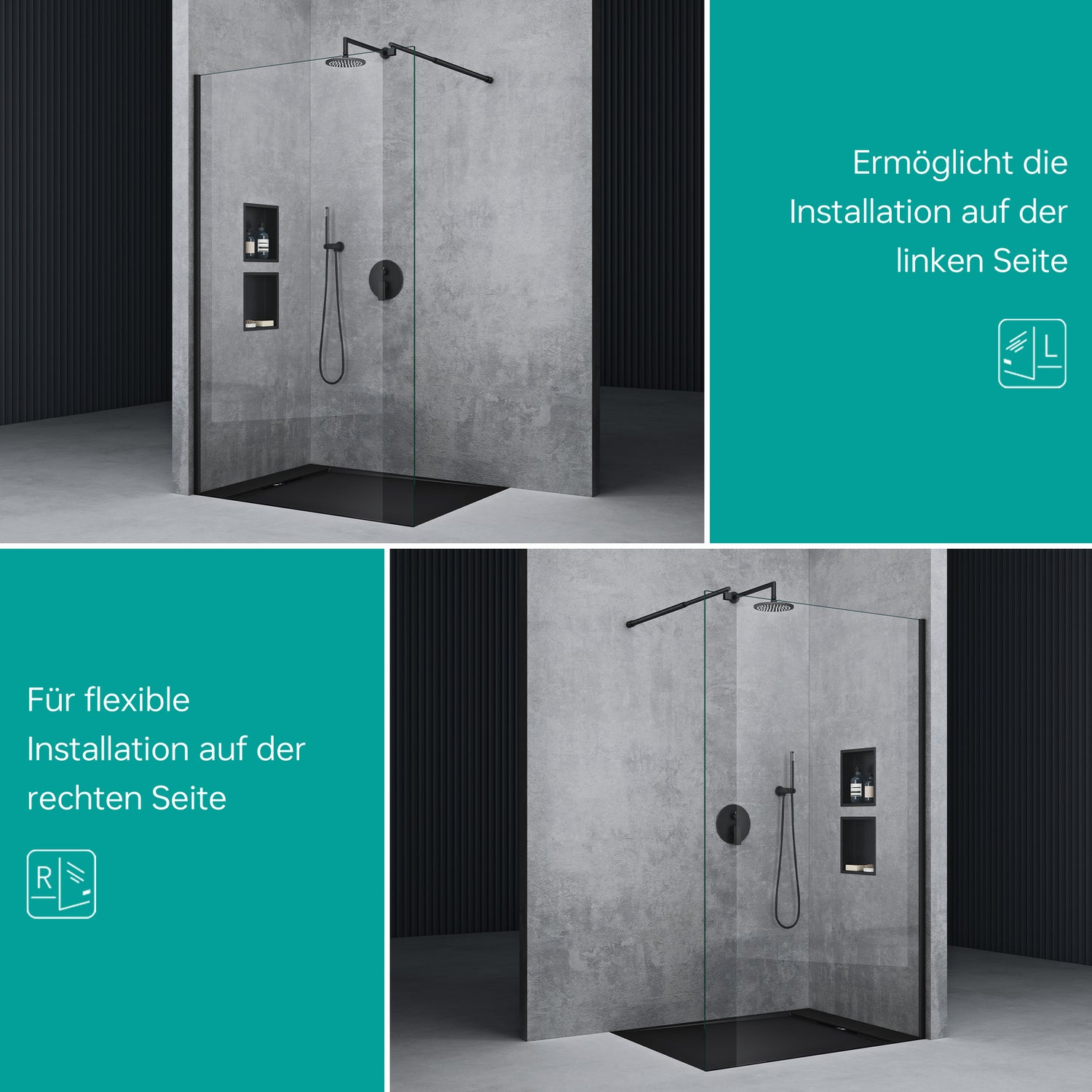 glasvilla Duschwand für Dusche Duschabtrennung Walk-In ESG-Sicherheitsglas 8mm NANO Glas BRAM1&BRAM3 Bremen1 Schwarz