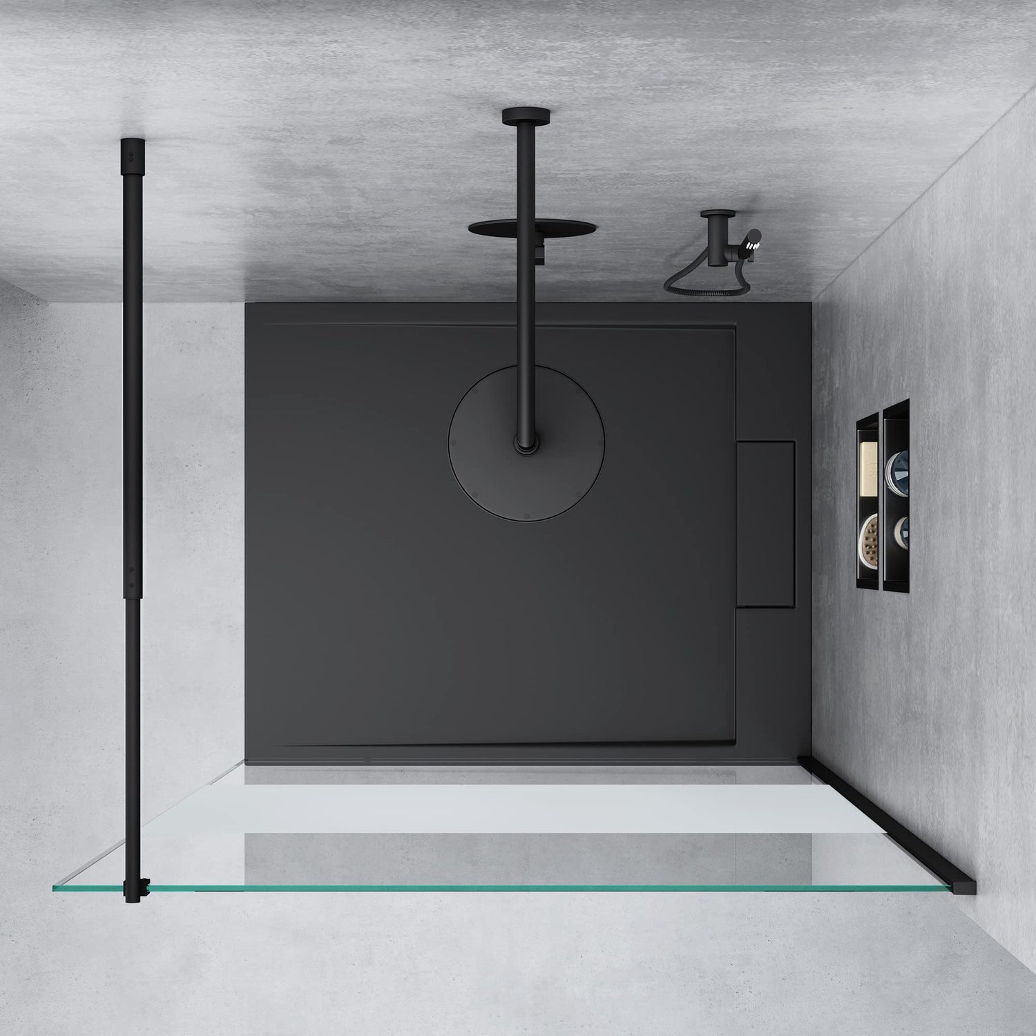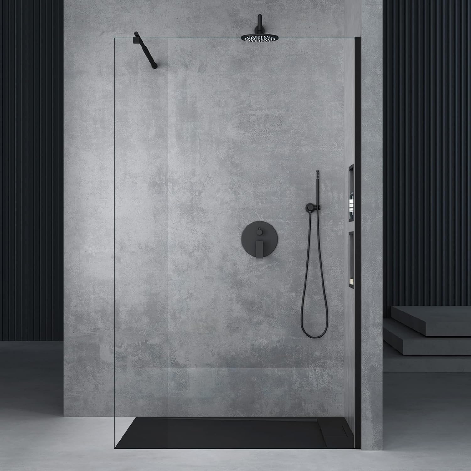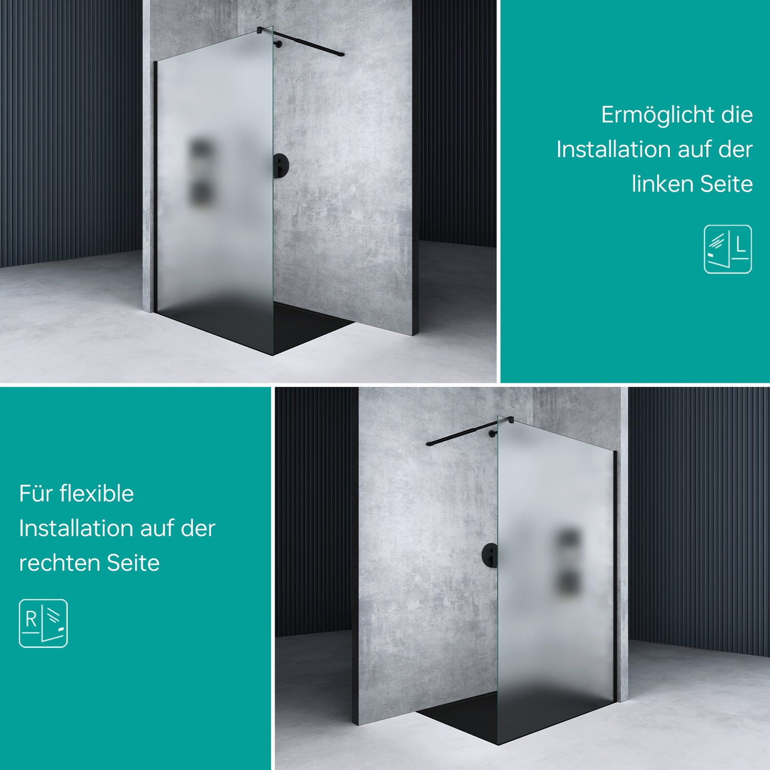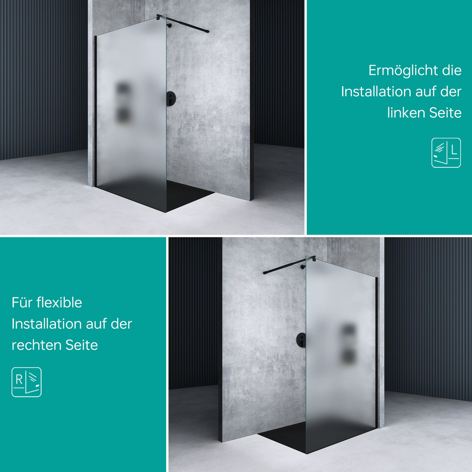 glasvilla Duschwand für Dusche Duschabtrennung Walk-In ESG-Sicherheitsglas 8mm NANO Glas BRAM1&BRAM3 Bremen1 Schwarz