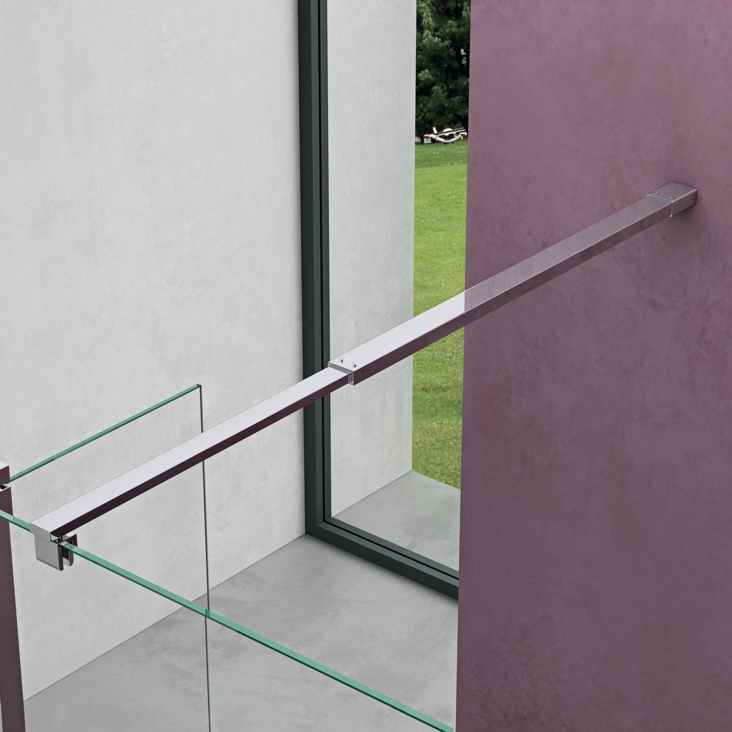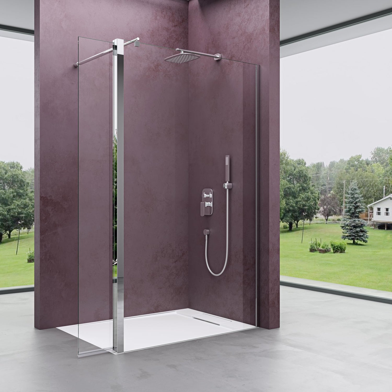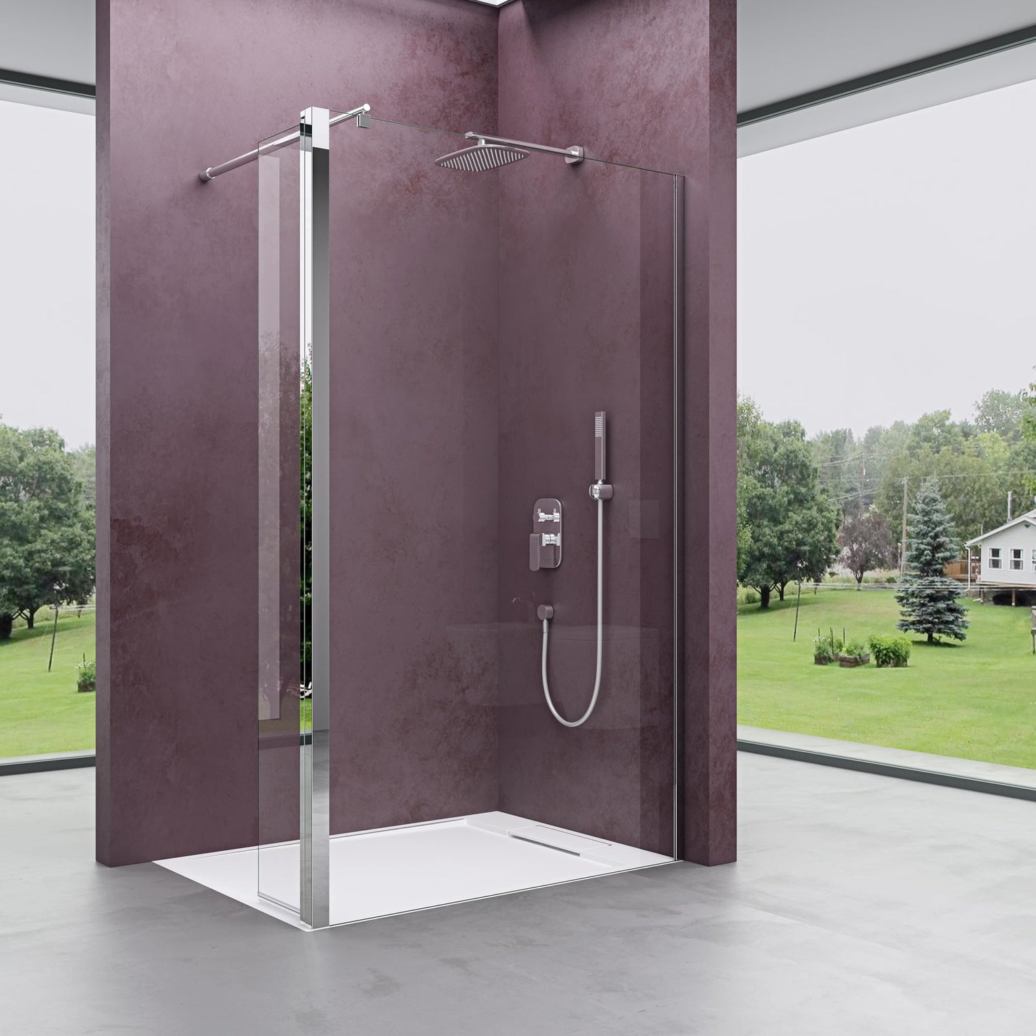 glasvilla Walk-In Duschwand für Dusche Duschabtrennung 10mm Klarglas mit 30cm Nebenteil ESG-Sicherheitsglas mit Nanobeschichtung Runder & Rechteckiger Stabilisator Bremen02K-Plus