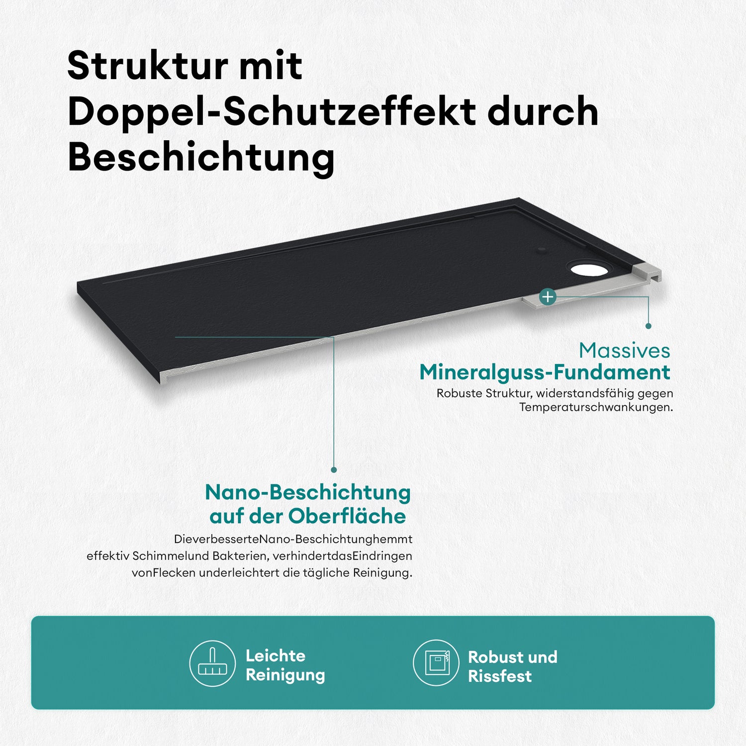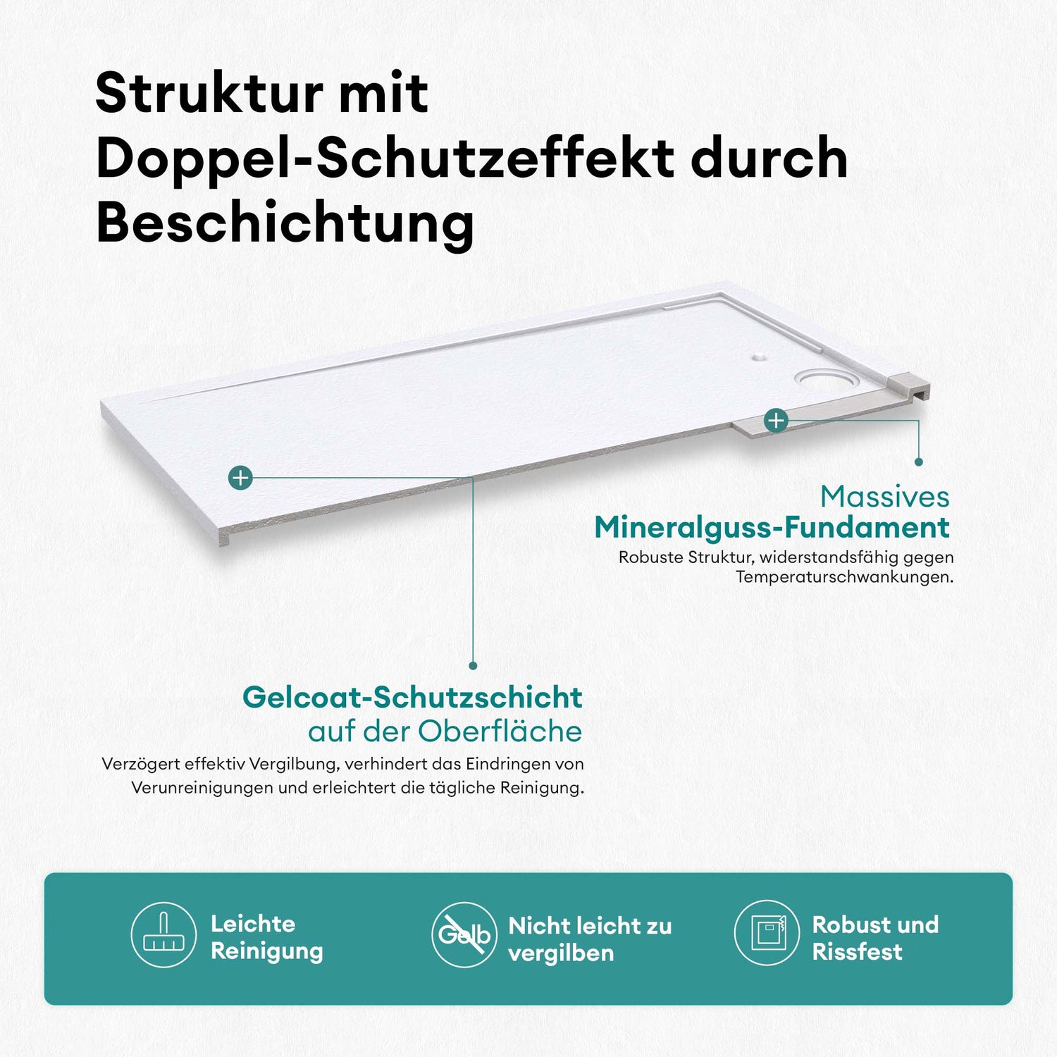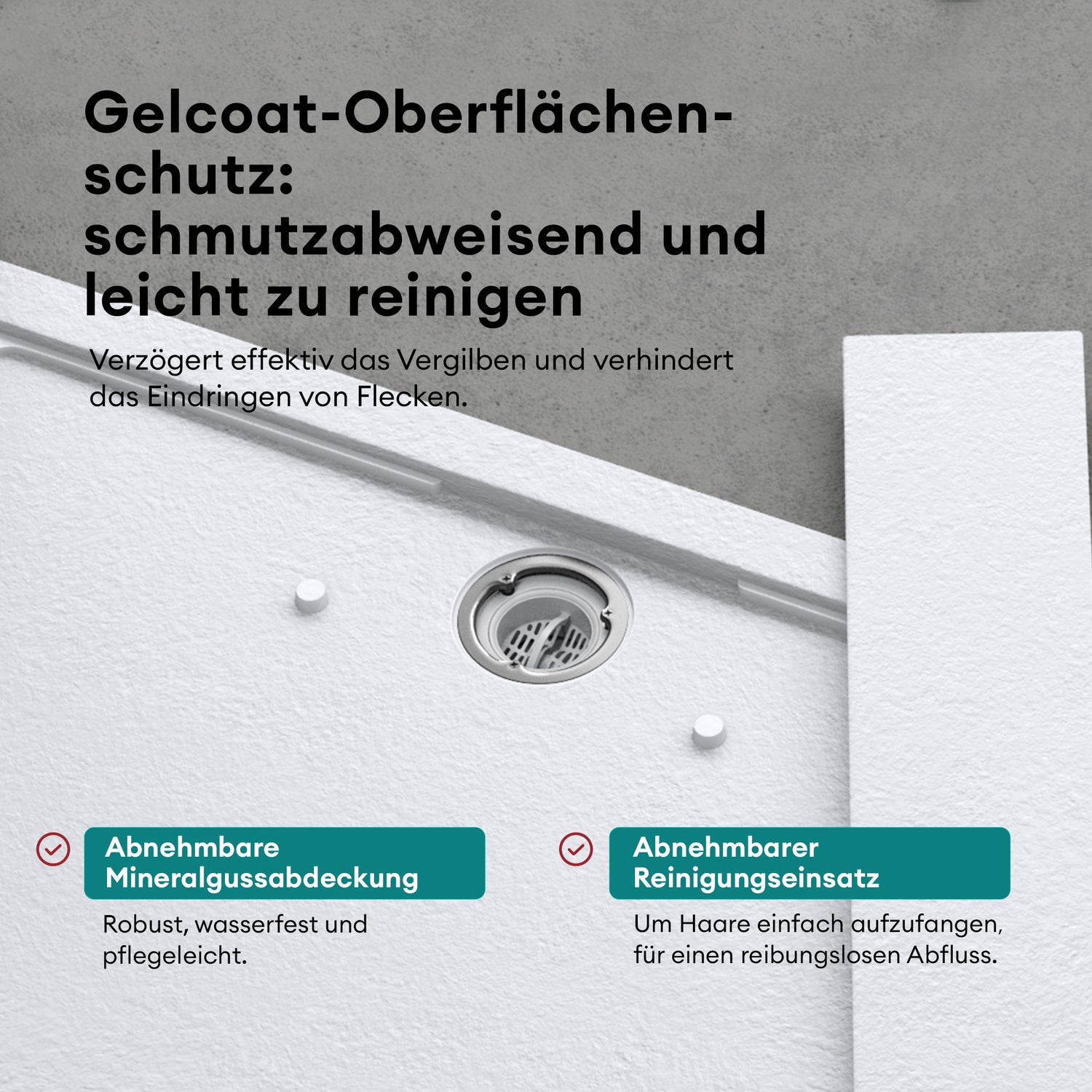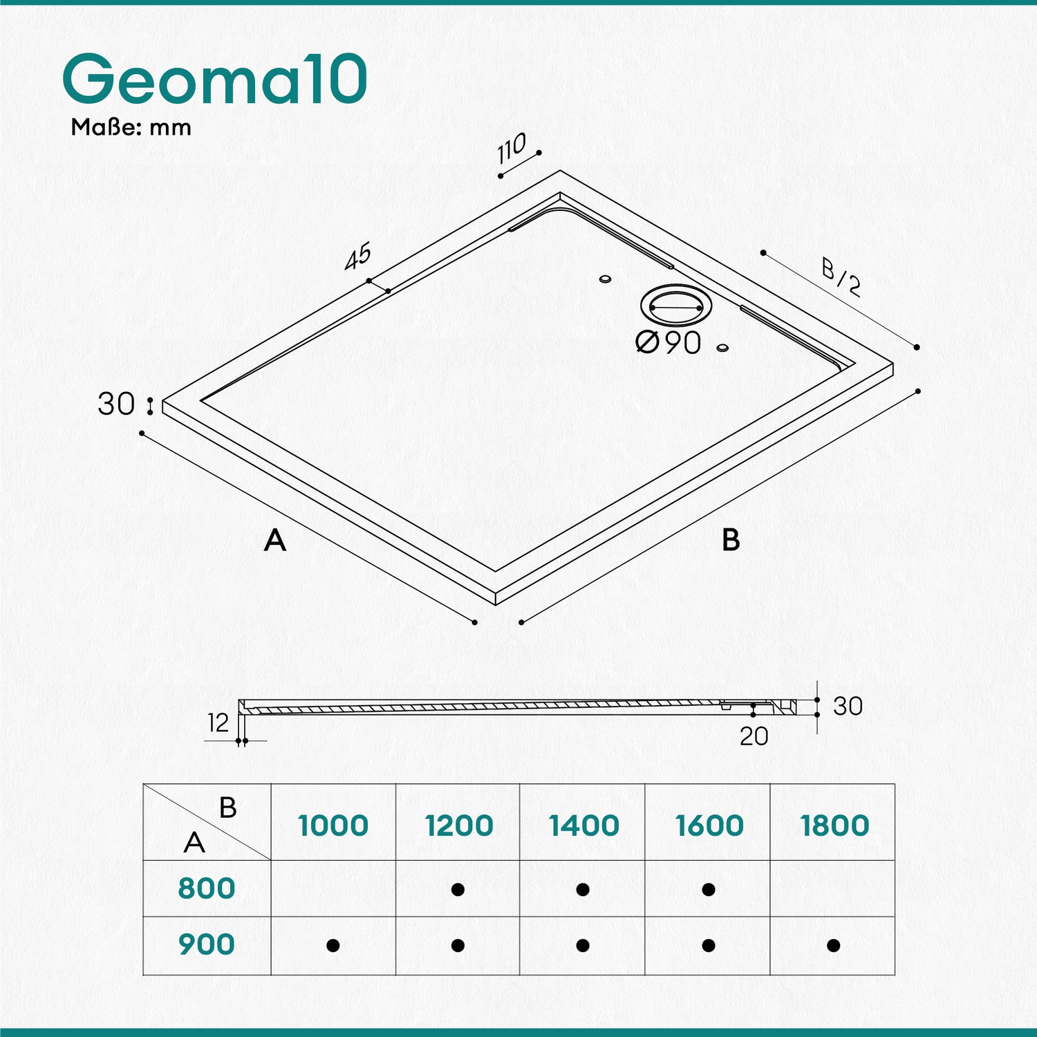 glasvilla Duschwanne Duschtasse aus Mineralguss Mineralgusswan DIN-Anschlüsse Geoma10