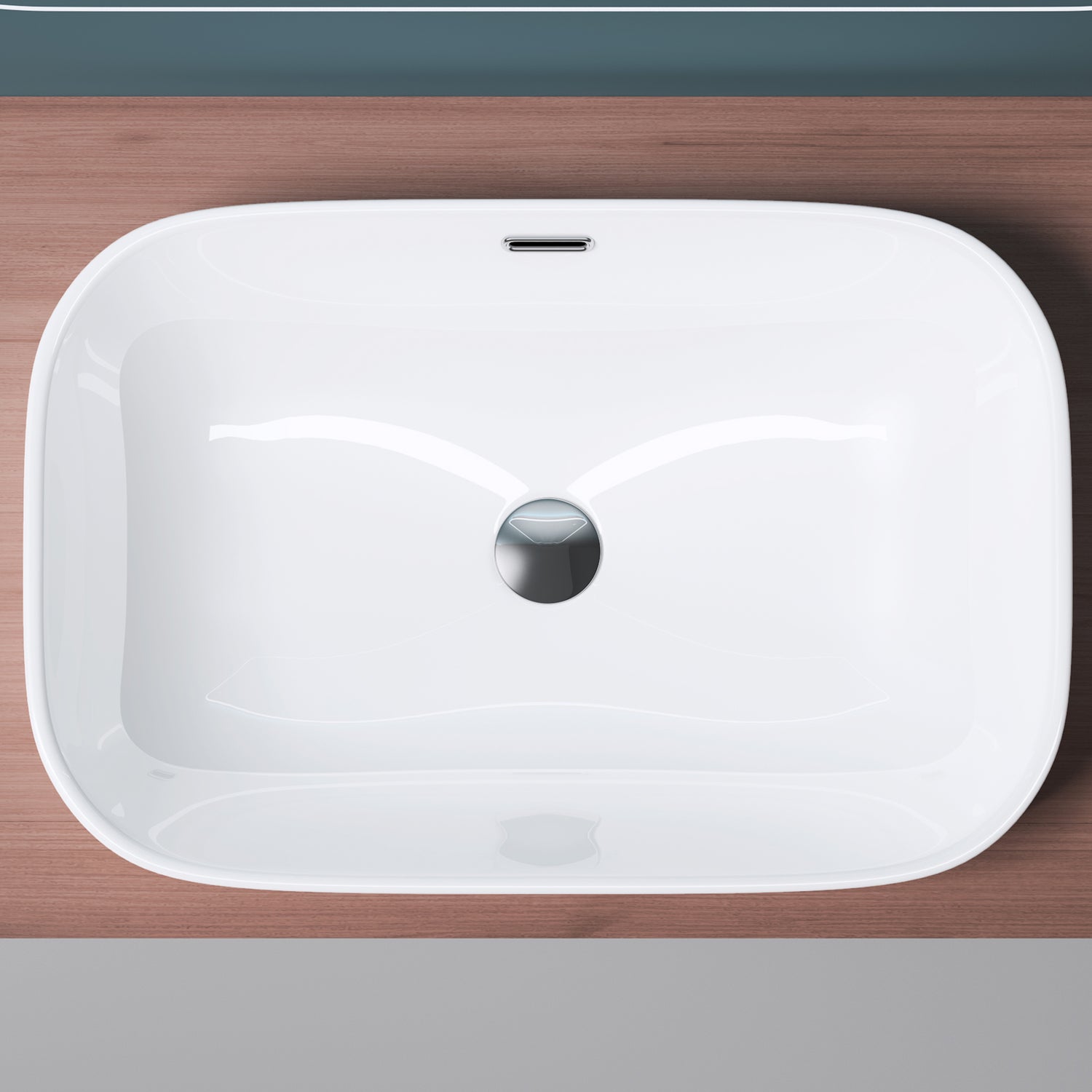 Große Waschbecken passen nicht in jedes Badezimmer. Wenn Sie dennoch nicht auf ein großes Waschbecken verzichten möchten, empfehlen wir ein Einbauwaschbecken. Bei der Montage in einer Platte können Sie von den 16cm Gesamthöhe ganze 10cm z.B. in einem Waschbeckenunterschrank verschwinden lassen. Die restlichen 6cm ragen oberhalb der Platte empor. Von aussen noch eine dünne Schicht Silikon herum und schon ist die Montage des Waschbeckens geschafft.