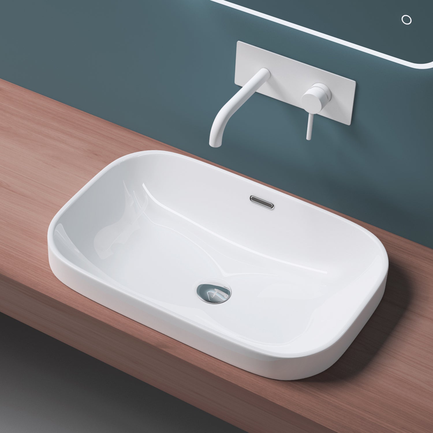 Da zwischen der Oberkante des Waschbeckens und der Platte nur ca. 6cm Höhenunterschied ist, fällt die Wahl der Armatur sehr leicht. Egal ob Sie einen dezenten oder Groß dimensionierten Wasserhahn wählen, mit diesem Waschbecken sind Sie flexibel.