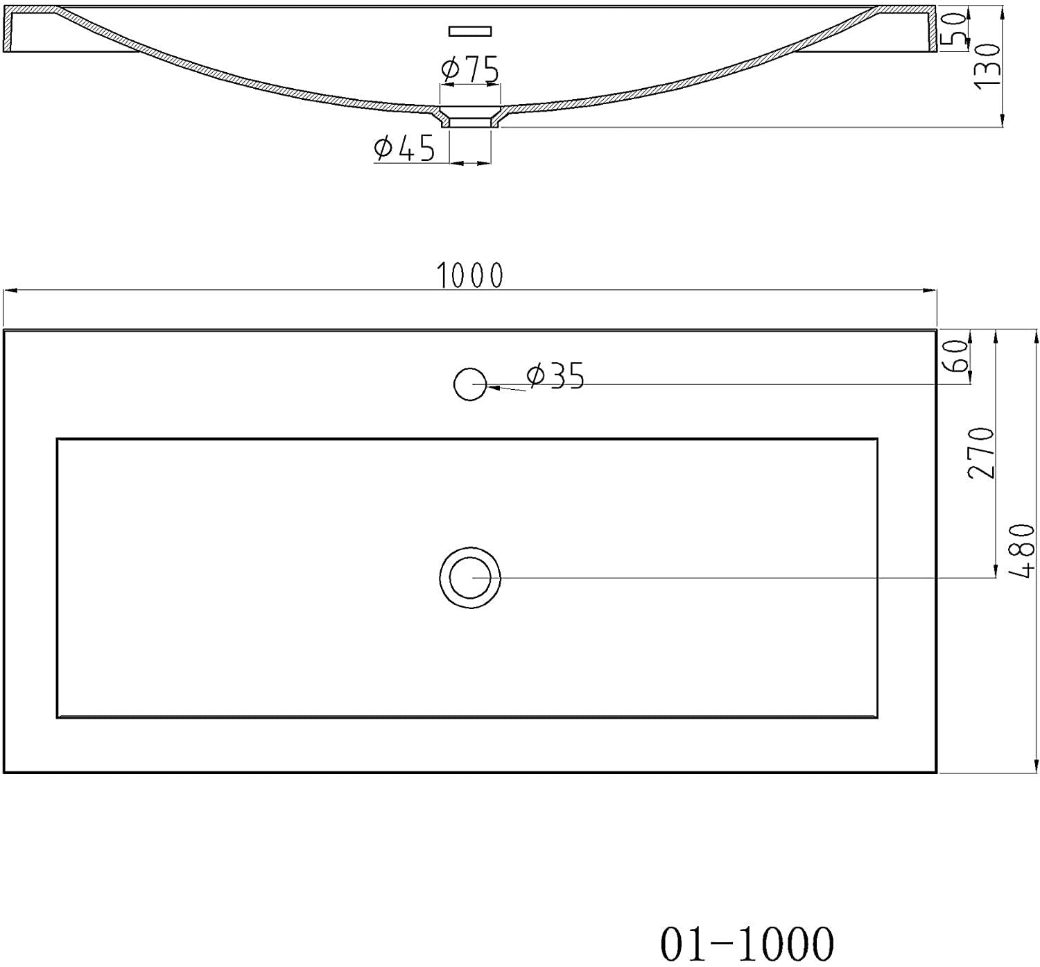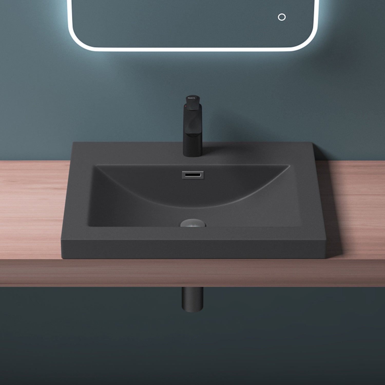 glasvilla Waschbecken Einbauwaschbecken Waschschale Waschtisch Mineralguss Rechteckig 1 Armaturenloch Überlauf-Funktion Col01