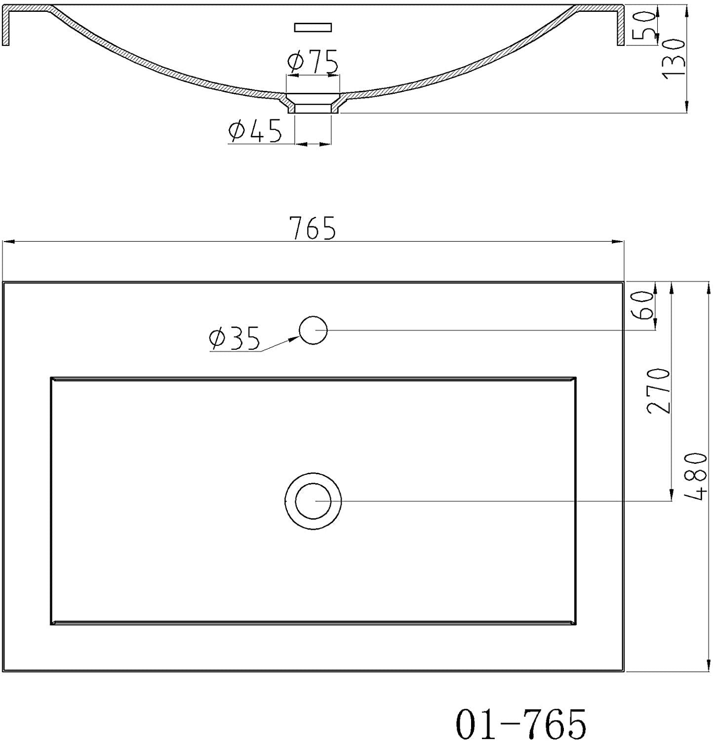 glasvilla Waschbecken Einbauwaschbecken Waschschale Waschtisch Mineralguss Rechteckig 1 Armaturenloch Überlauf-Funktion Col01 - Glänzend Weiß / 76.5cm ist auf Lager und wird versandt, sobald es wieder verfügbar ist
