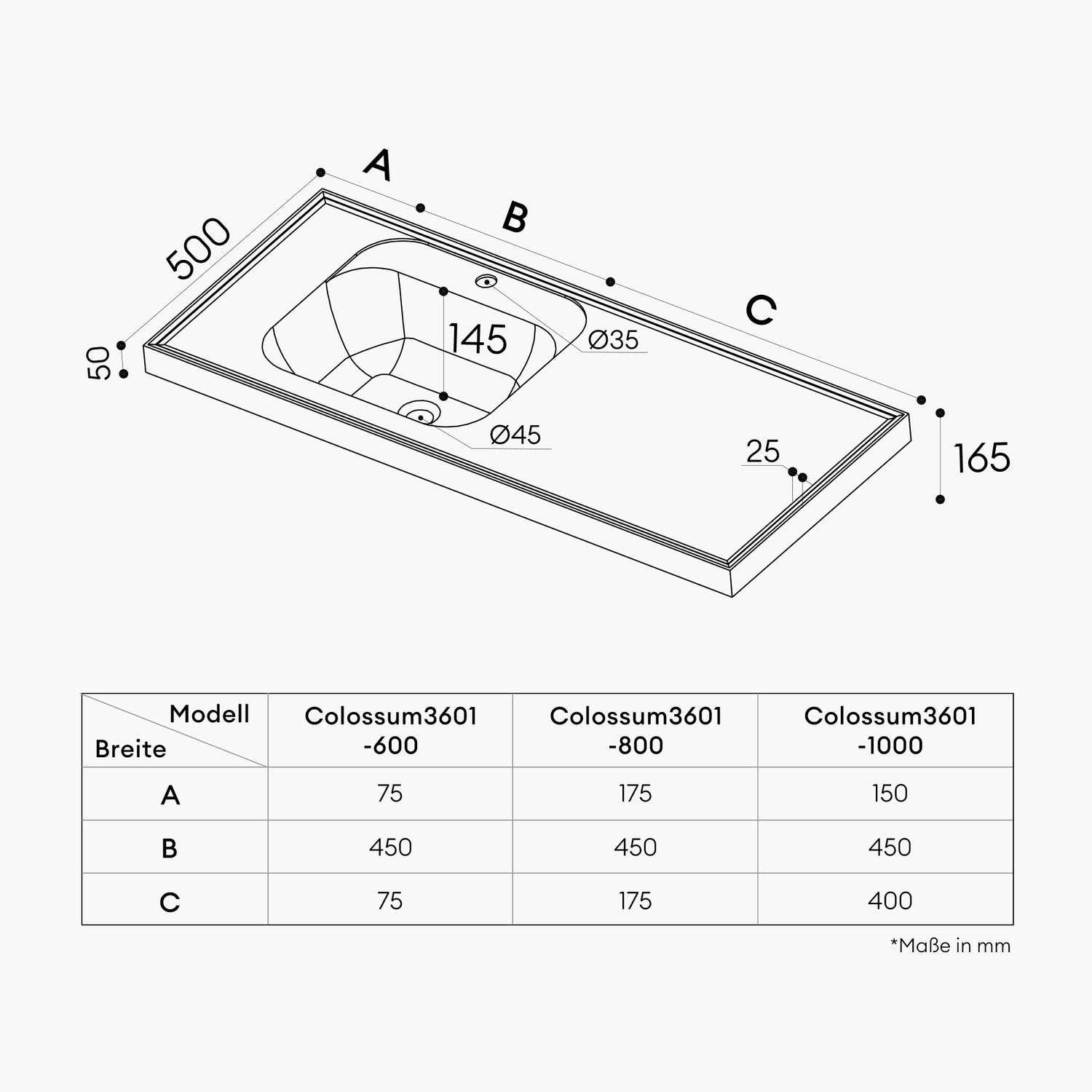 - als Einbauwaschbecken geeignet