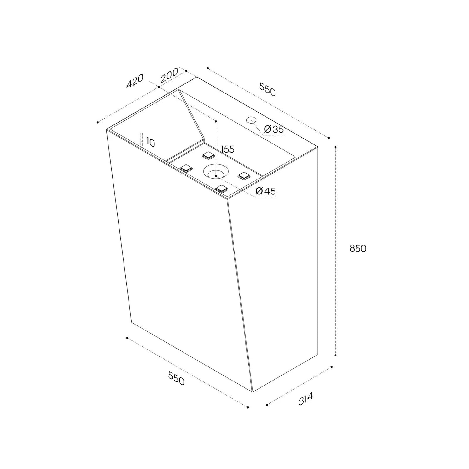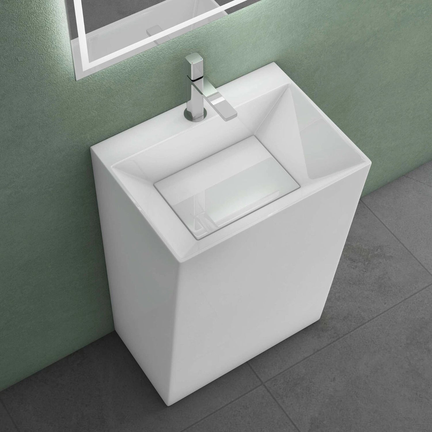 glasvilla Design Standwaschbecken freistehend Col40 weiß, aus Mineralguss, Waschtisch, BTH: 55x42x85cm