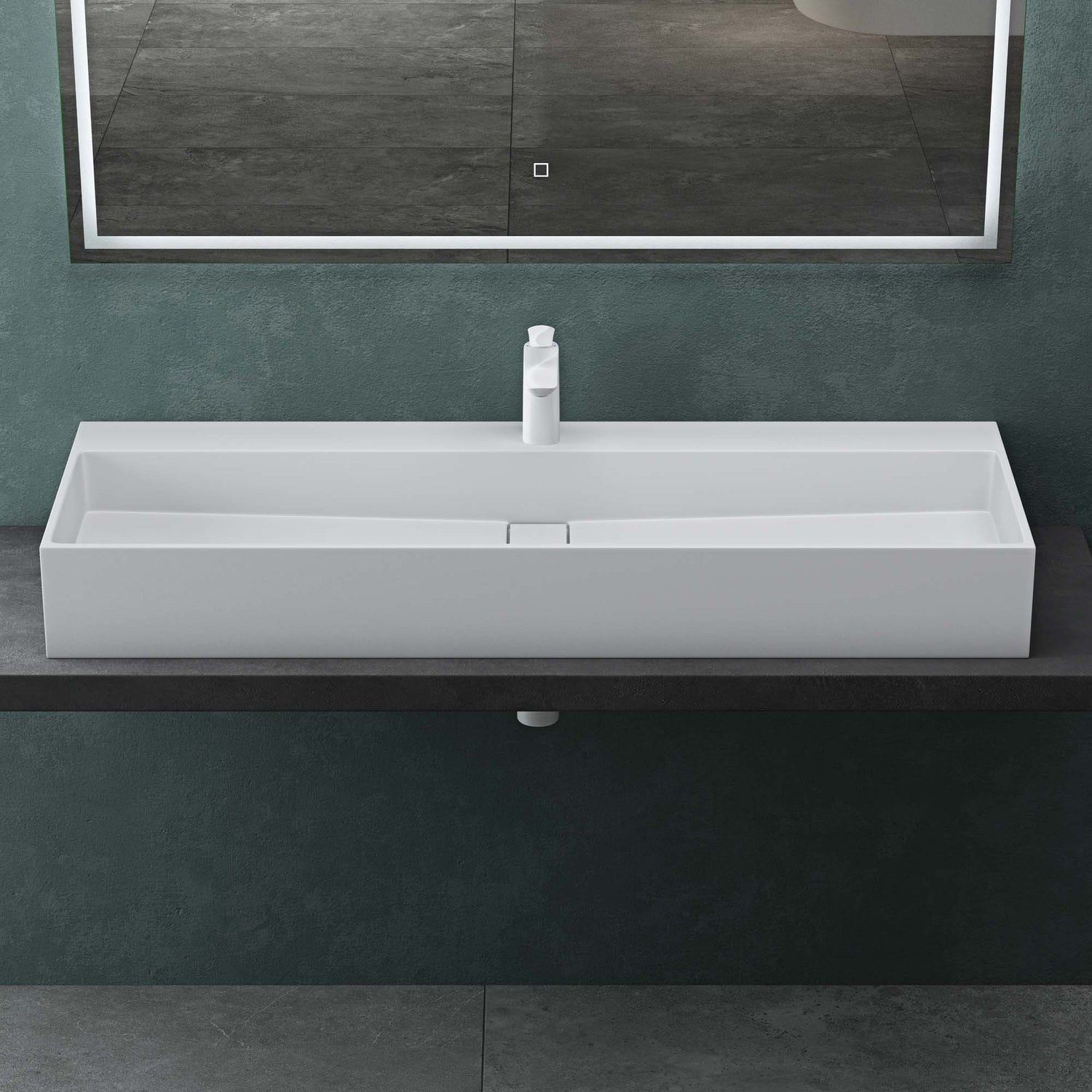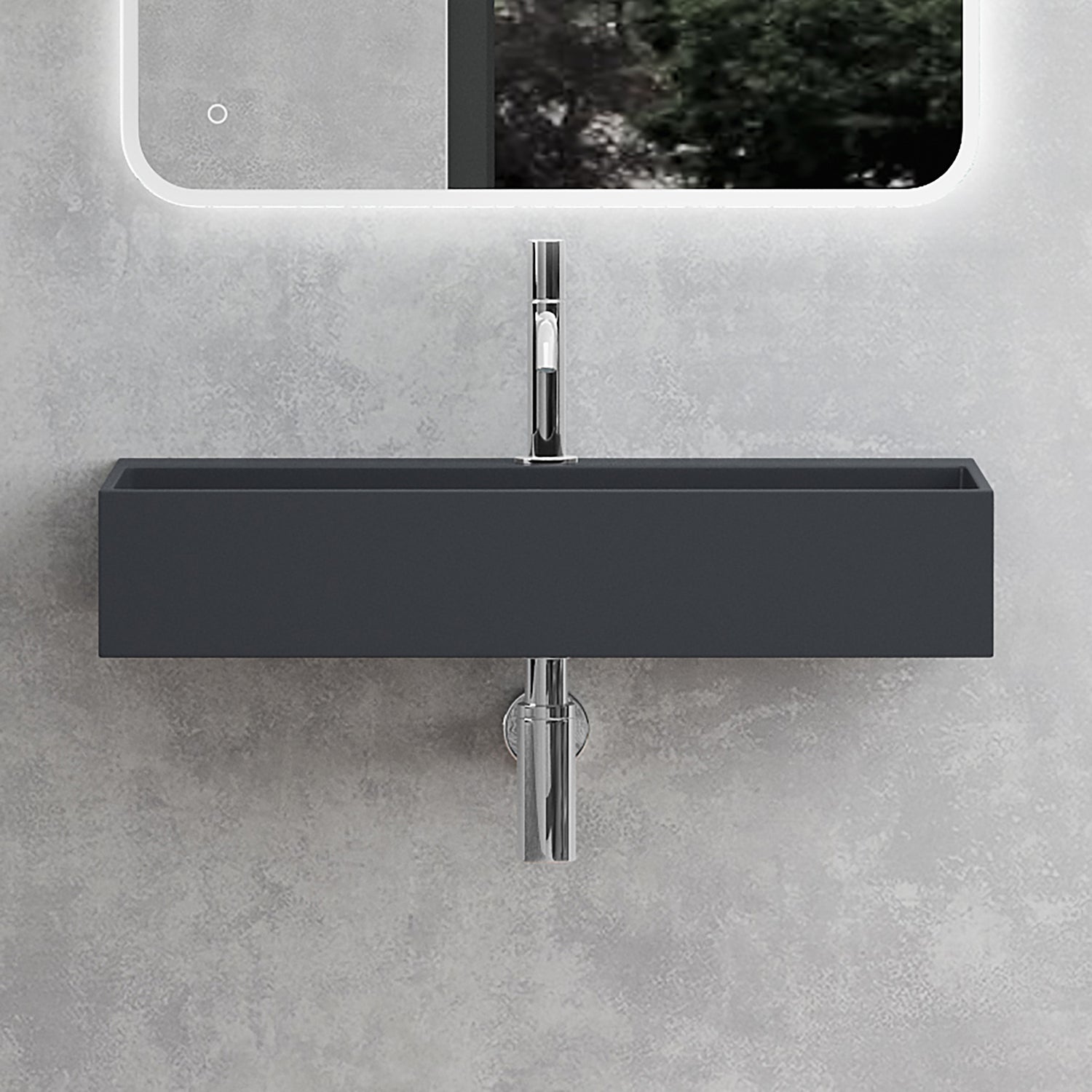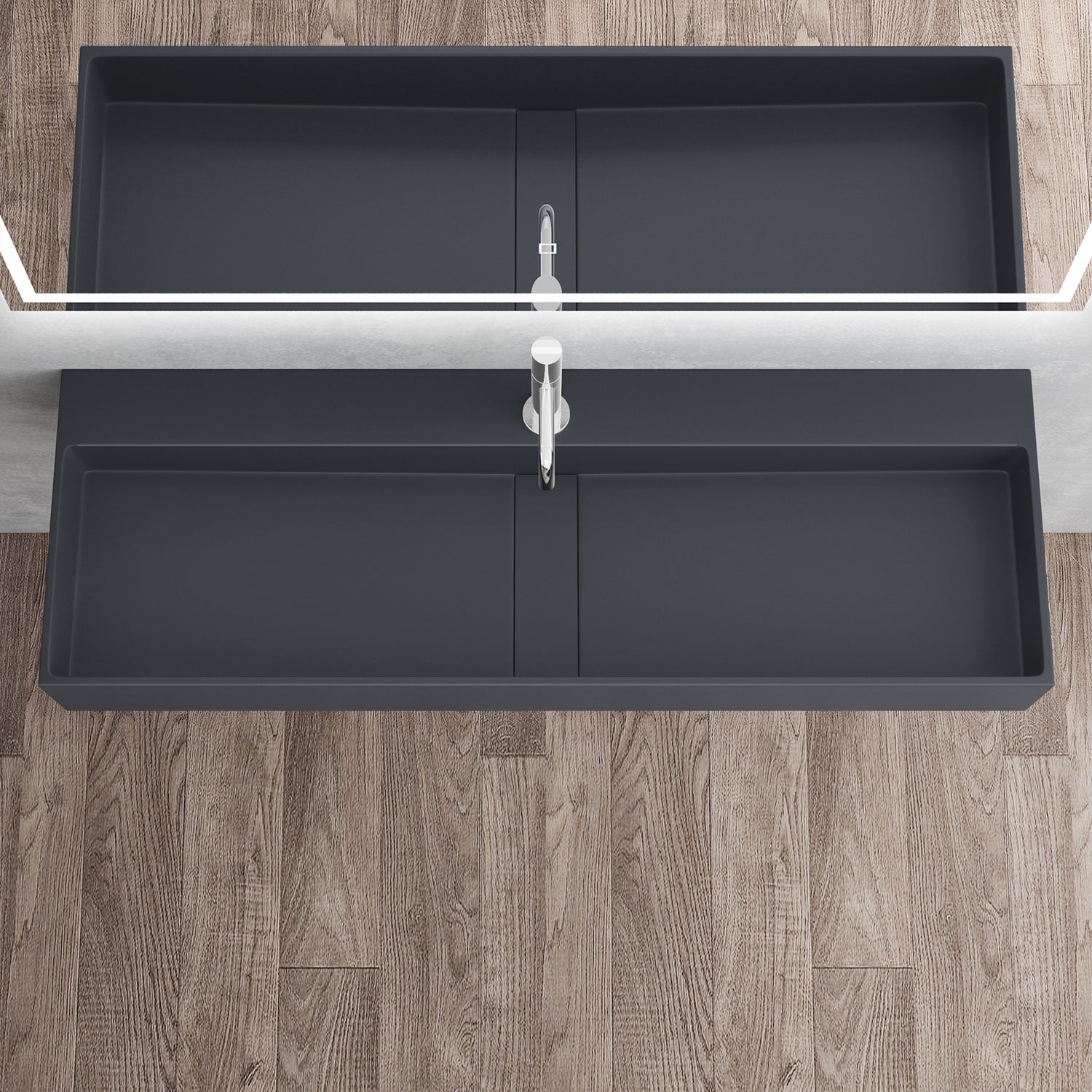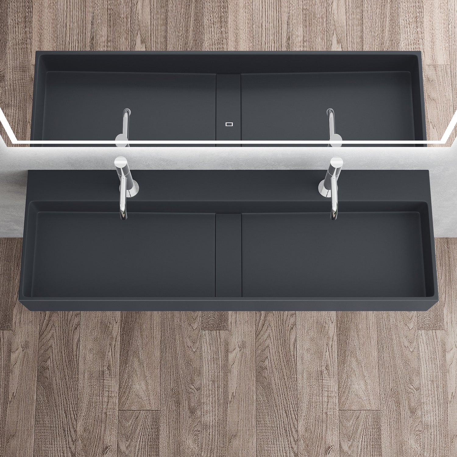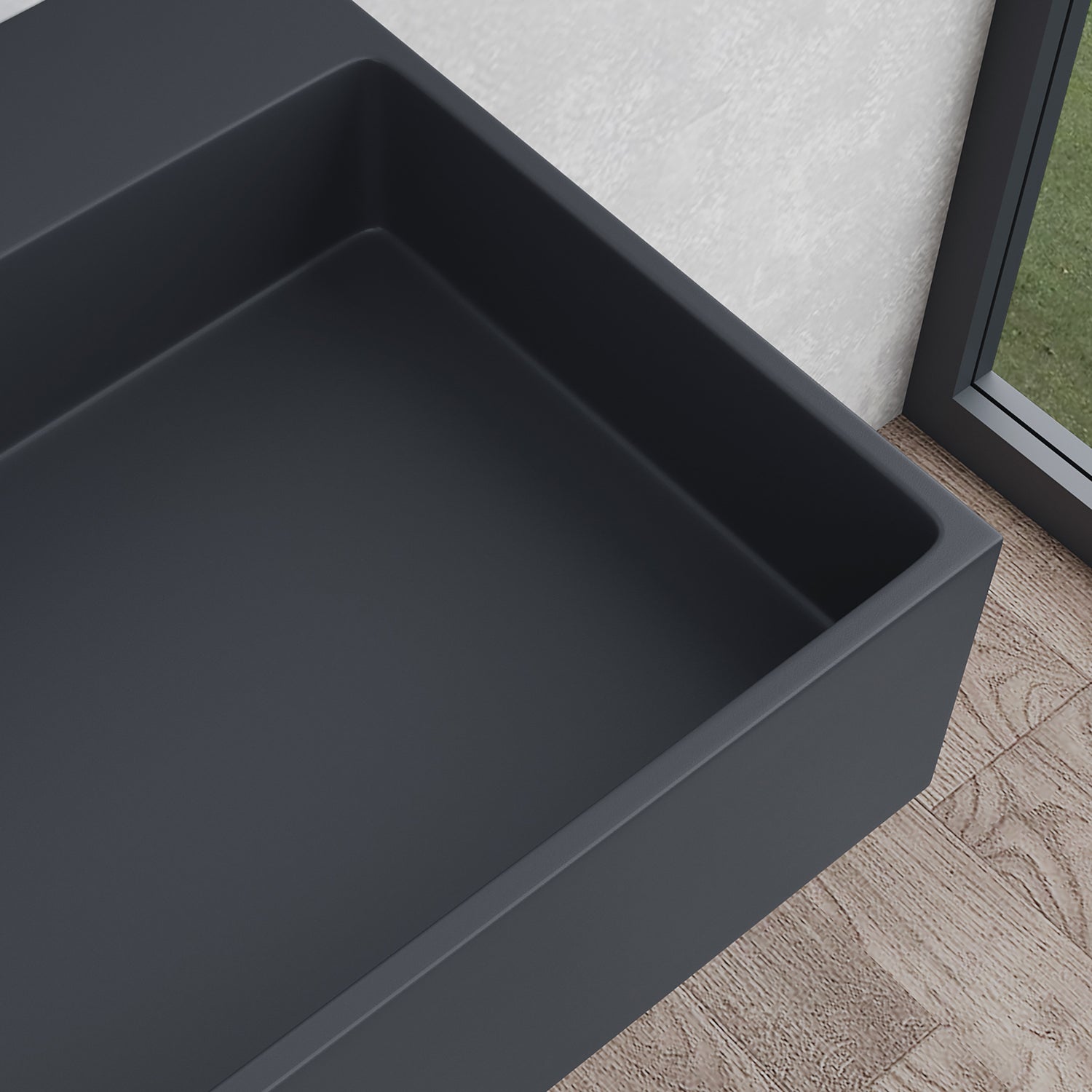 glasvilla Waschbecken Aufsatzwaschbecken Hängewaschbecken aus Mineralguss mit Armaturloch Col6028 - Matt Antrazit / 100cm / 1-Armaturloch ist auf Lager und wird versandt, sobald es wieder verfügbar ist