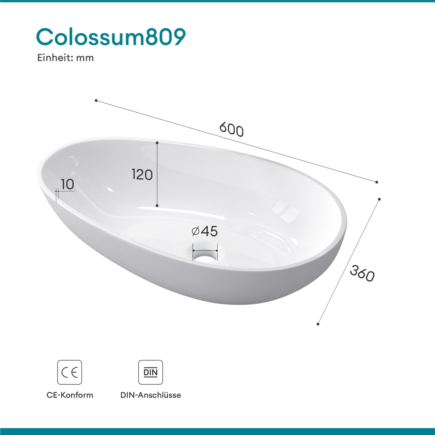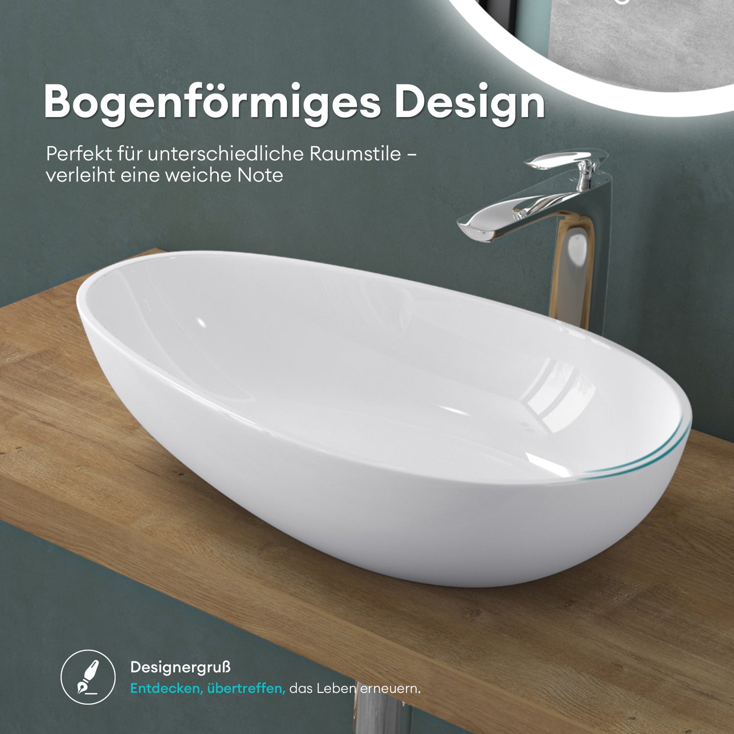 glasvilla Waschbecken oval Aufsatzwaschbecken ohne Hahnloch und Überlauf Col809 - Glänzend Weiß ist auf Lager und wird versandt, sobald es wieder verfügbar ist