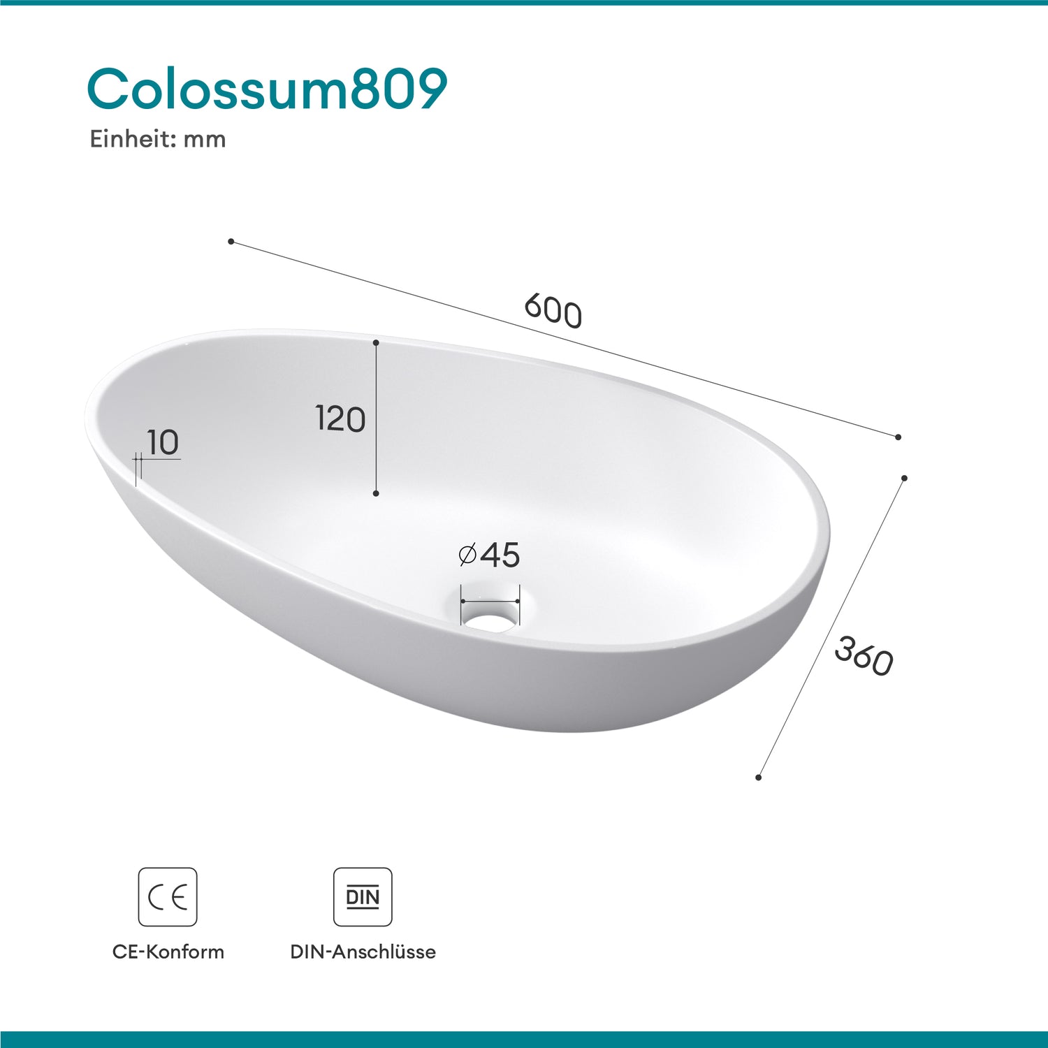 glasvilla Waschbecken oval Aufsatzwaschbecken ohne Hahnloch und Überlauf Col809
