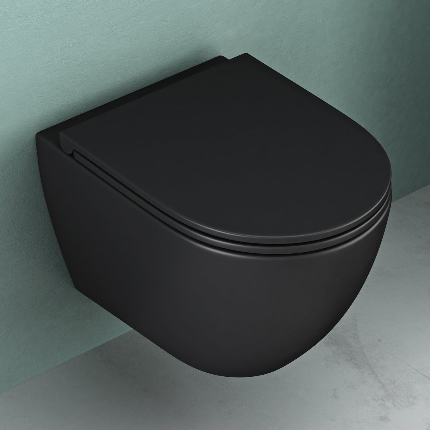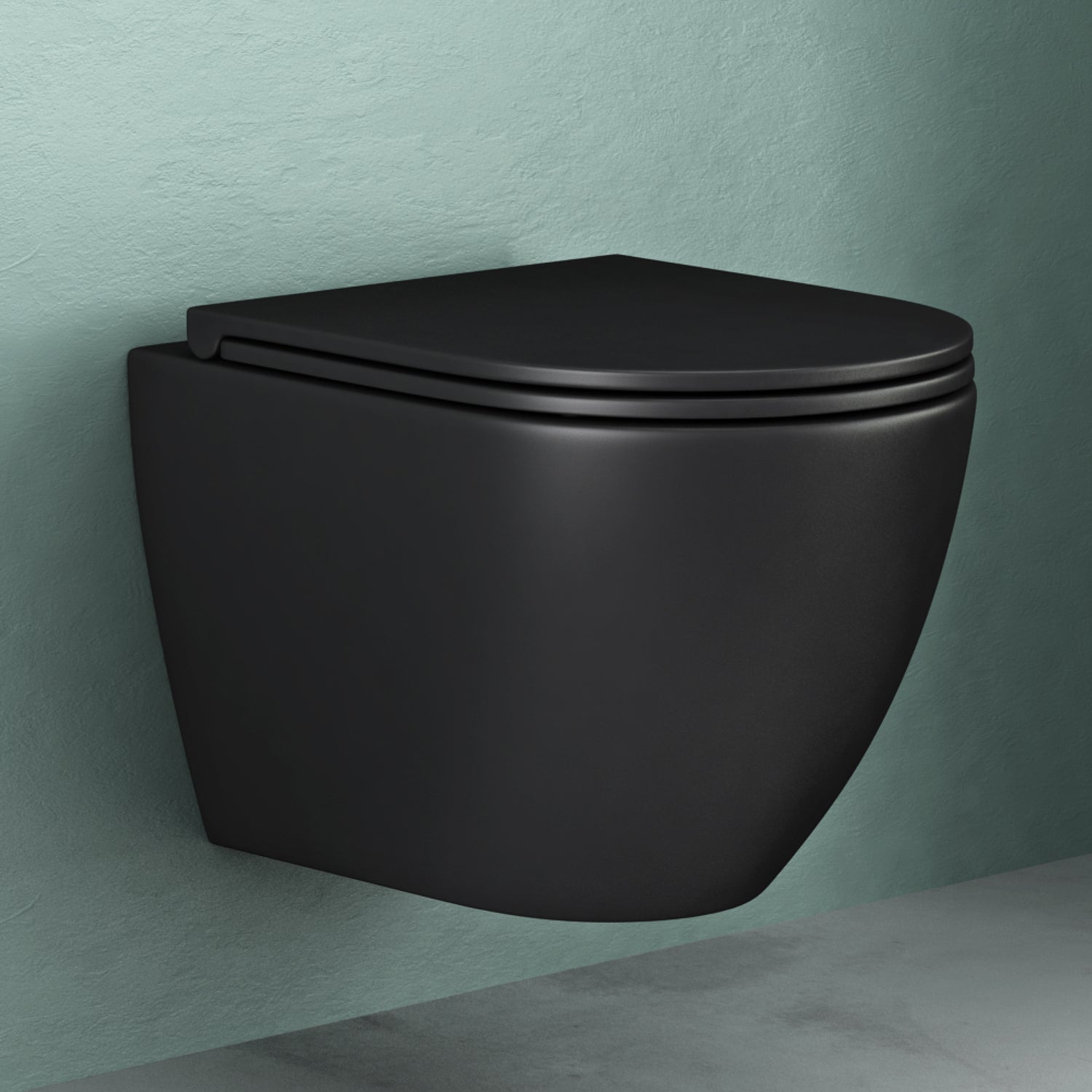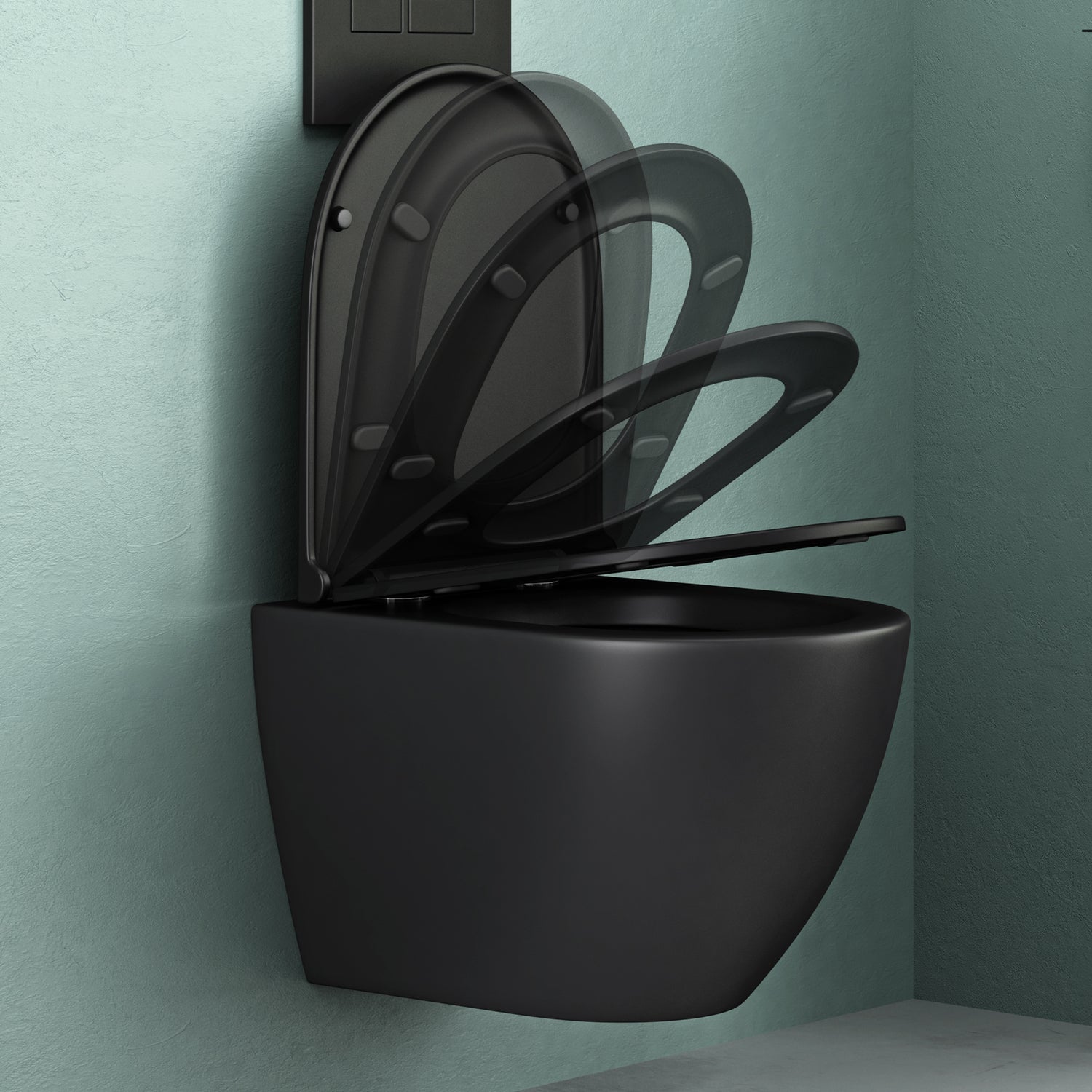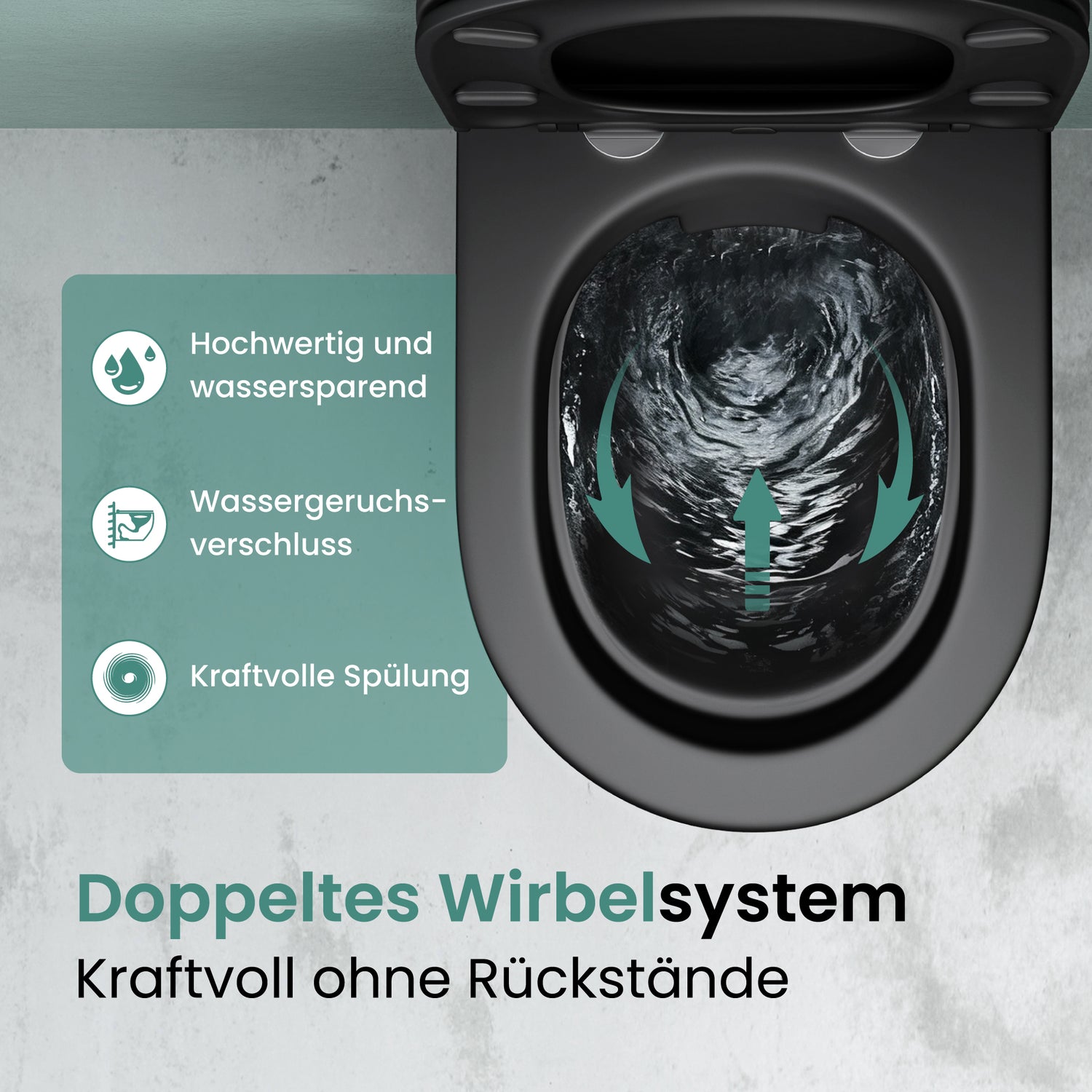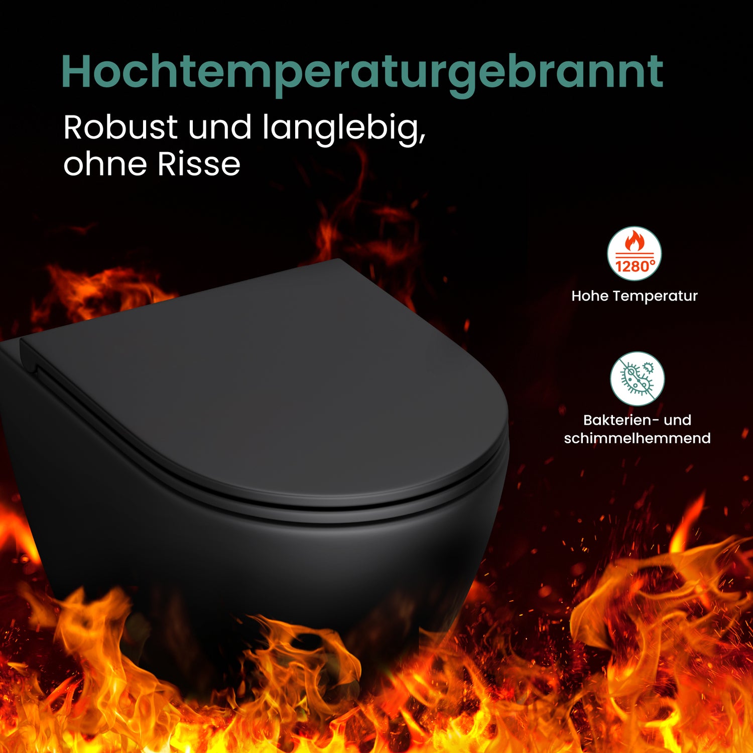 glasvilla Wand WC spülrandlos Schwarz Hänge WC spülrandlos Toilette WC mit Sitz Softclose