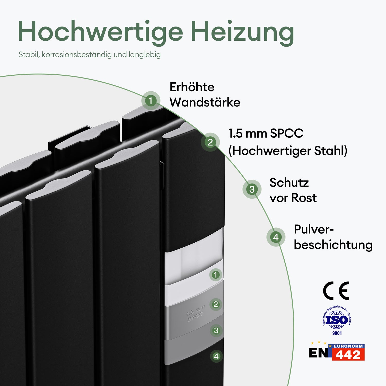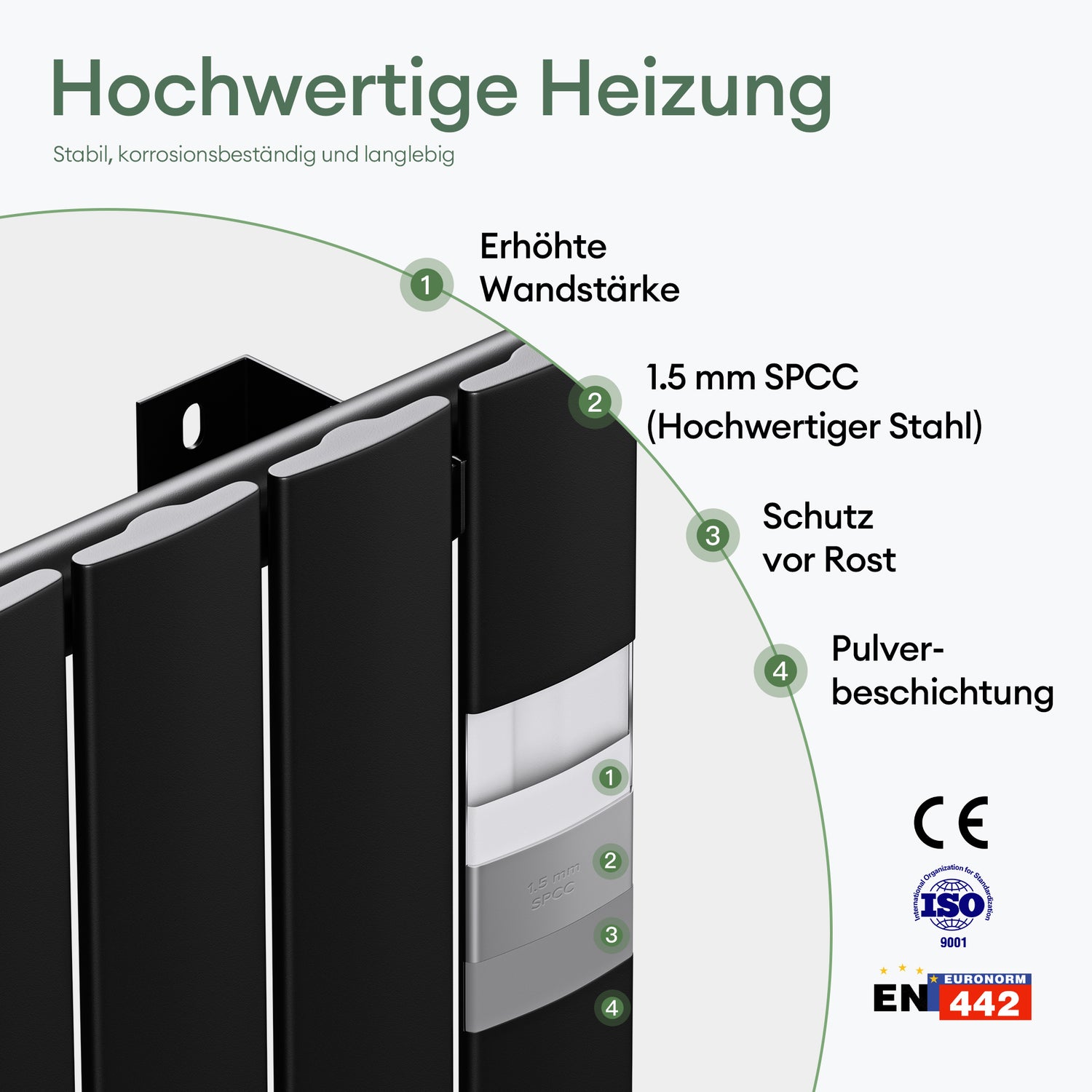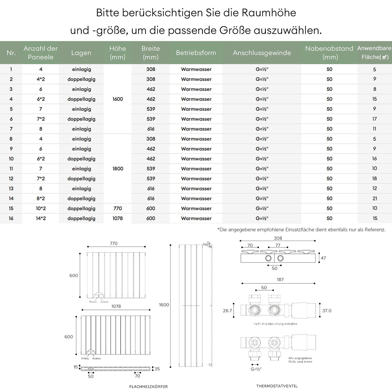 glasvilla Badheizkörper flach Mittelanschluss und Seitenanschluss Paneelheizkörper Badheizung Einlagig aus Stahl FV - Weiß / Einlagig / 180x46cm ist auf Lager und wird versandt, sobald es wieder verfügbar ist