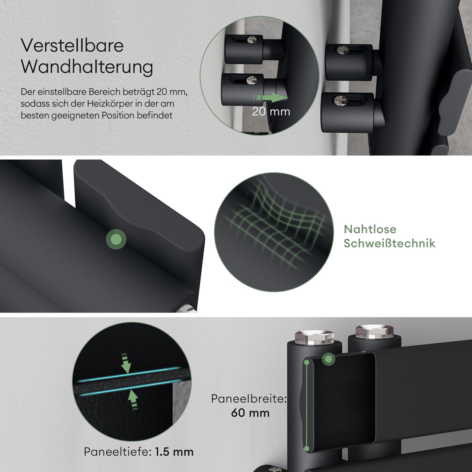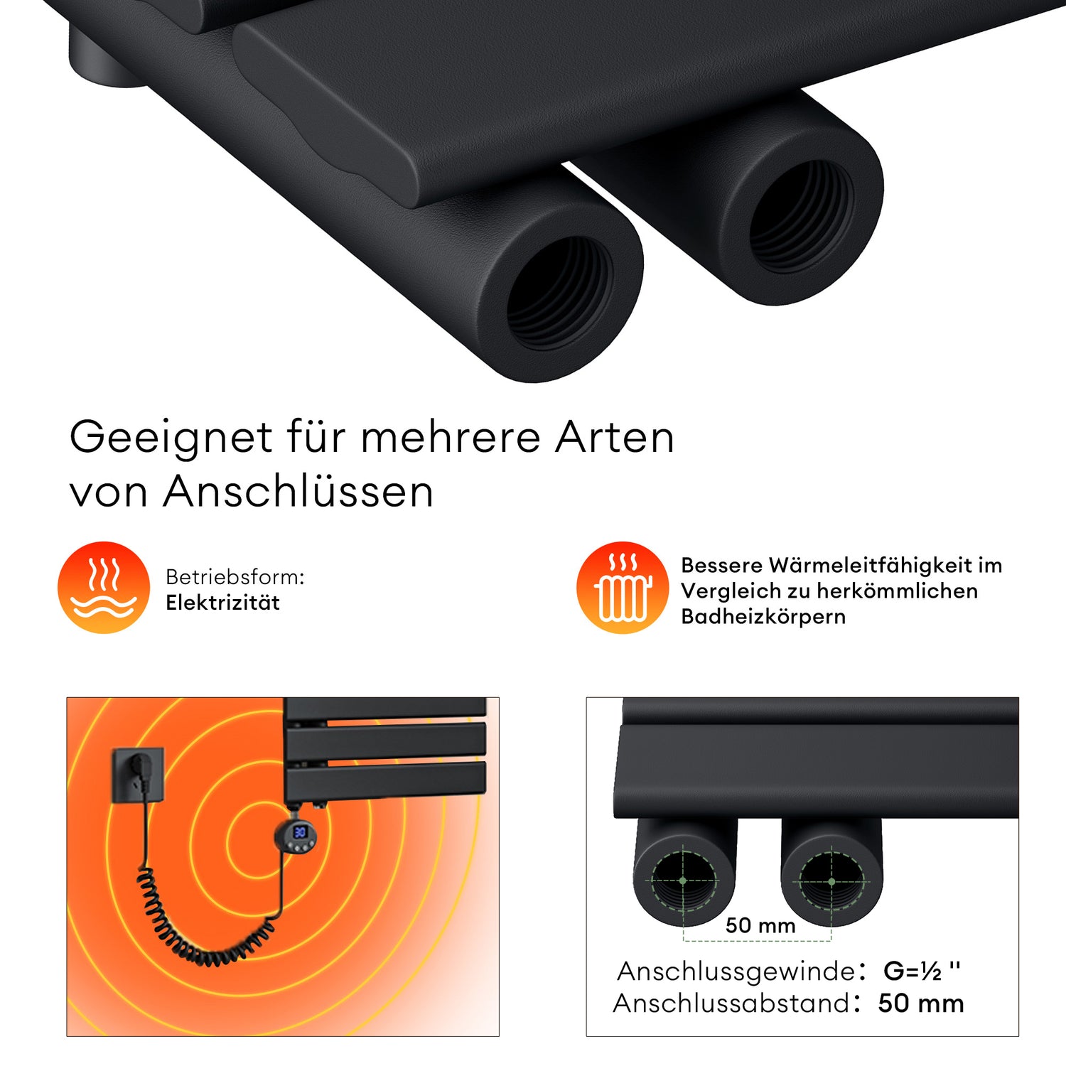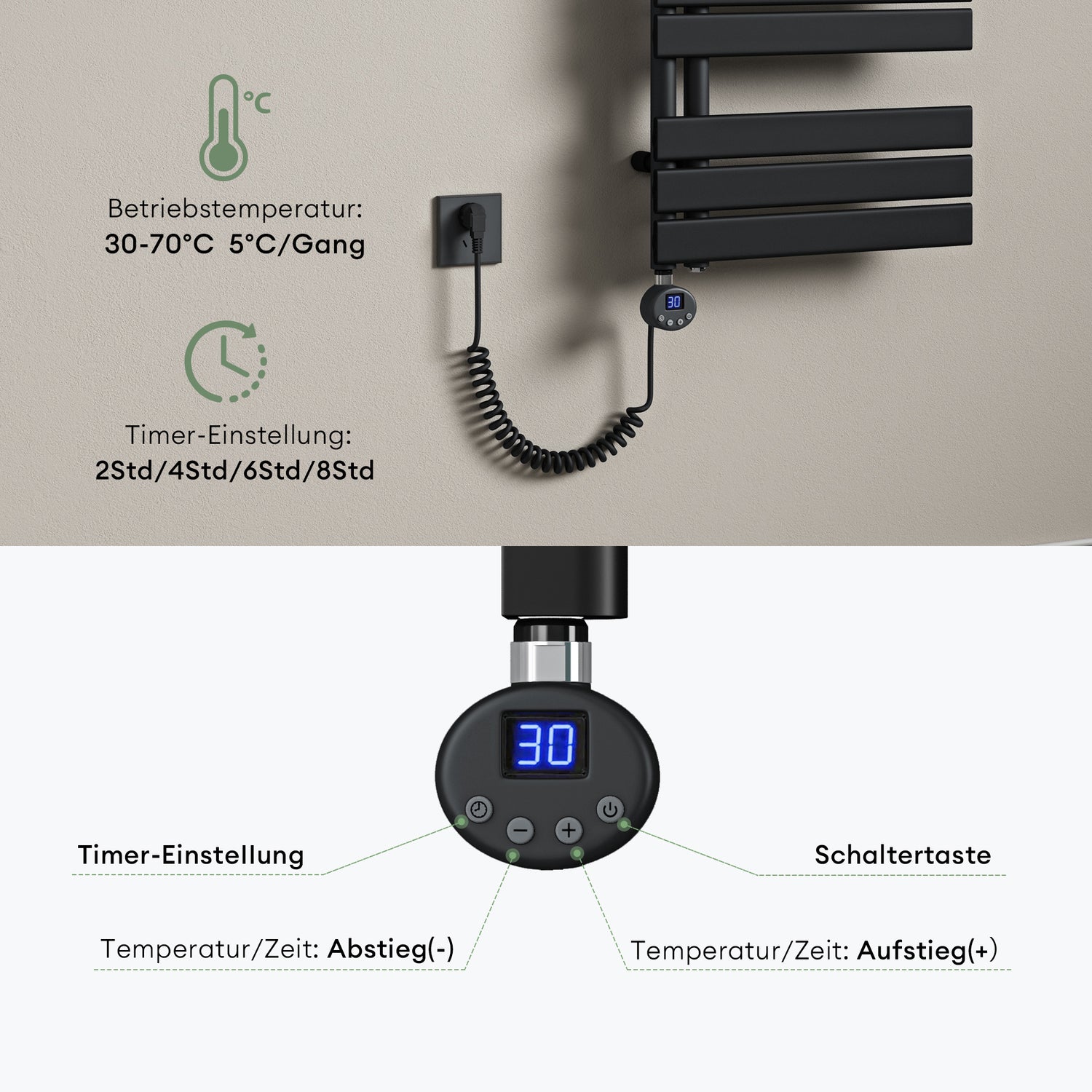 glasvilla Badheizkörper Elektrisch Seitenanschluss Handtuchheizkörper Handtuchhalter Handtuchwärmer Badheizung FN mit Heizstab 02