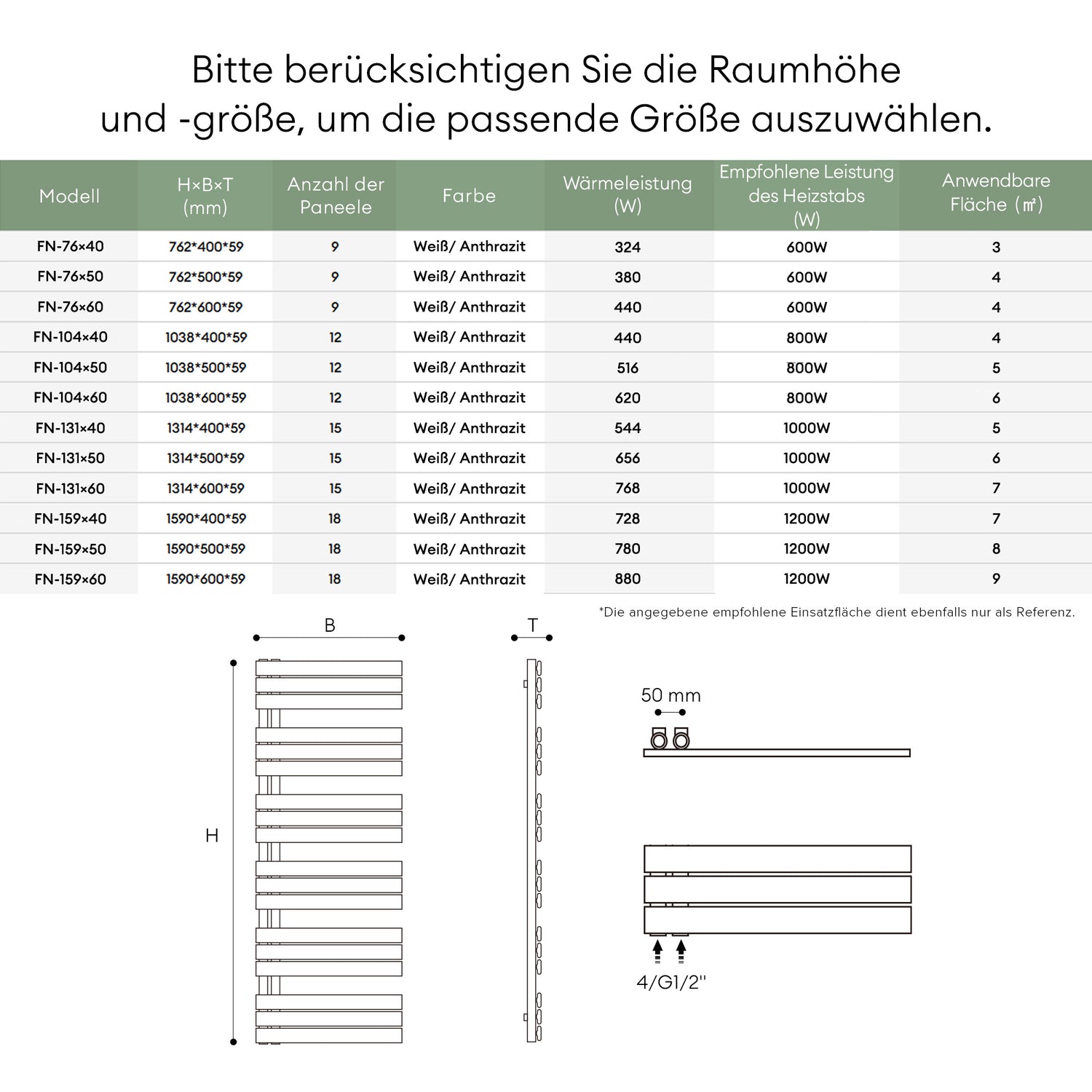 glasvilla Badheizkörper Elektrisch Seitenanschluss Handtuchheizkörper Handtuchhalter Handtuchwärmer Badheizung FN mit Heizstab 02 - Anthrazit / 76x40cm / 600w ist auf Lager und wird versandt, sobald es wieder verfügbar ist