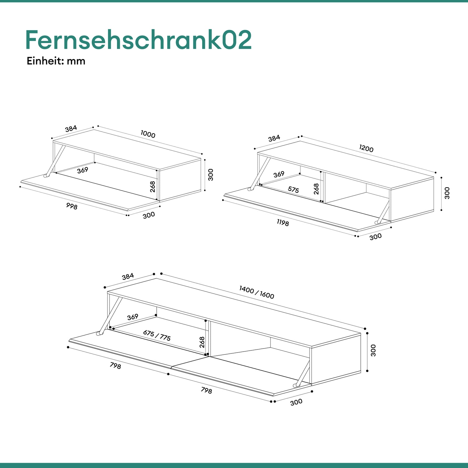 glasvilla Fernsehtisch Fernsehschrank TV Schrank Verdeckter Griff mit Soft-Close Lowboard Hängeschrank für Wohnzimmer Fernsehschrank02