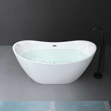 glasvilla freistehende Acryl-Badewanne Oval Standbadewanne Weiß inkl. Push-Open Ablaufgarnitur
