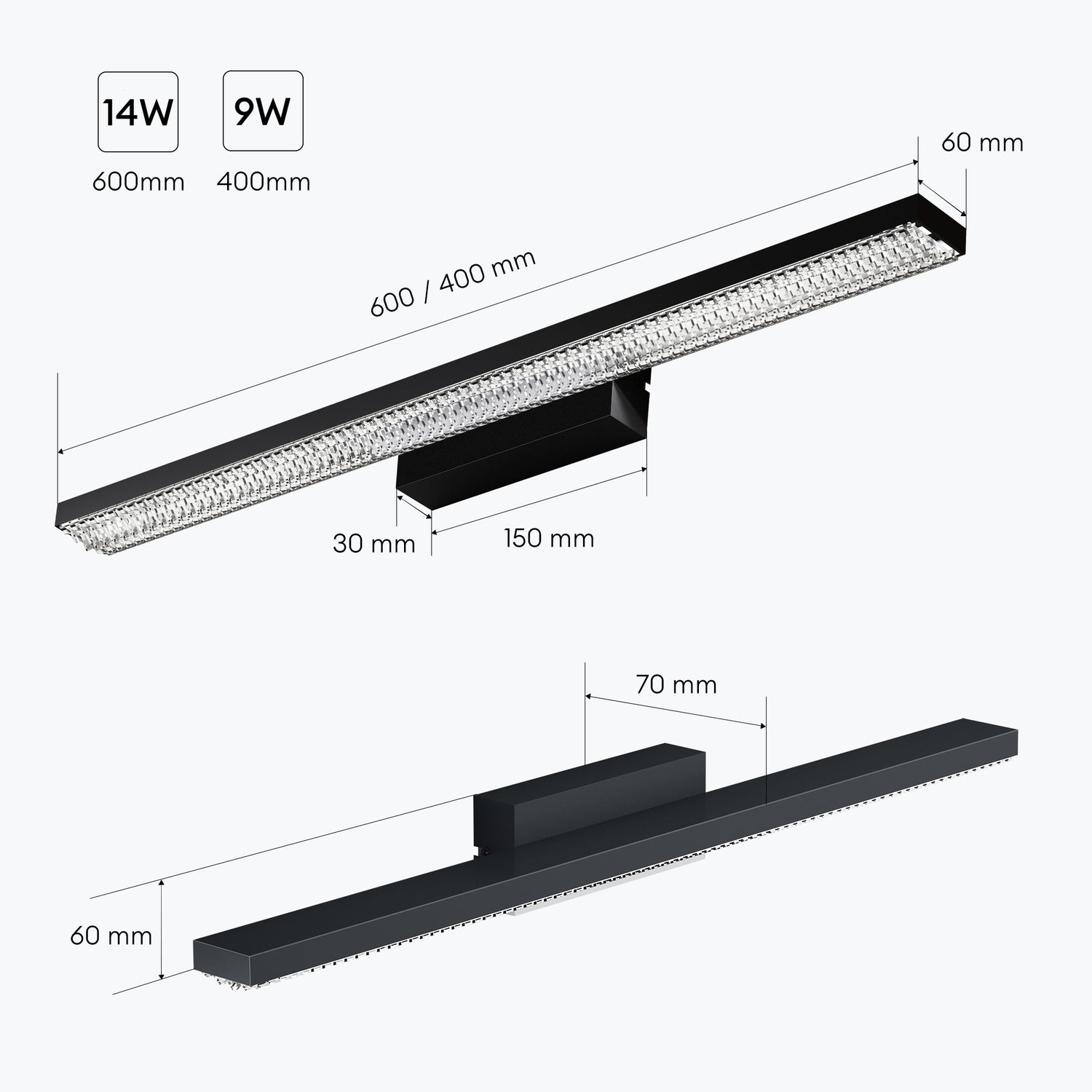 glasvilla Spiegelleuchte LED Badlampe | Spiegellampe, 6000K Badezimmer Lampe | LED Wandleuchte 14W Leuchtschein - Sandschwarz / 40cm ist auf Lager und wird versandt, sobald es wieder verfügbar ist