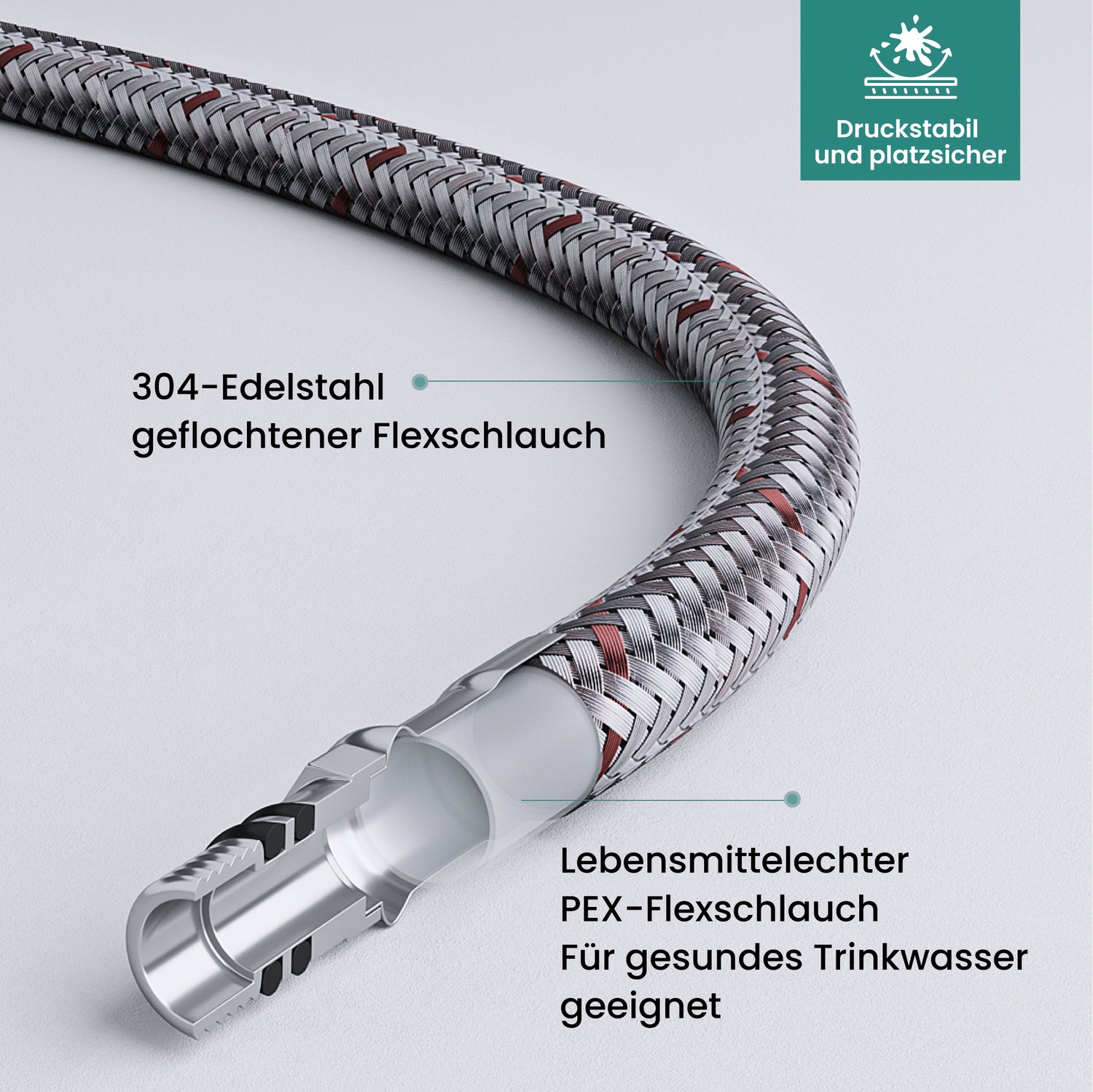 Einfache Installation: Mit zwei Flexschläuchen, allem Zubehör und einer Installationsanleitung für eine schnelle und unkomplizierte Montage.