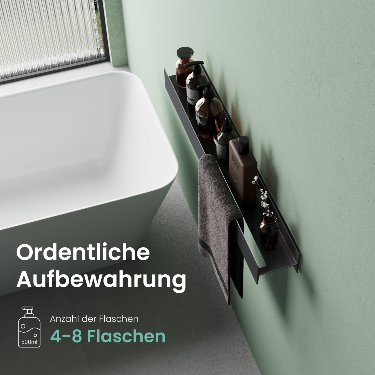 - Ordentliche Aufbewahrung: Die Duschablage bietet ausreichend Platz für 4–8 Wasch- und Pflegeprodukte (je ca. 500 ml); dank der offenen Konstruktion kann sie gleichzeitig als Handtuchhalter genutzt werden.