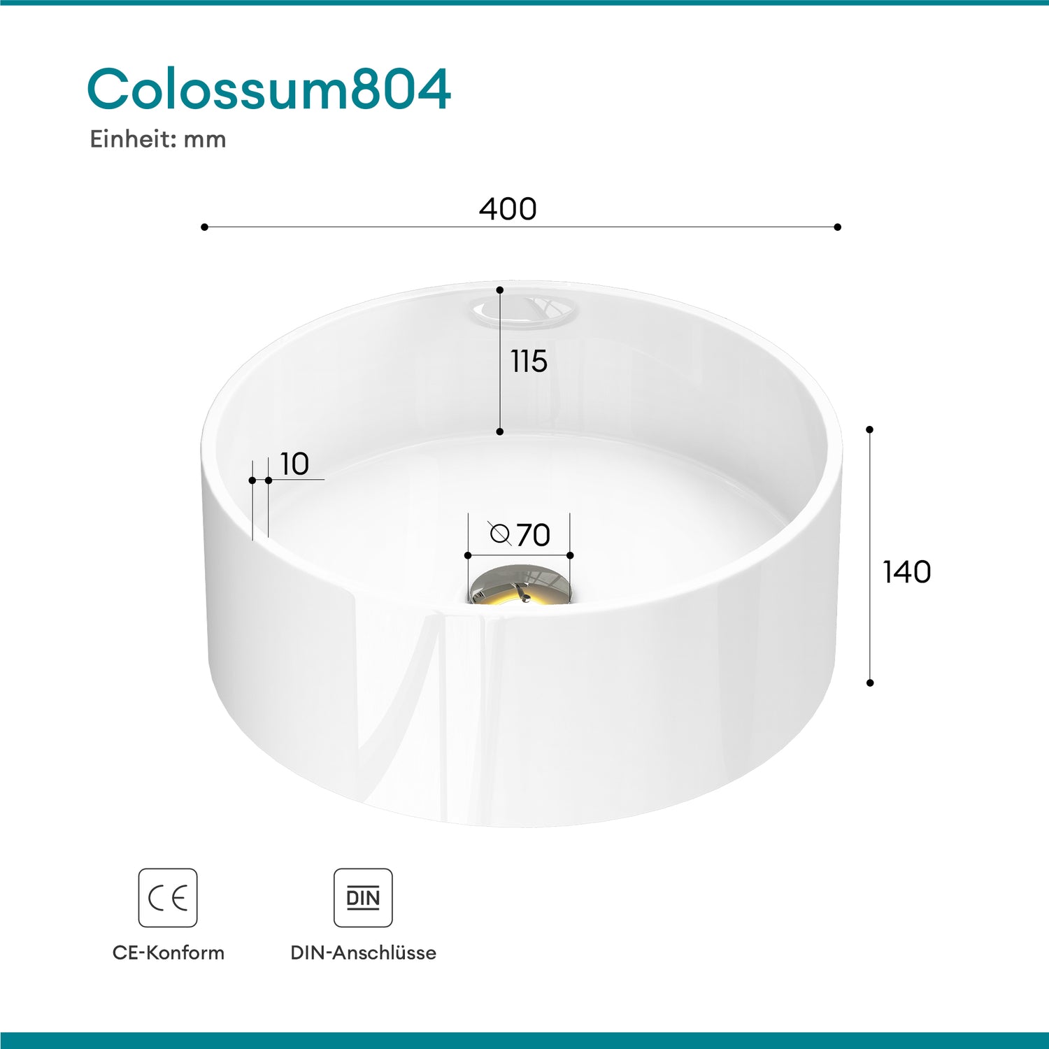 glasvilla 40x40x15cm Waschbecken rund Col804 Aufsatzwaschbecken ohne Hahnloch und Überlauf.. Col804 Moderne Optik- höchste Funktionalität