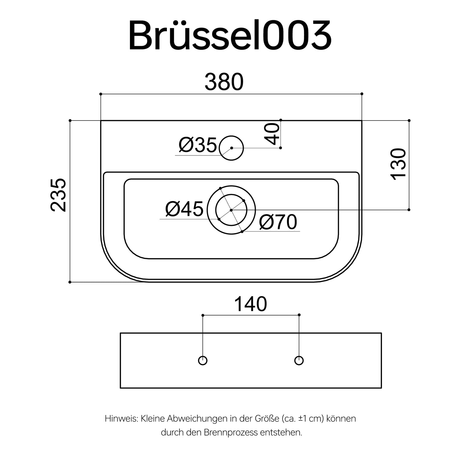 glasvilla Aufsatzwaschbecken Hängewaschbecken BTH: 38x23,5x8cm Waschschale Waschbecken aus Keramik Brüssel003