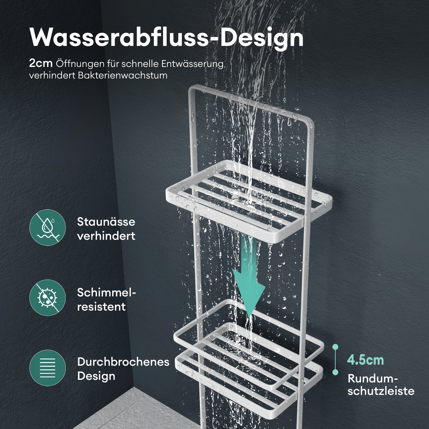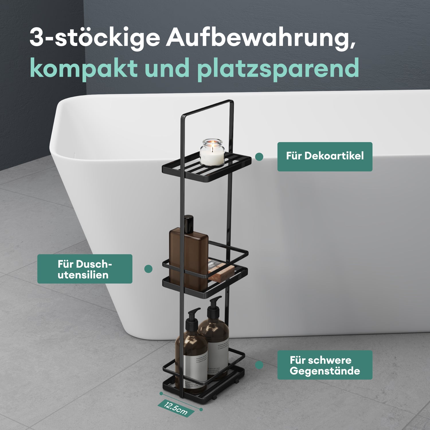 - Mehrlagig mit Ablagen: Mit 3 Ebenen bietet dieses Badezimmerregal reichlich Stauraum für Kosmetik, Dekoartikel oder Duschutensilien – für ein perfekt organisiertes Bad