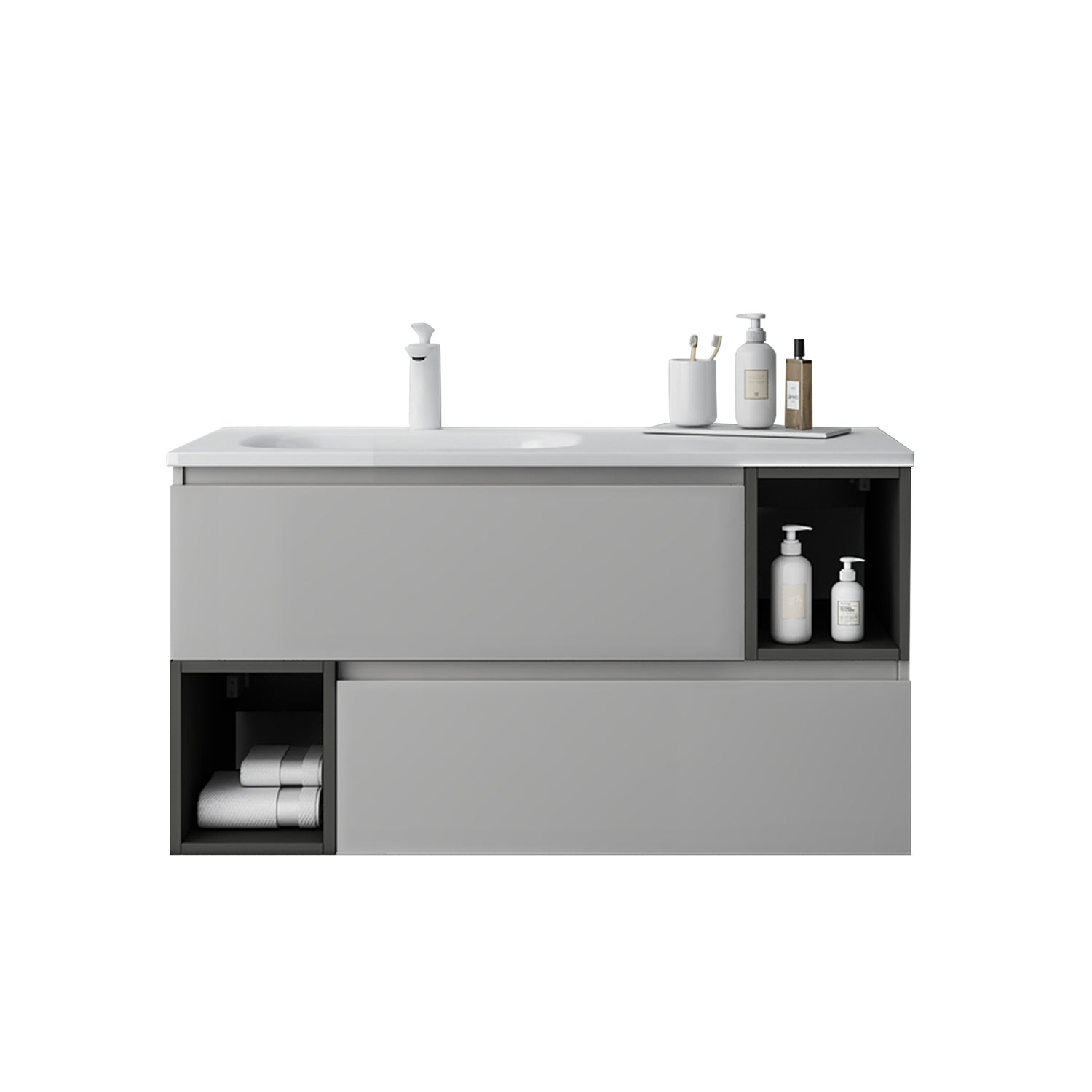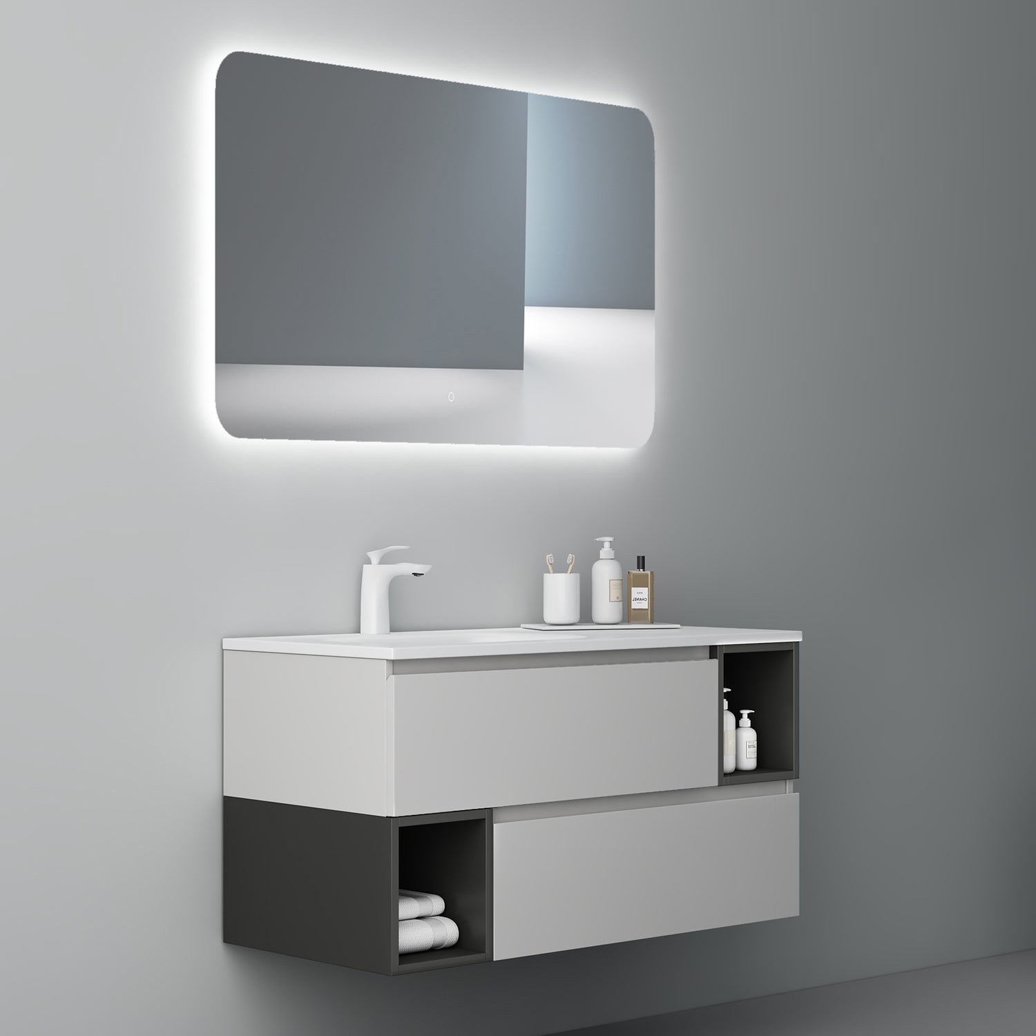 glasvilla Badmöbel Badezimmerschrank mit Spiegel Waschbeckenunterschrank Mineralguss Gemini - Grau / 100cm / mit LED-Spiegel ist auf Lager und wird versandt, sobald es wieder verfügbar ist