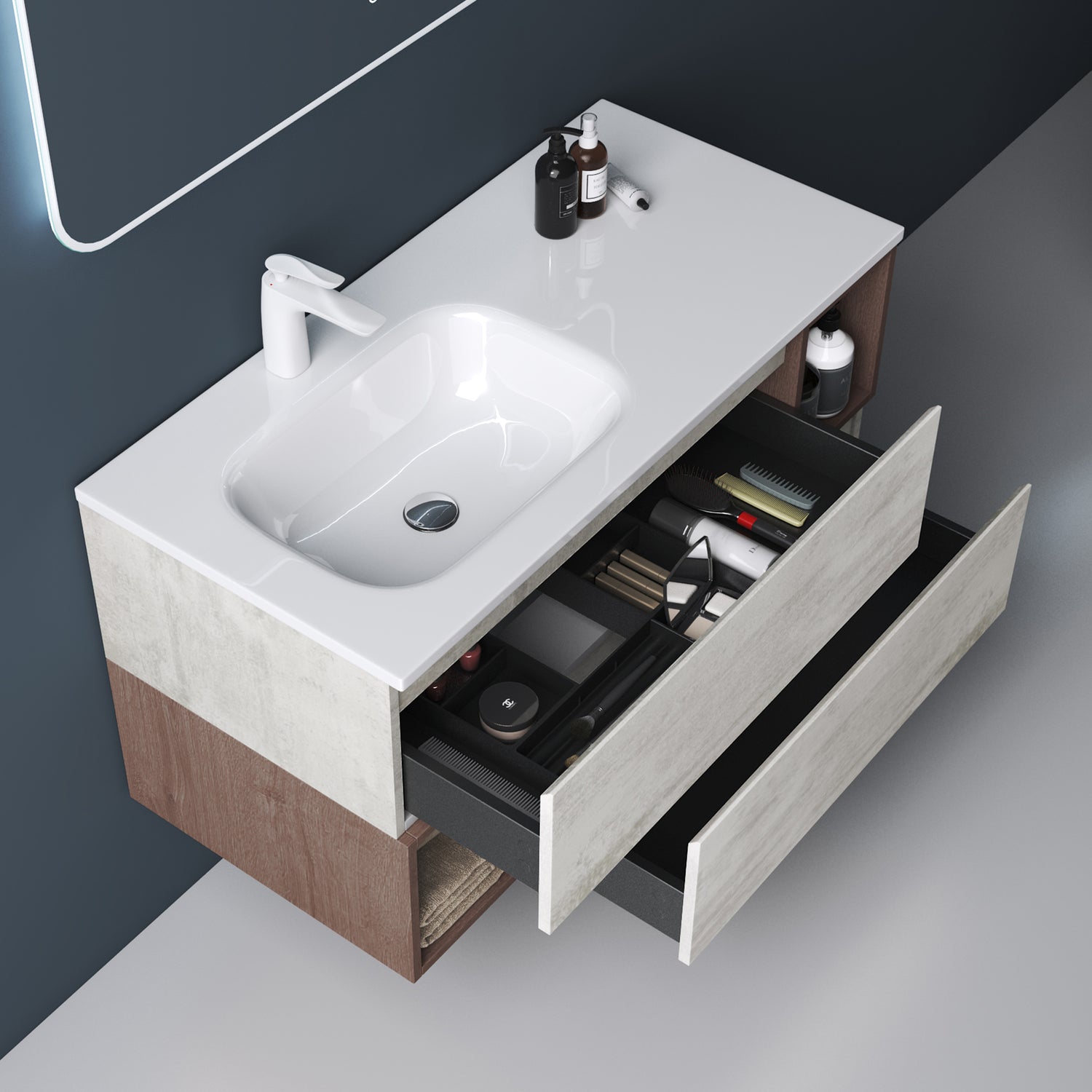 - Badmöbelset Gemini mit Waschbecken und Unterschrank | Waschbecken BTH: 100x48x12cm