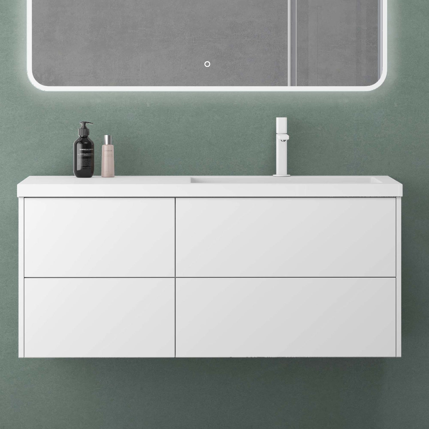 glasvilla Badmöbelset 120cm Waschbeckenunterschrank Waschtisch mit Unterschrank Soft-Close 4 Schubladen Badezimmermöbel Moment - Matt Weiß / 120cm / mit LED-Spiegel ist auf Lager und wird versandt, sobald es wieder verfügbar ist