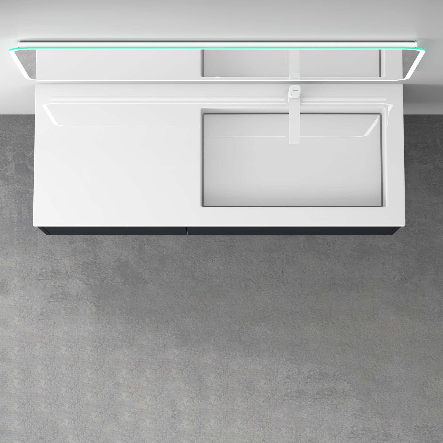 - 2-teiliger Waschplatz bestehend aus Unterschrank: TBH: 46x120x54cm und Waschbecken: TBH: 46x120x10cm