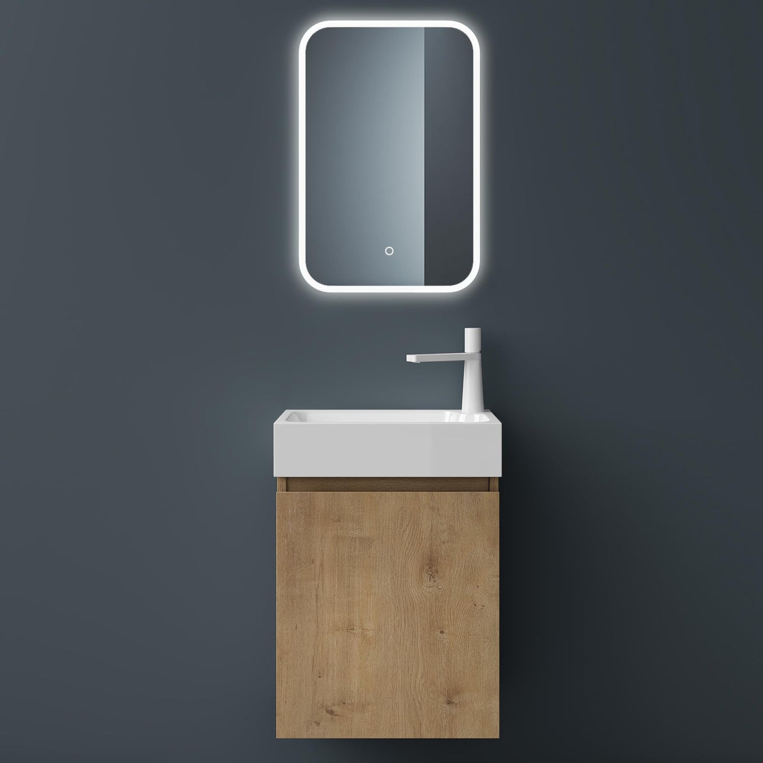 • Badmöbelset: Spiegel, Waschbecken und Waschbeckenunterschrank