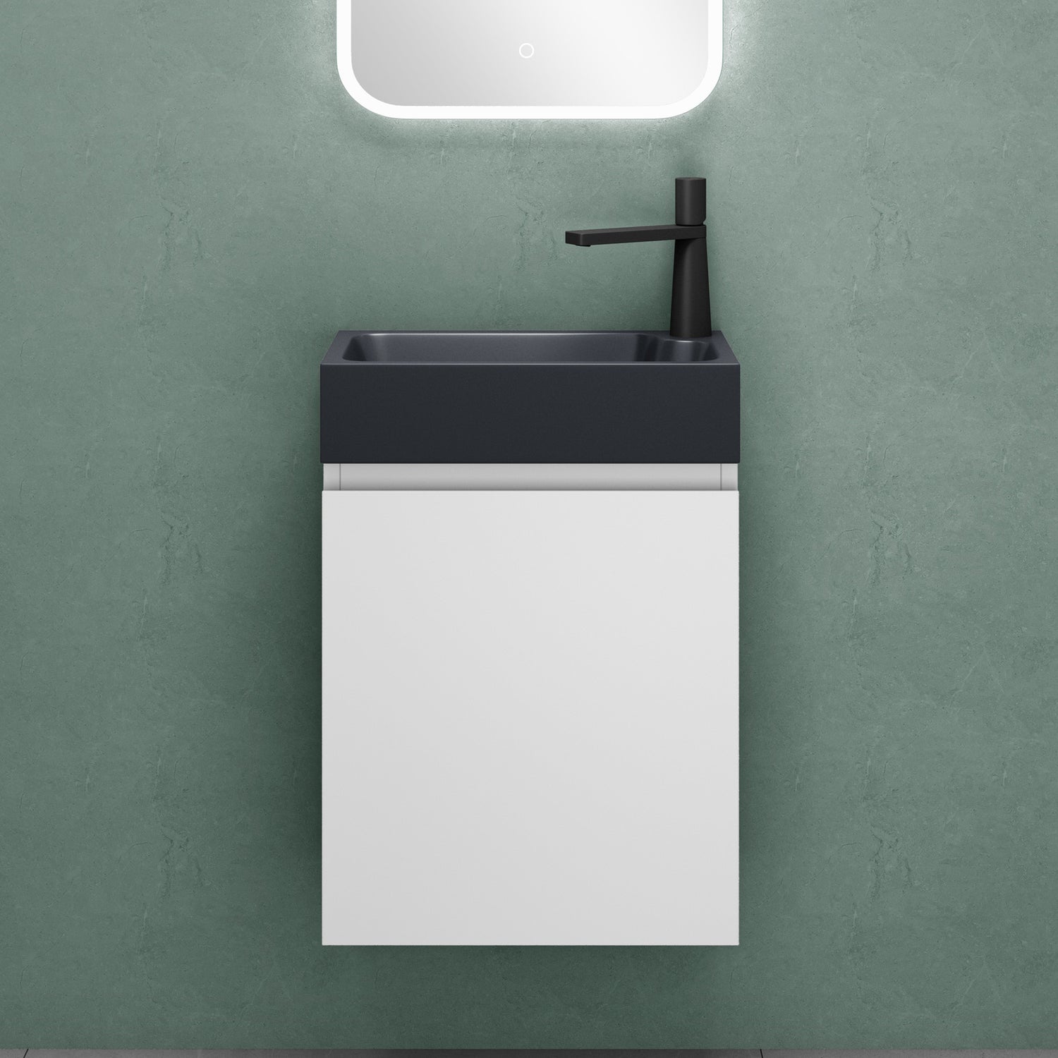- Mineralguss-Waschbecken: in einem Stück gegossen und anschließend per Hand poliert – kratzfest & pflegeleicht