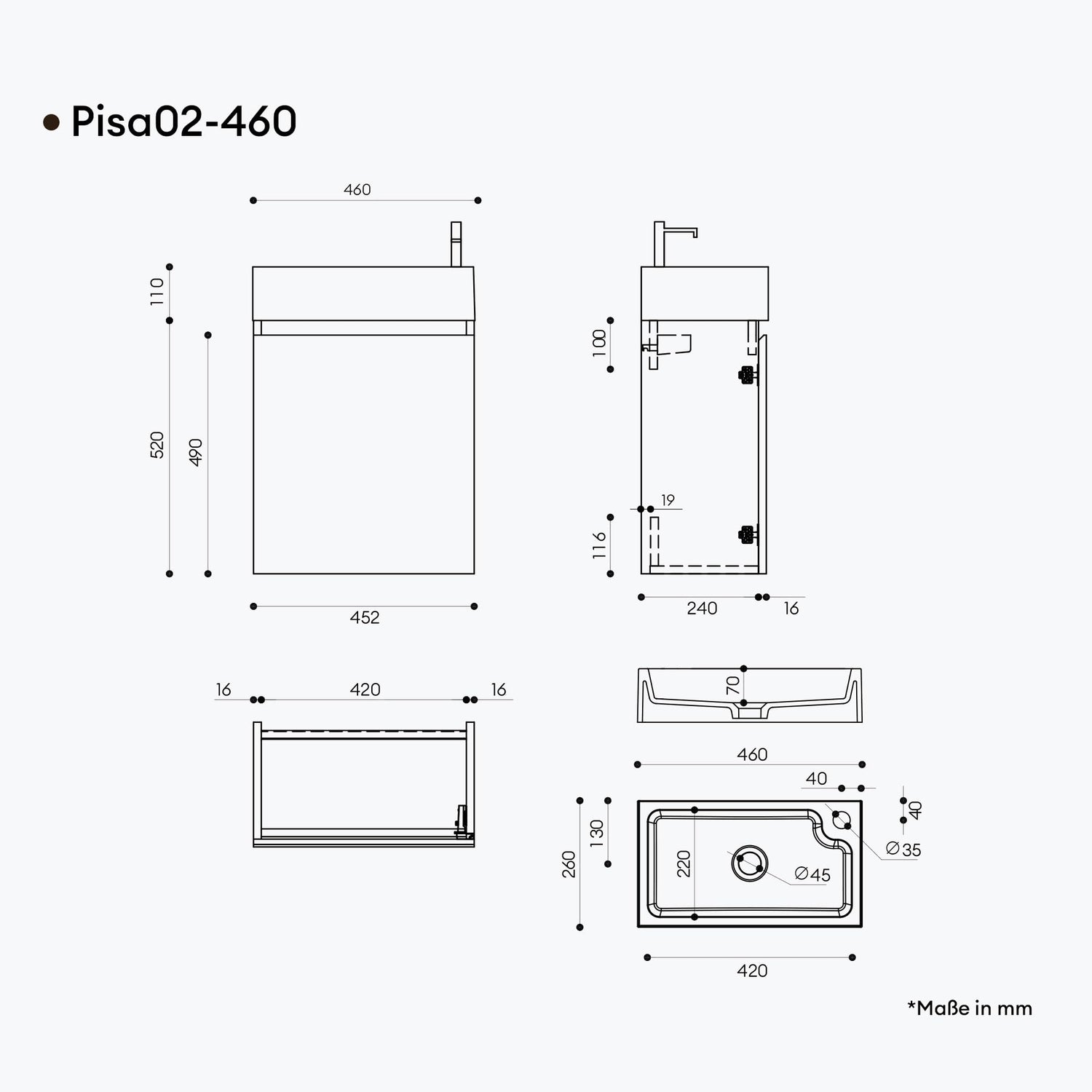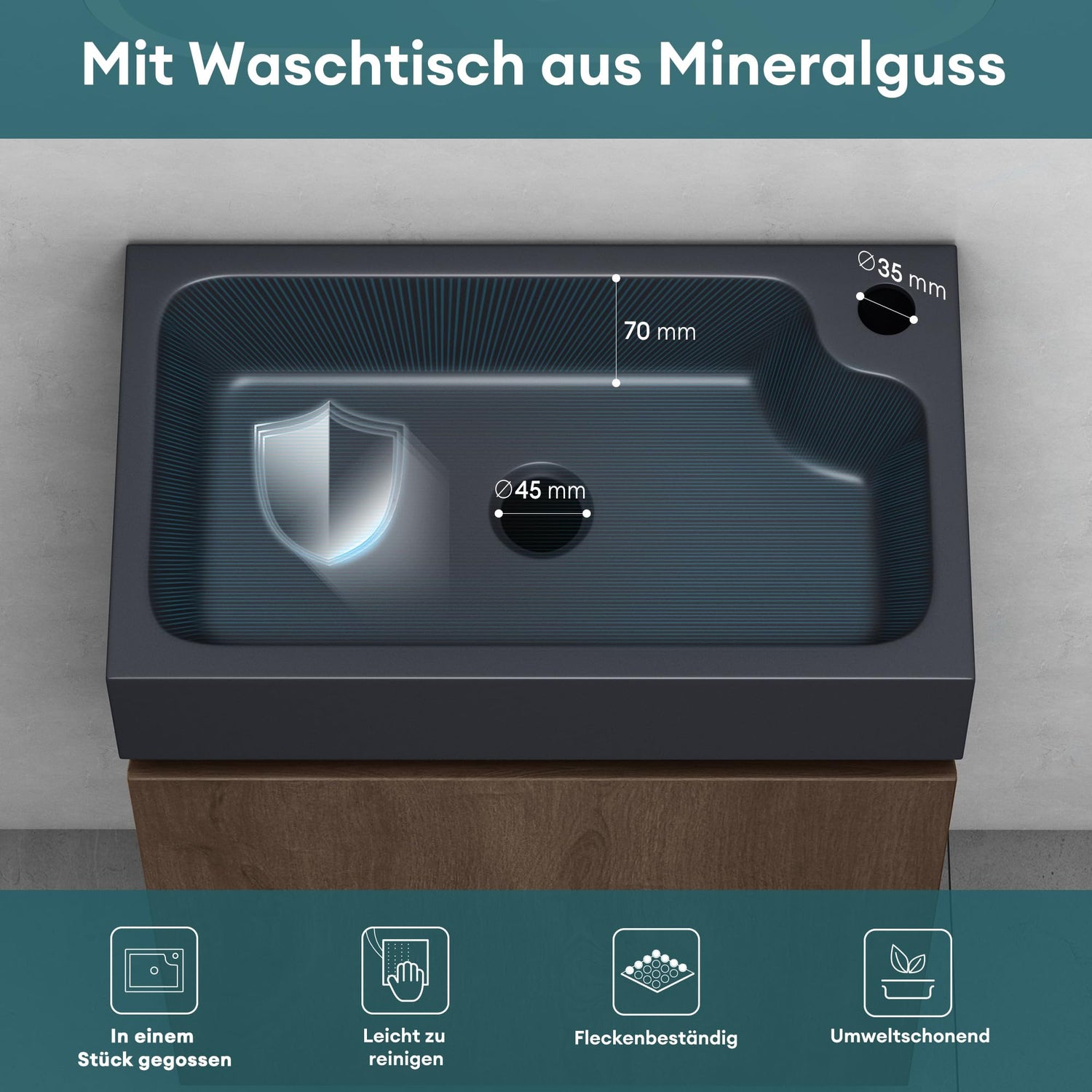 glasvilla Badmöbelset Badezimmermöbel bestehend aus Waschbecken in Anthrazit Matt und Waschbeckenunterschrank BTH: 46x26x63cm Pisa02