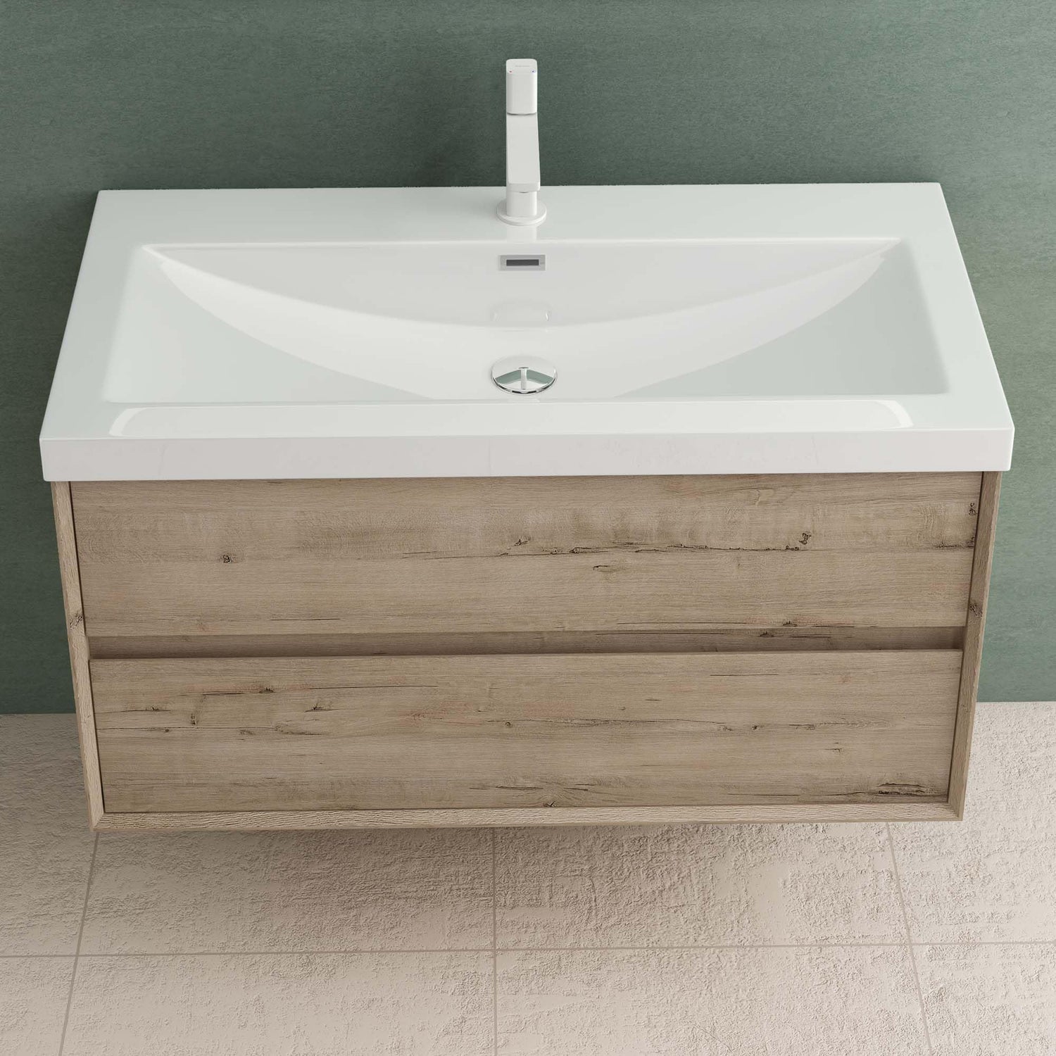 glasvilla Badmöbelset Badezimmermöbel Waschbeckenunterschrank 2 Schubladen mit Soft-Close inkl. Waschbecken in Weiß aus Mineralguss Rimo