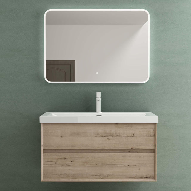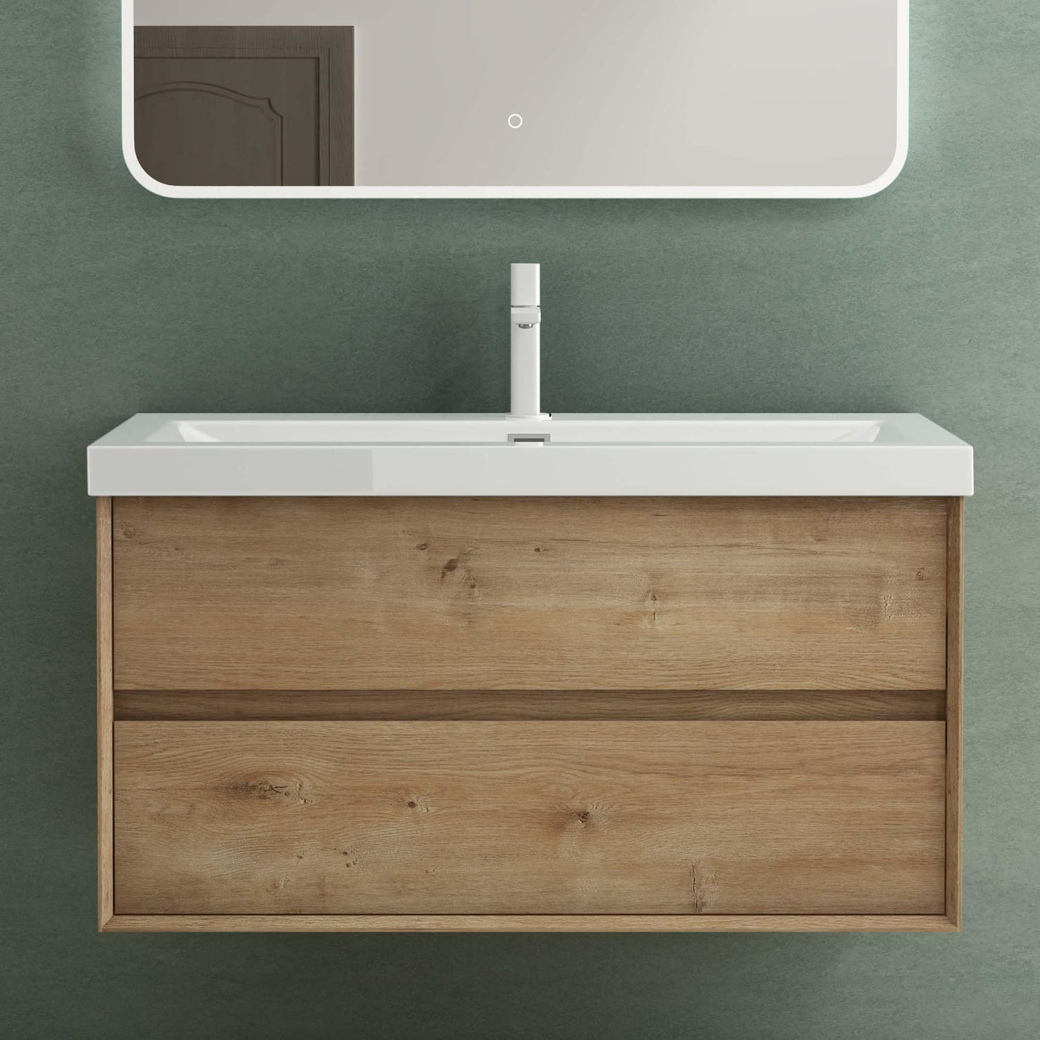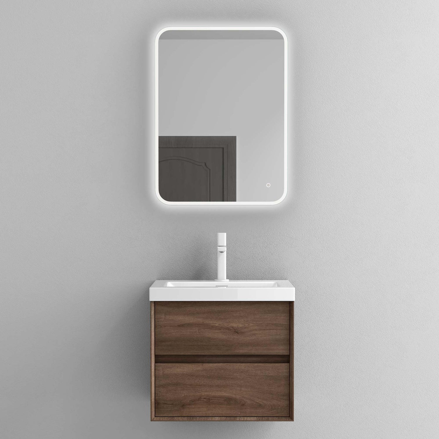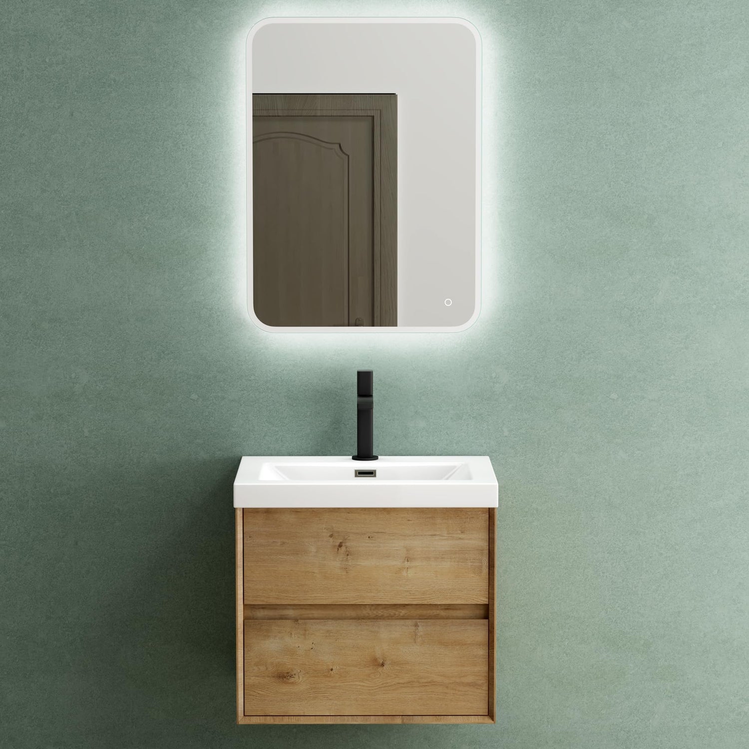 glasvilla Badmöbelset Badezimmermöbel Waschbeckenunterschrank 2 Schubladen mit Soft-Close inkl. Waschbecken in Weiß aus Mineralguss Rimo - Eiche Stirling / 60cm / mit LED-Spiegel ist auf Lager und wird versandt, sobald es wieder verfügbar ist