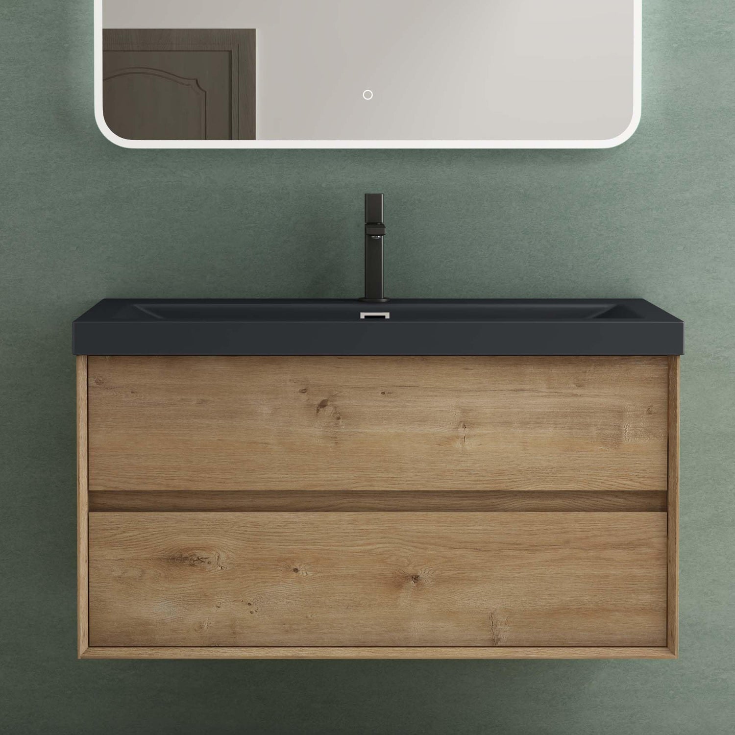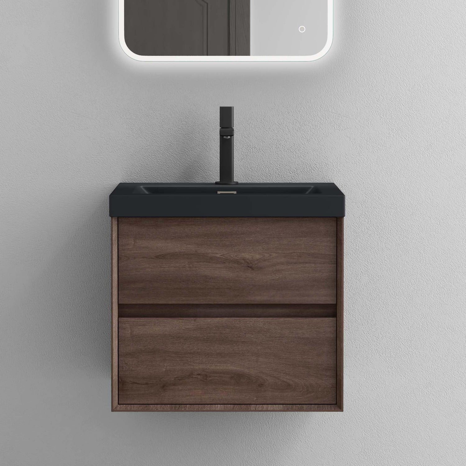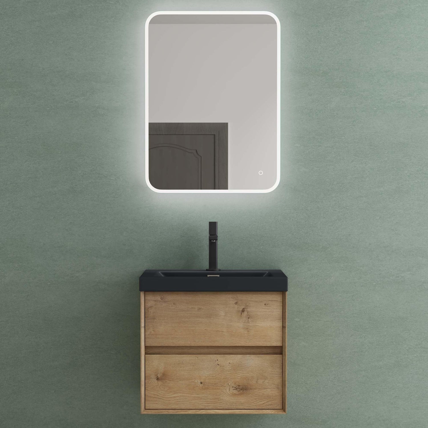 glasvilla Badmöbelset Badezimmermöbel Waschbeckenunterschrank 2 Schubladen mit Soft-Close inkl. Waschbecken in matt Anthrazit aus Mineralguss Rimo - Eiche Stirling / 60cm / mit LED-Spiegel ist auf Lager und wird versandt, sobald es wieder verfügbar ist