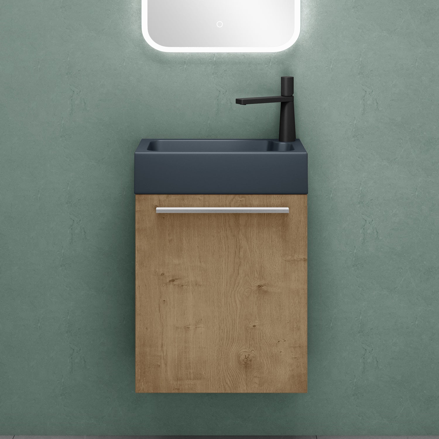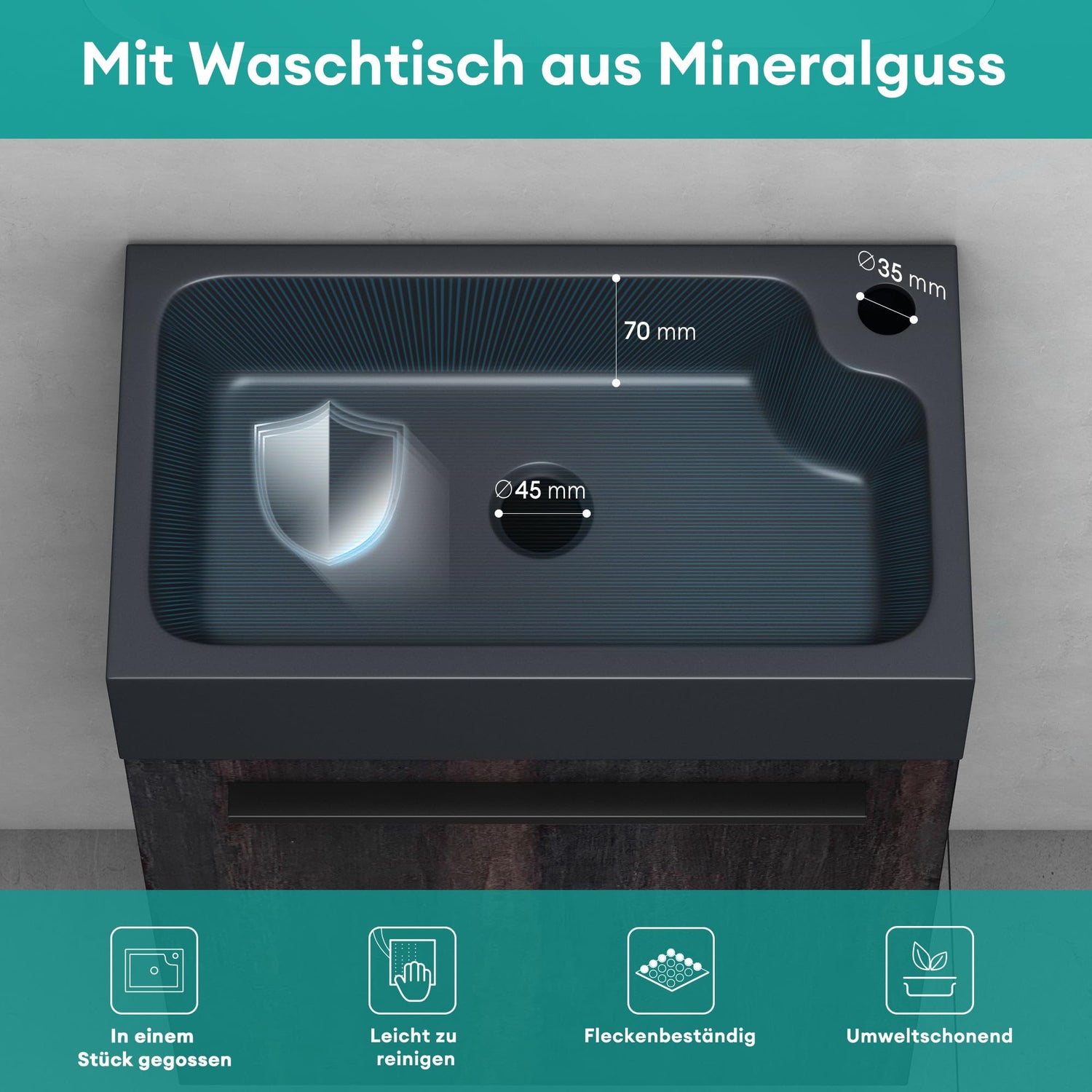 glasvilla Badmöbelset Badezimmermöbel Waschbeckenunterschrank inkl. Waschbecken Anthrazit matt und LED-Badspiegel BxTxH 46x26x63 cm Pisa - Matt Anthrazit / mit LED-Spiegel ist auf Lager und wird versandt, sobald es wieder verfügbar ist