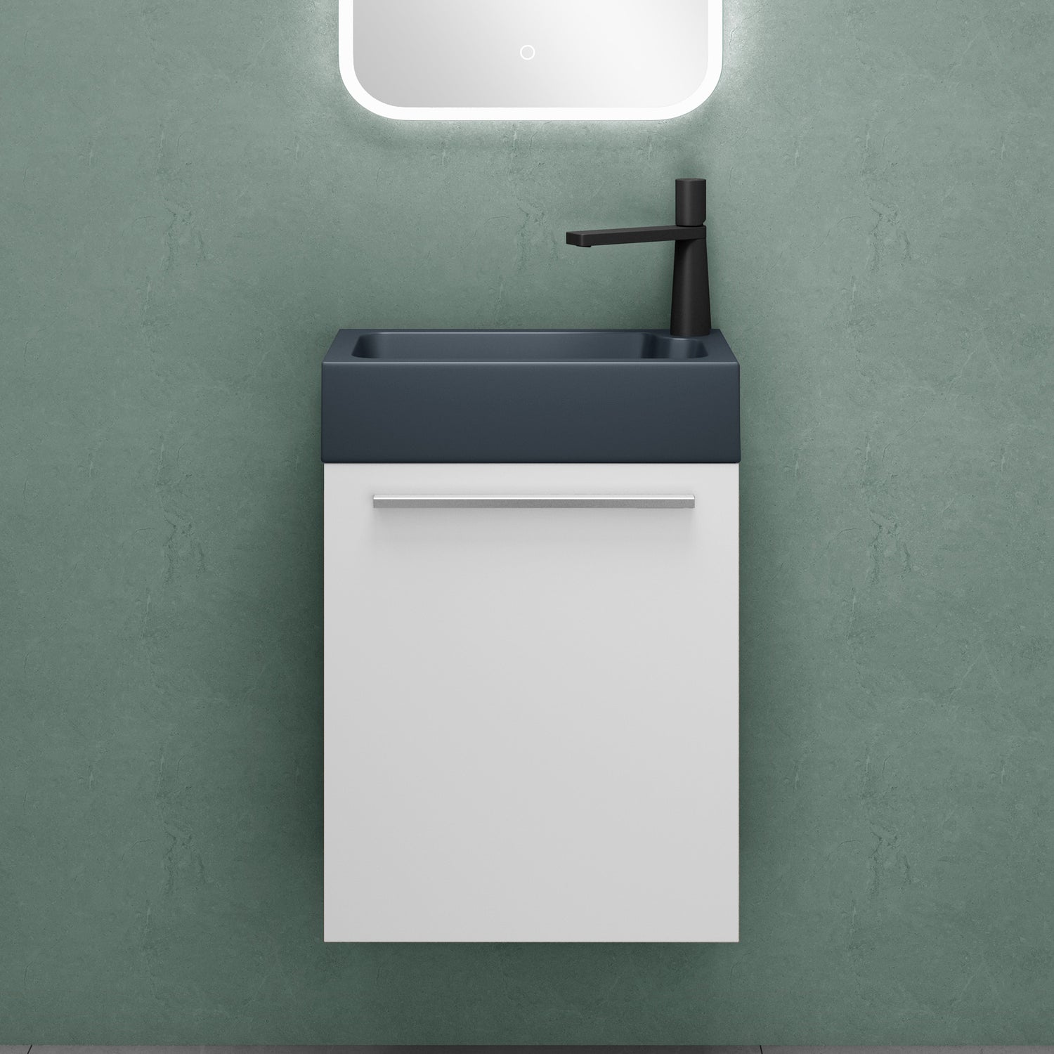 - Mineralguss-Waschbecken: in einem Stück gegossen und anschließend per Hand poliert – kratzfest & pflegeleicht