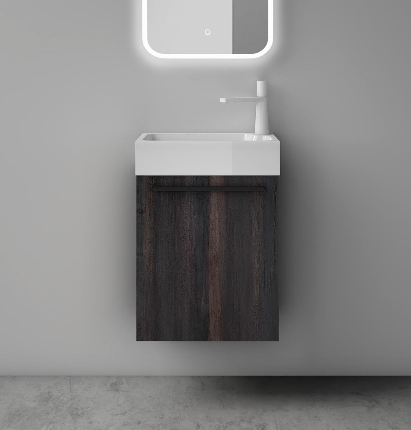 glasvilla Badmöbelset Kleiner Waschbeckenunterschrank 46 cm Unterschrank mit Weiß Waschschbecken aus Mineralguss für Gäste-WC Pisa - Matt Weiß / ohne LED- Spiegl ist auf Lager und wird versandt, sobald es wieder verfügbar ist