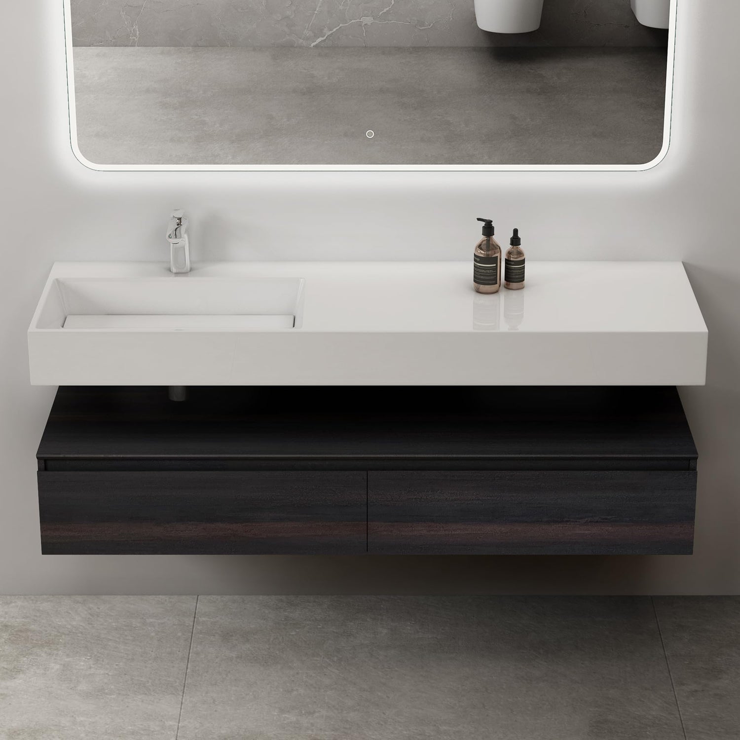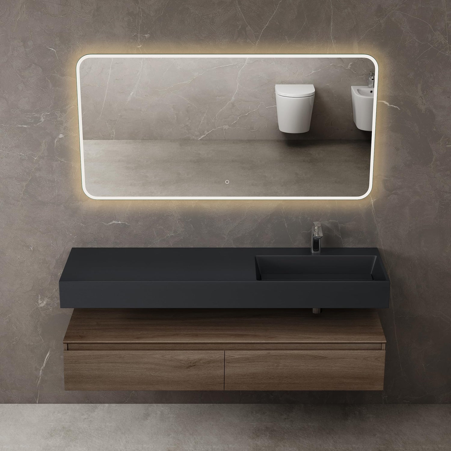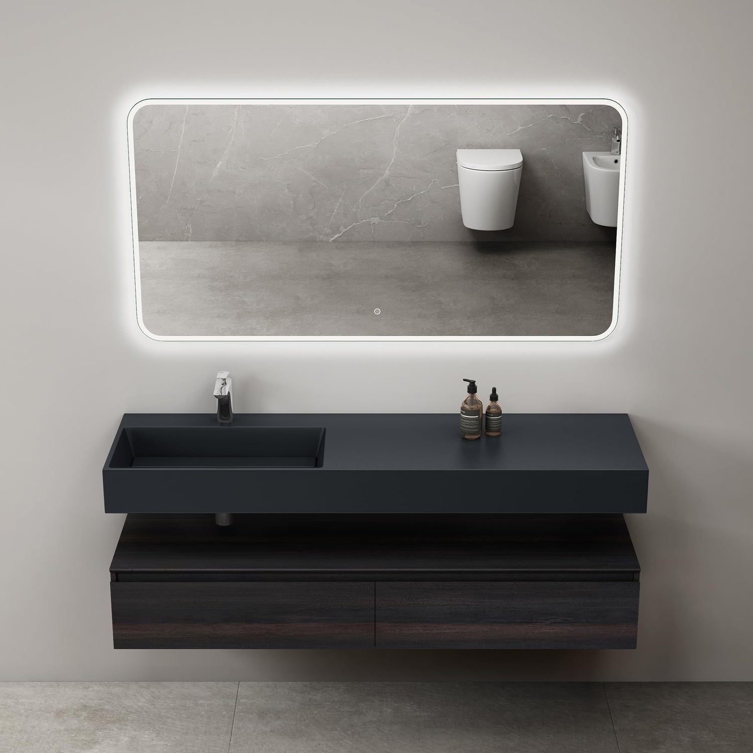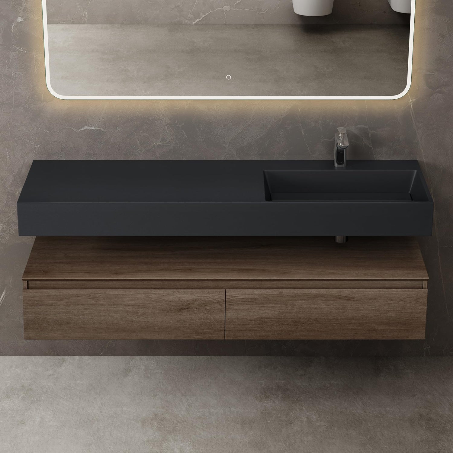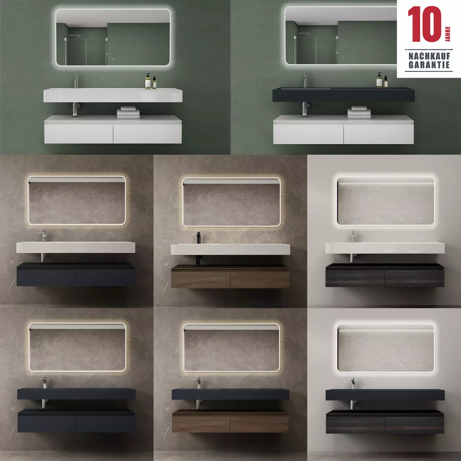 glasvilla Badmöbelset Waschtisch mit Unterschrank 150x48x25cm mit Soft-Close Schubladen inkl. Mineralguss-Waschbecken UP - Matt Anthrazit / 150cm Becken links / ohne ist auf Lager und wird versandt, sobald es wieder verfügbar ist