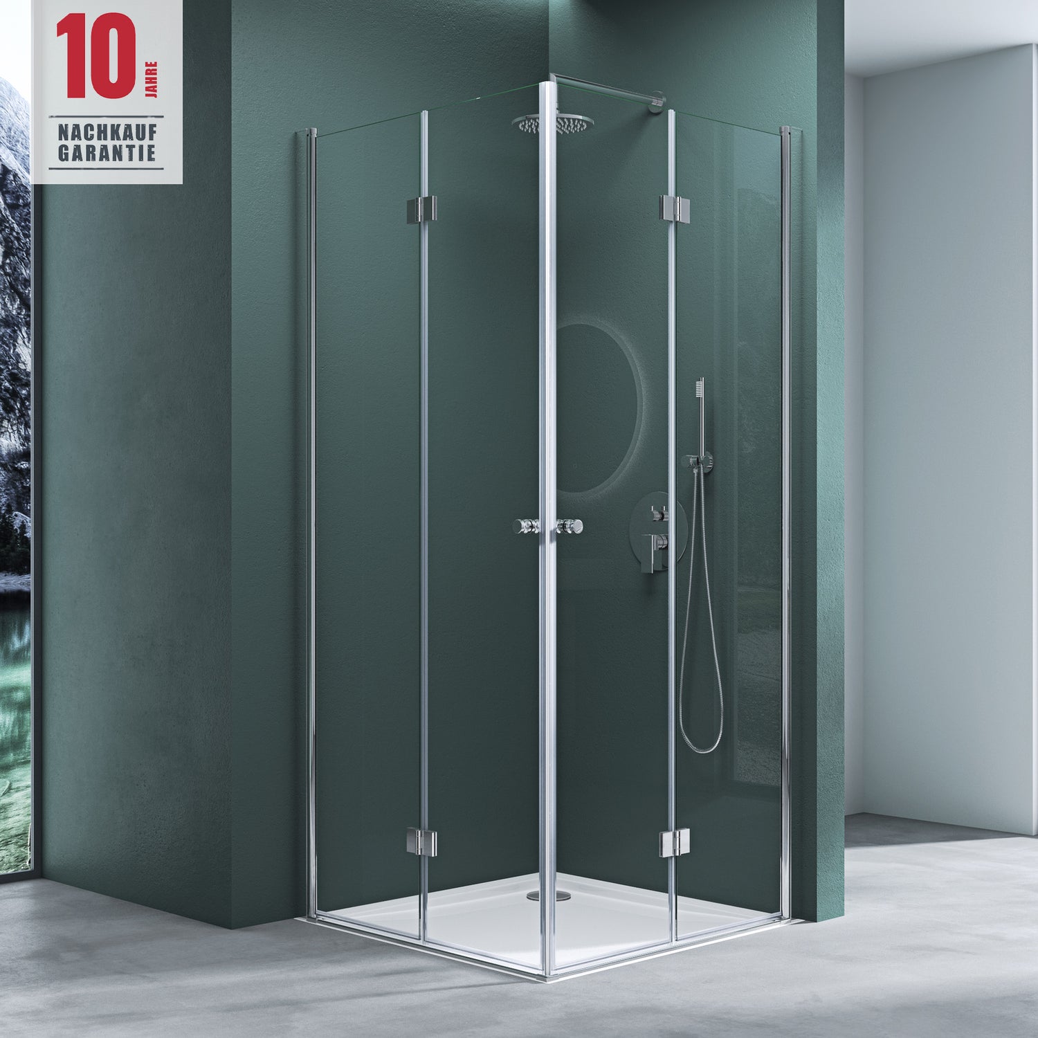 glasvilla Duschkabine Falttür 180° Klarglas ESG Klappbar & Faltbar Duschtür Lotus-Effekt NANO Eckeinstieg R26