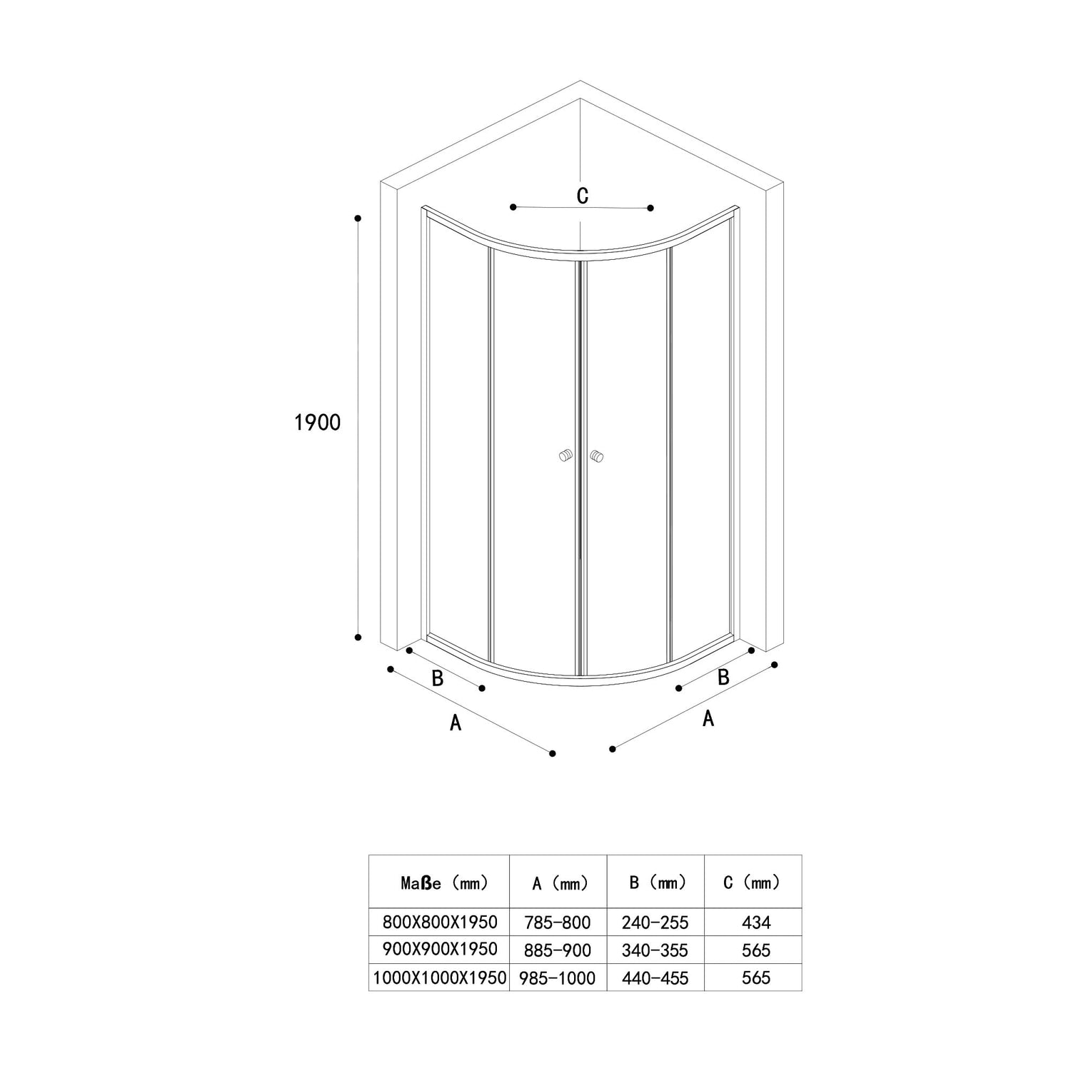glasvilla Duschkabine viertelkreis Dusche Duschabtrennung mit 2 Schiebetüren ESG-Sicherheitsglas Nano-Beschichtung Ravenna32K