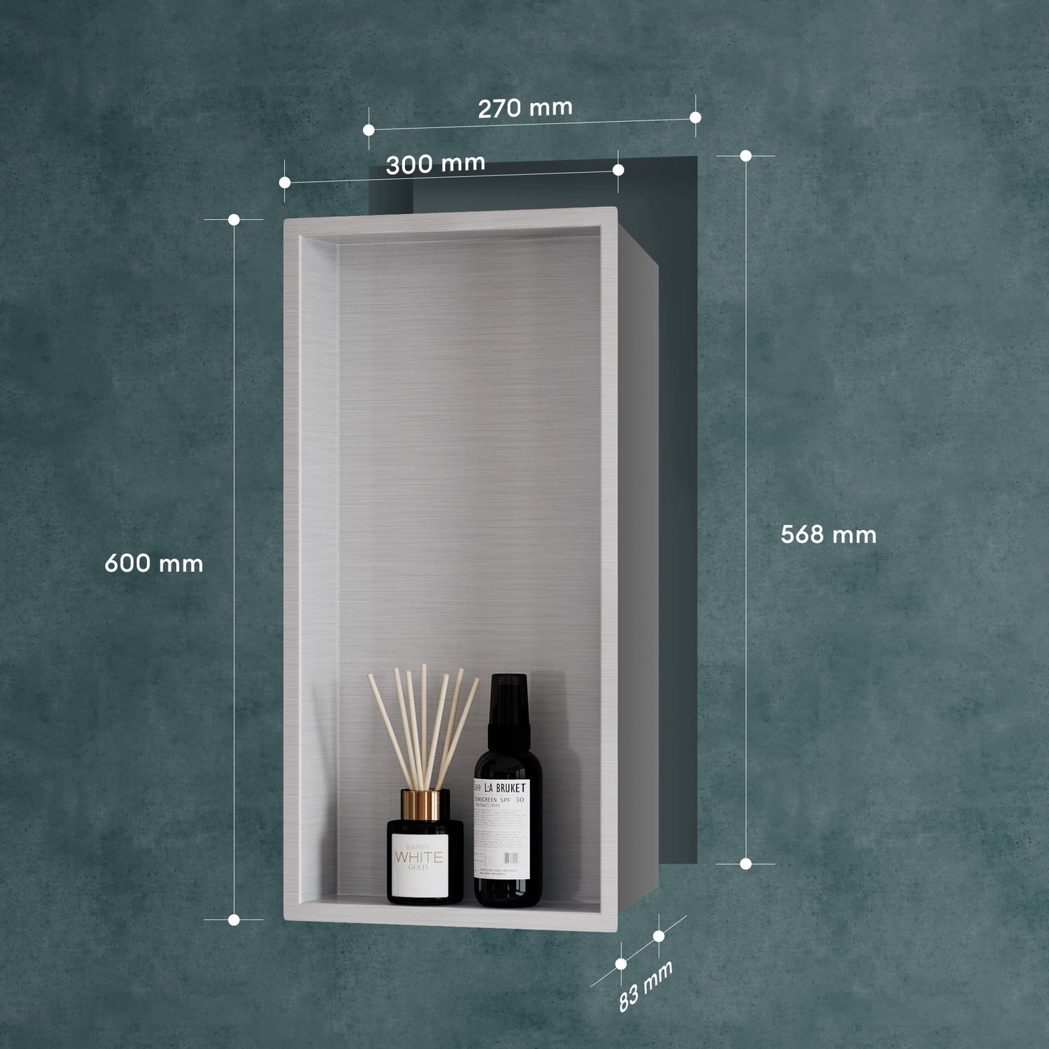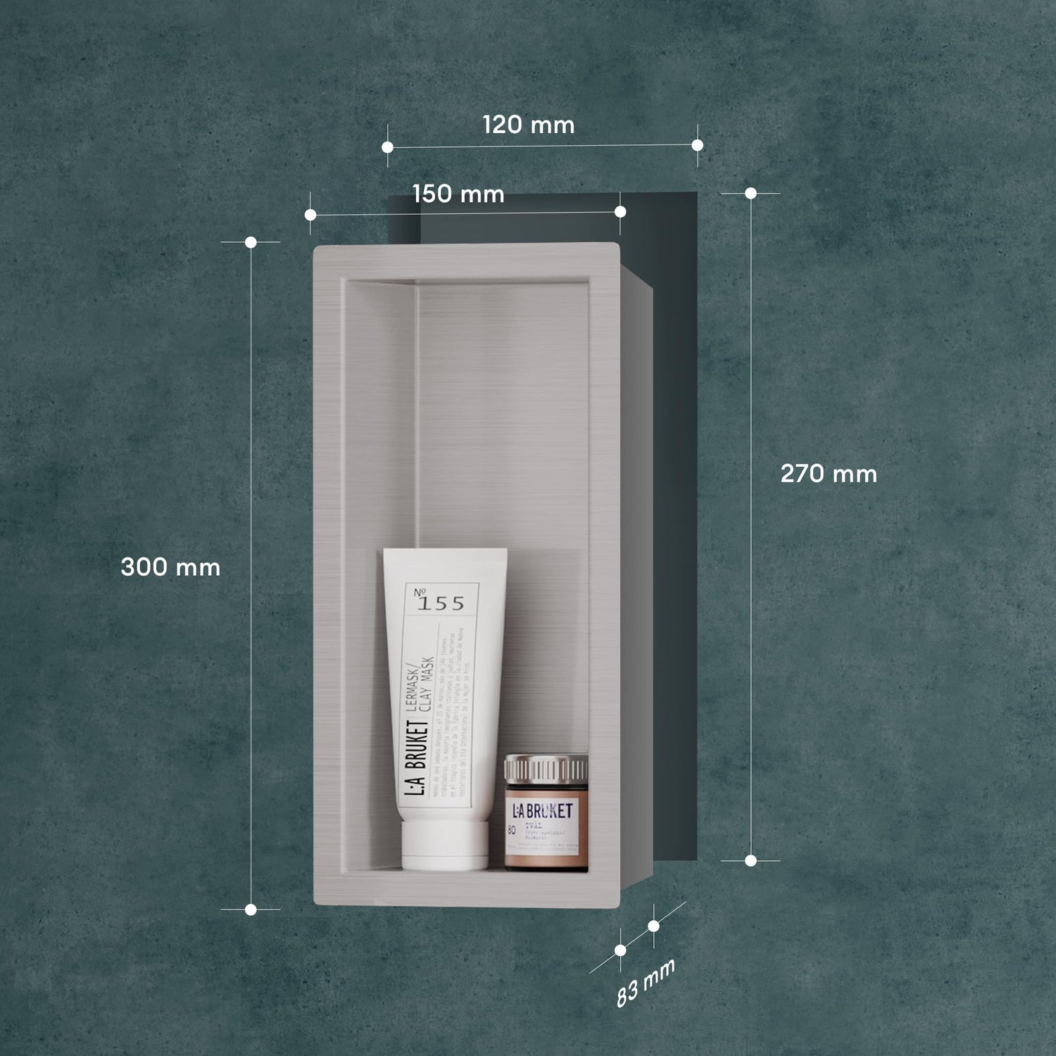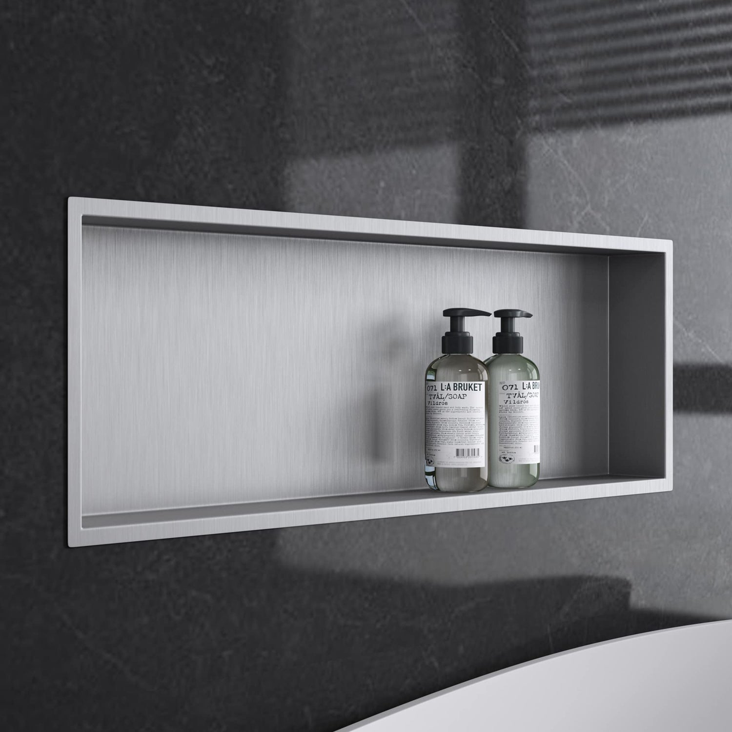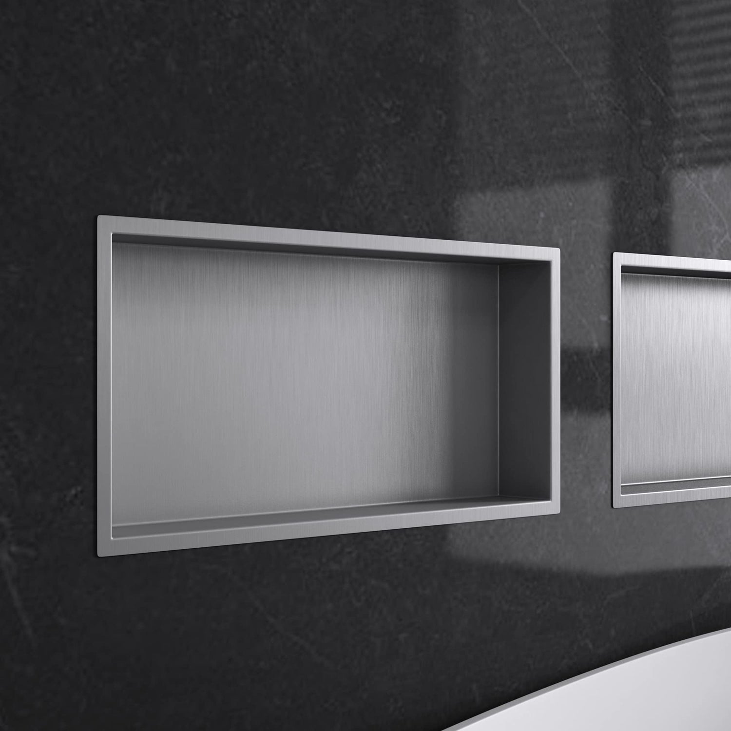 Die Wandnische ist aus hochwertigem Edelstahl gefertigt. Die Oberfläche der Nische ist gebürstet, wodurch die Nische rostfrei, stabil und langlebig ist. Der praktische Stauraum vereinfacht das Aufbewahren und Sortieren Ihrer Sachen. Es macht die Anordnung der Gegenstände nicht mehr unordentlich und ist dabei noch platzsparend.